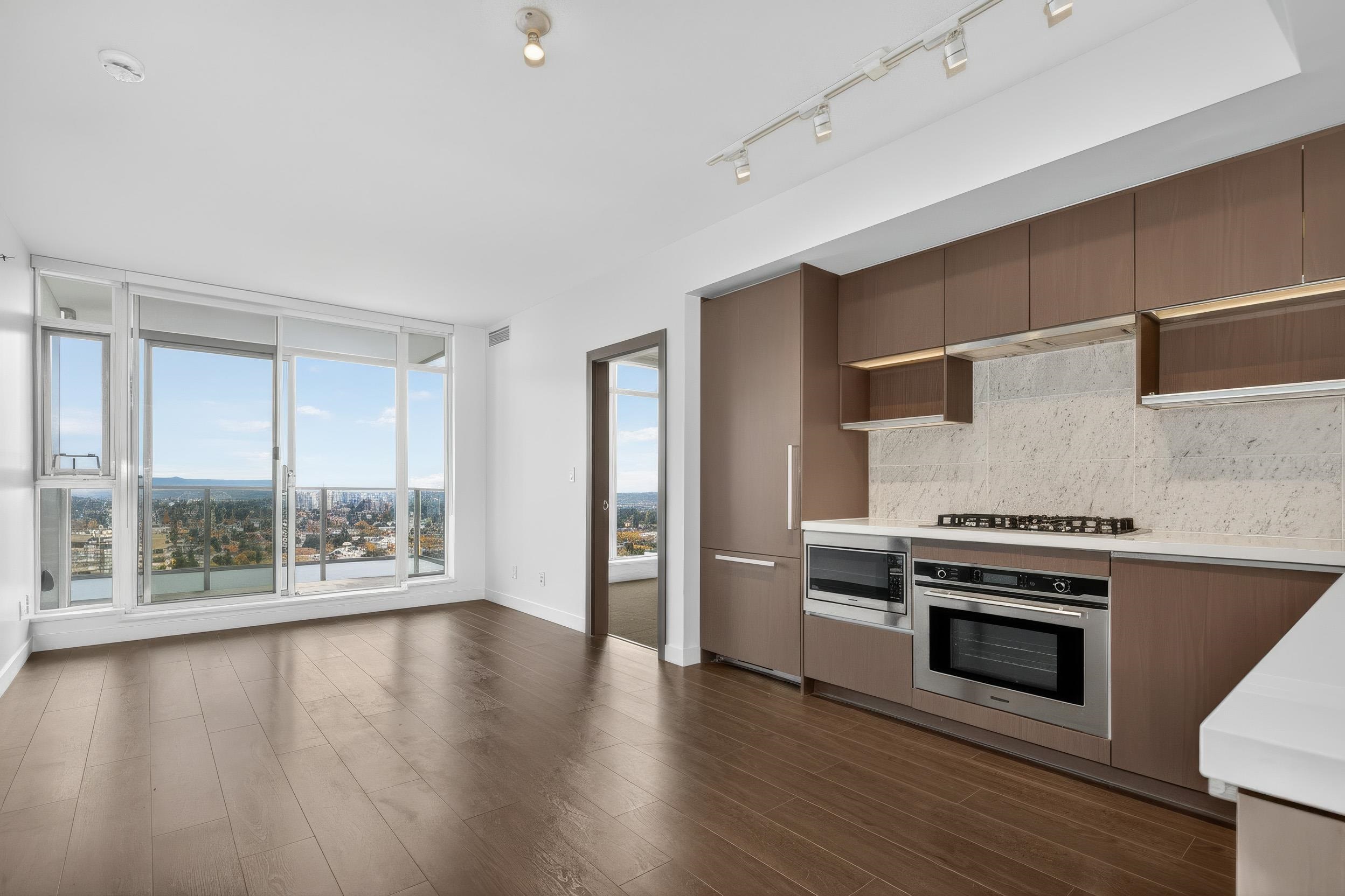 Welcome to this stunning 2-bed 2-bath residence on the 38th floor of MET2 - a Concord Pacific landmark in the heart of Metrotown. This east-facing home captures unobstructed morning light and panoramic city and mountain views. The spacious open-concept layout features air conditioning, premium European appliances, modern cabinetry, and luxury finishes throughout. Step onto your private balcony and enjoy the sunrise above the skyline. Amenities include a grand lobby, indoor swimming pool, hot tub, sauna, gym...