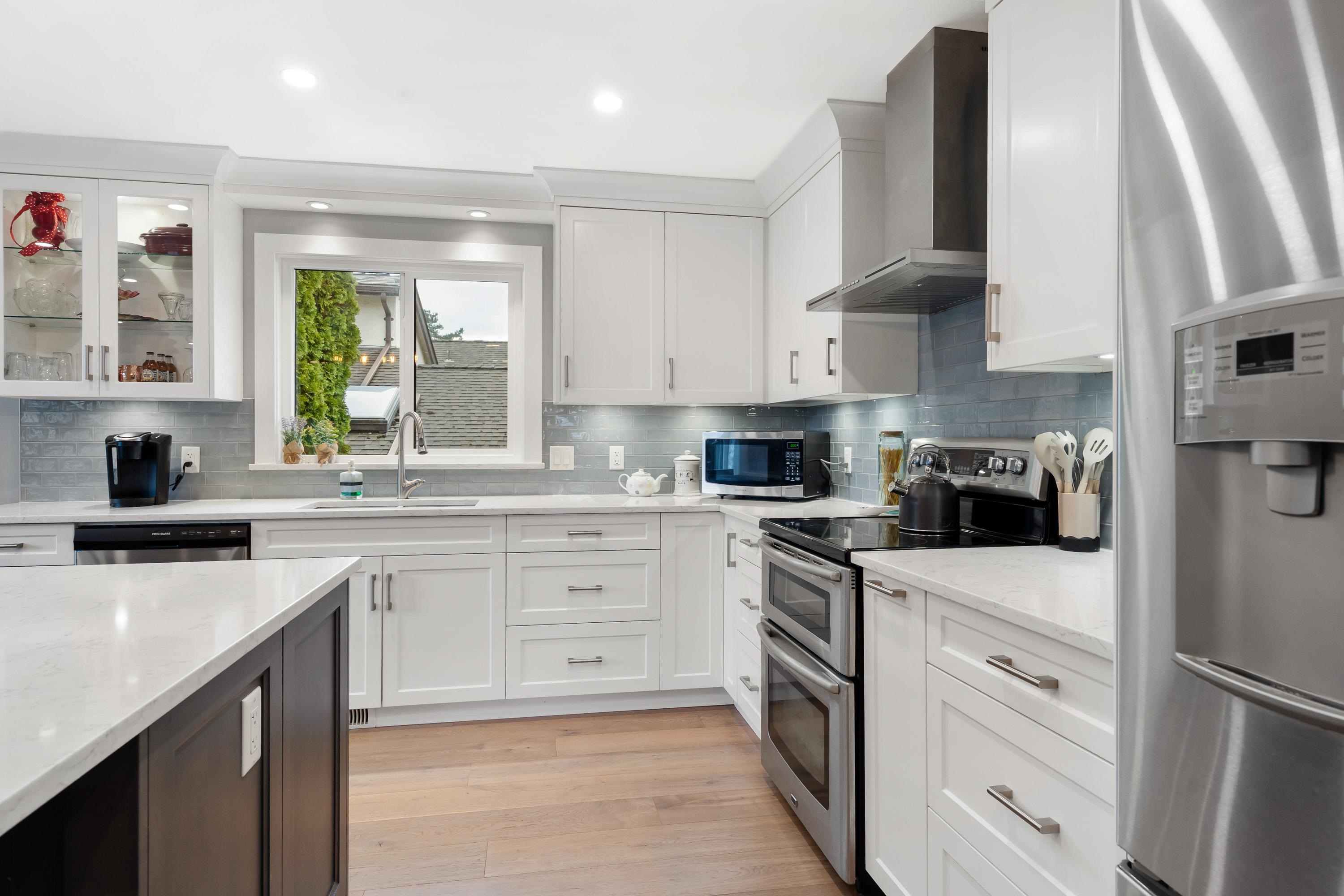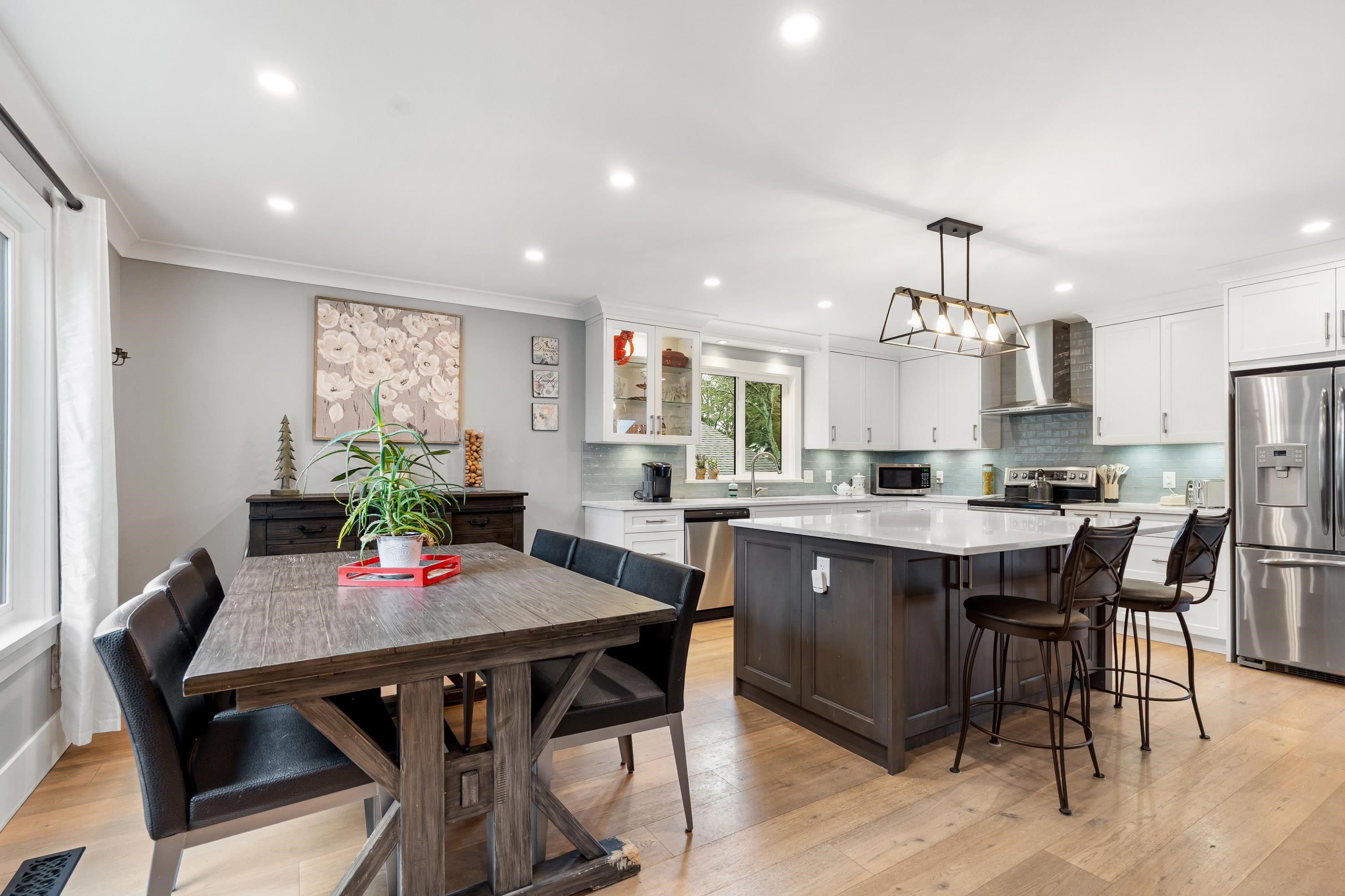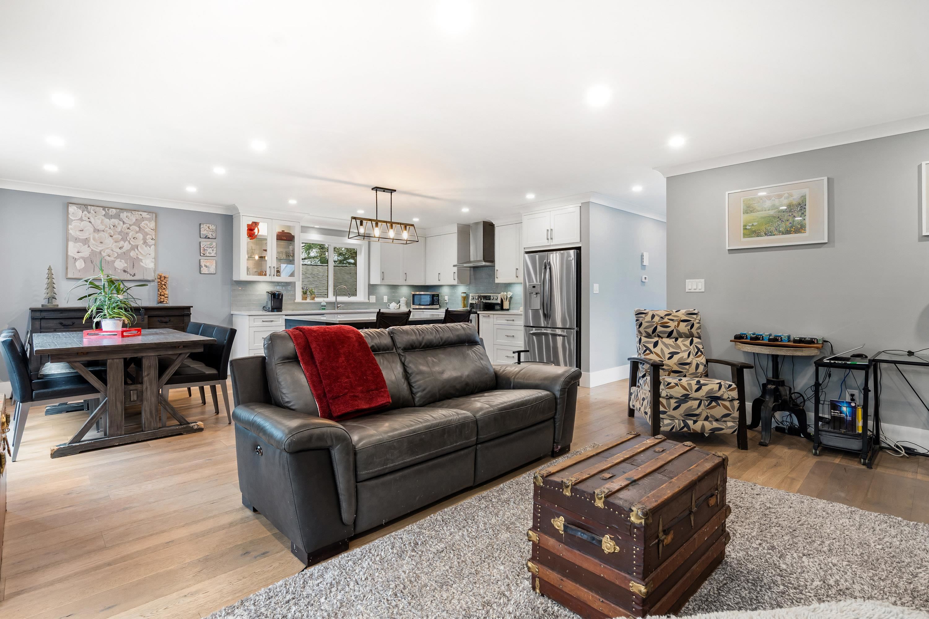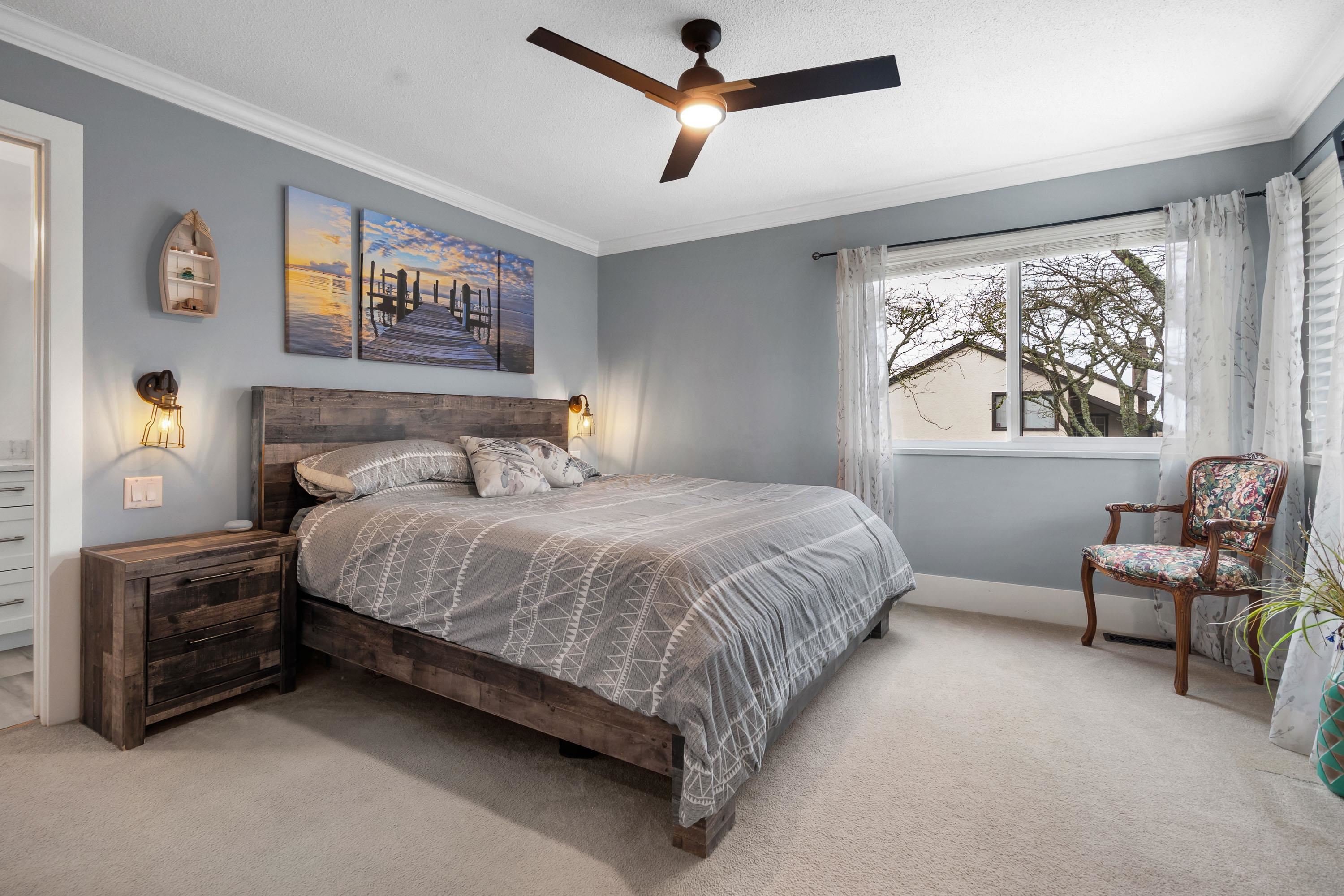 A rare freestanding home just one row from the Steveston oceanfront. Professionally renovated by local builder, this Mariner's Village residence blends coastal charm with modern design. Bright open living with rich hardwood floors to a stunning island kitchen with SS appliances. Main level offers 2 bedrooms, 2 full baths, providing comfortable, single-level living with access to a generous balcony. Fully fenced front and back yards provide peace of mind for kids and pets, featuring artificial turf and stora...