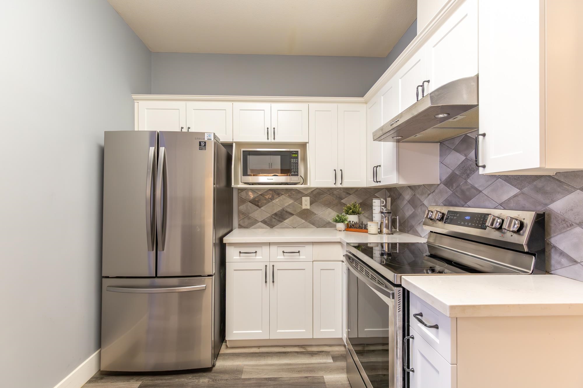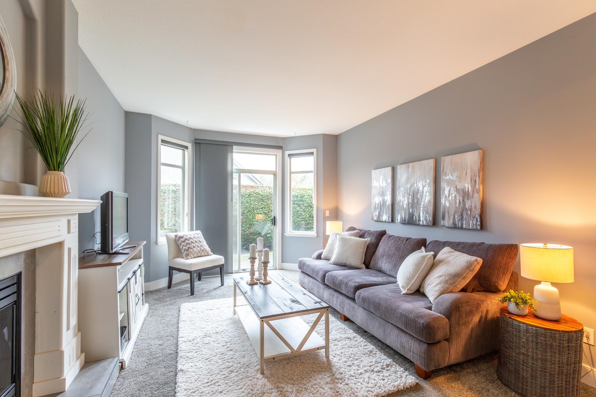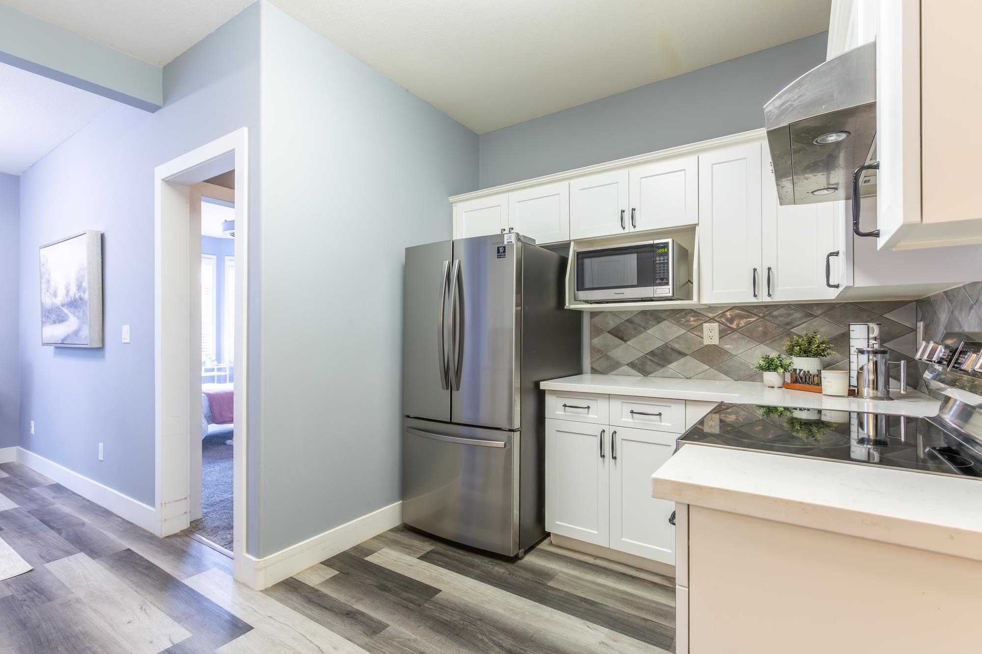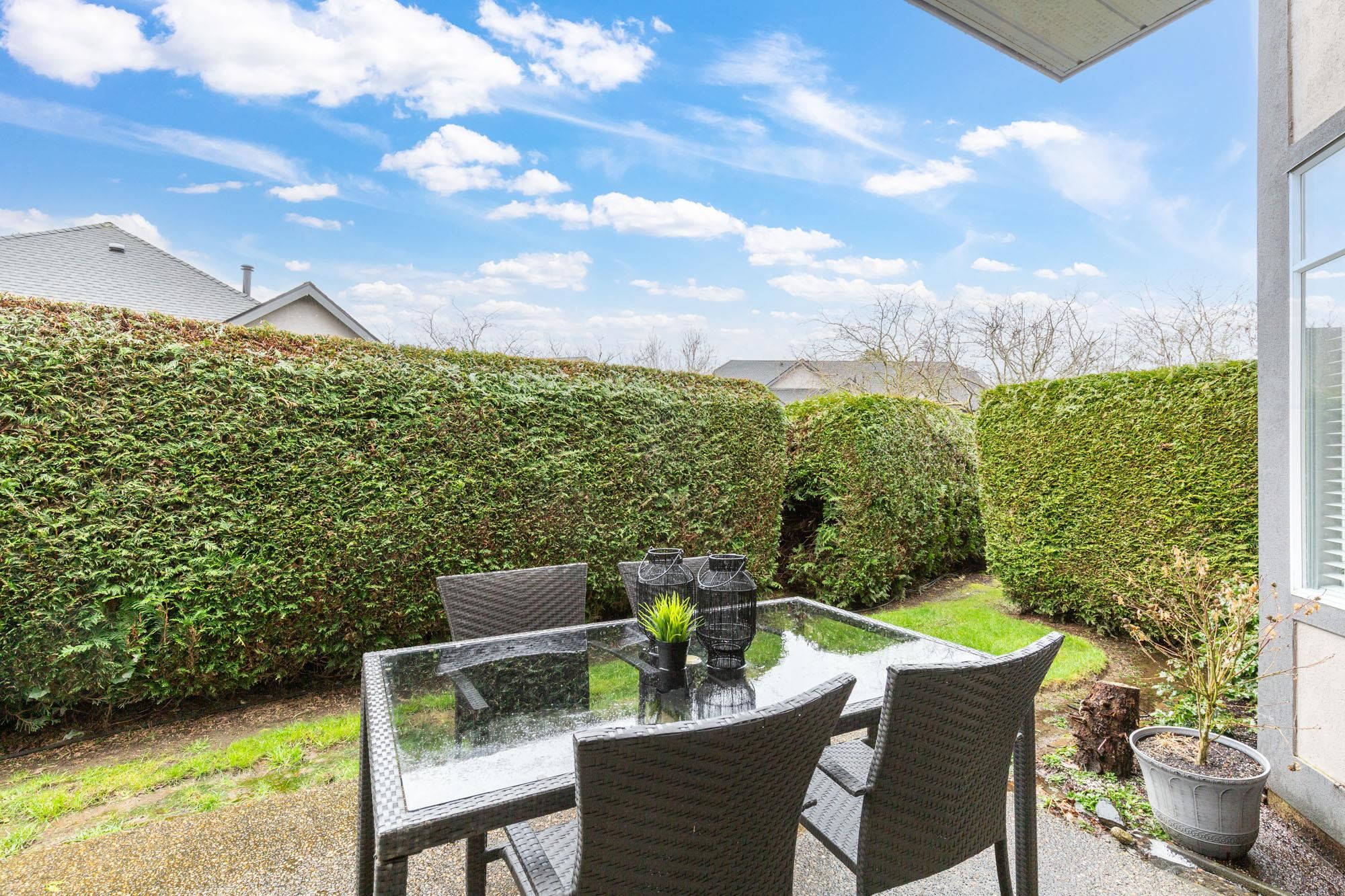 Gorgeous ground-level, end-unit townhome located in Murrayville’s Eaglecrest. This beautifully updated home features a spacious & bright living room w/ gas fireplace & glass sliding door to the private SW facing patio, gourmet kitchen w/ vinyl plank flooring, white shaker cabinets, quartz counters, stainless appliances, & large adjacent eating area. 3 bedrooms incl primary bedroom w/ bay window, large closet w/ barn door, & luxurious ensuite w/ relaxing soaker tub & separate shower. 4 pc main bath, laundry ...