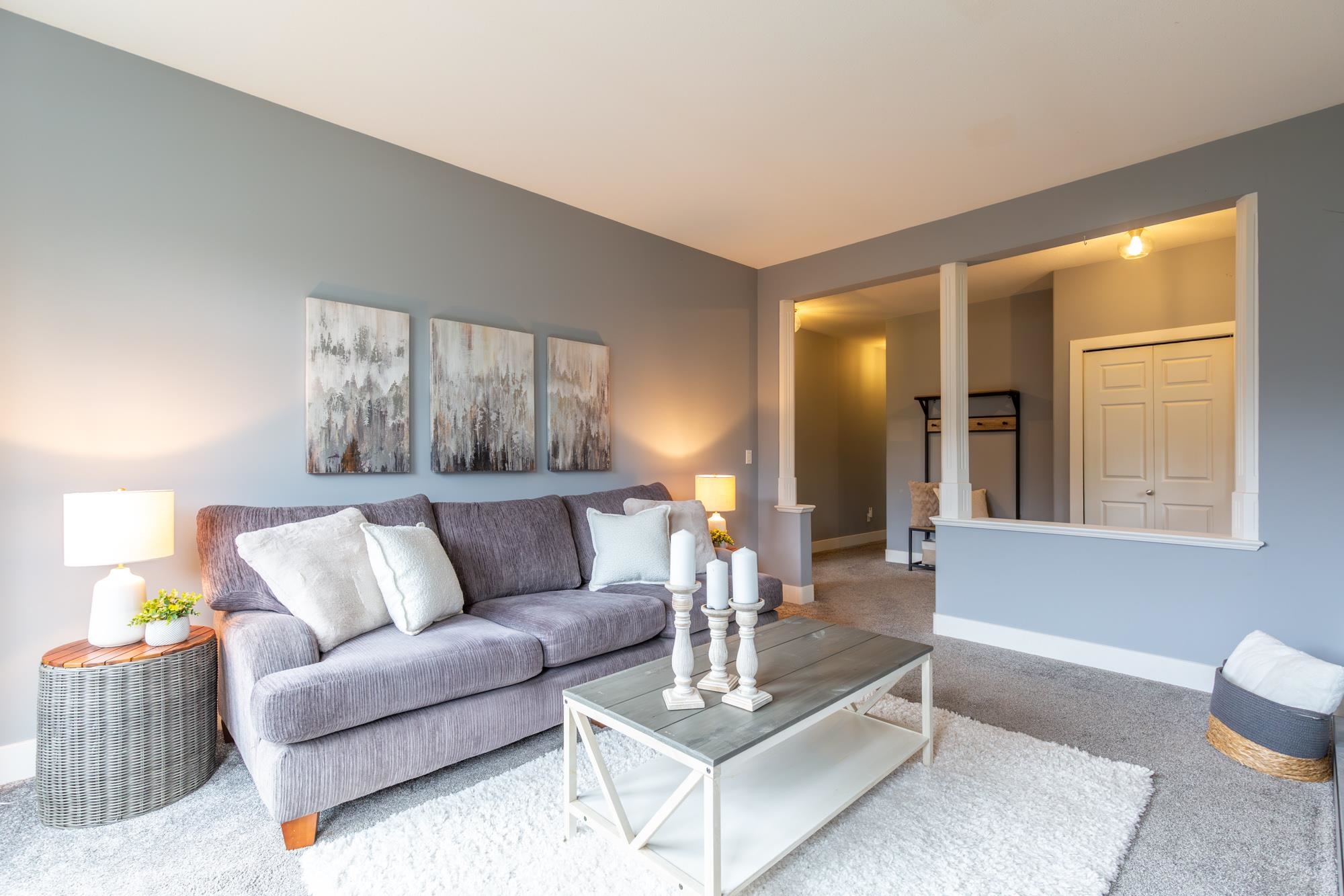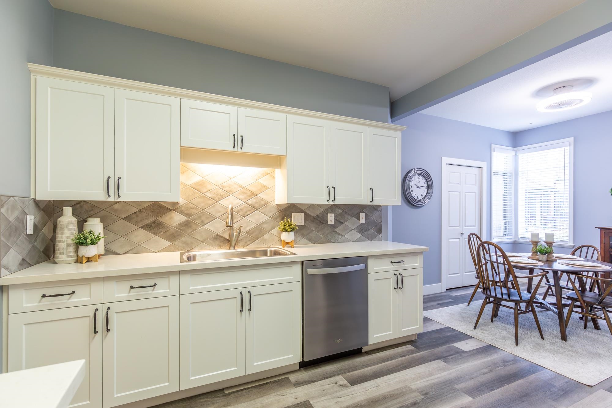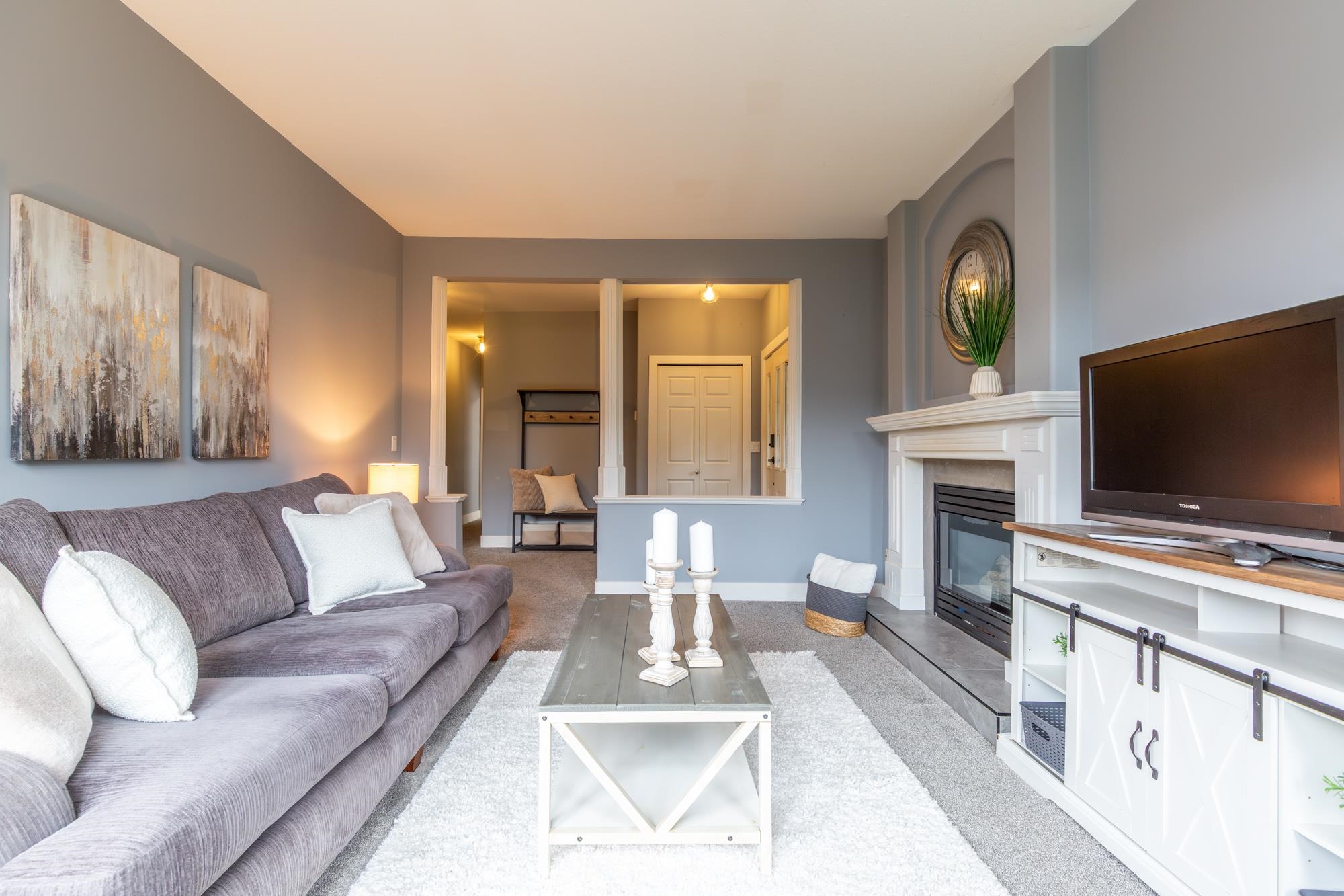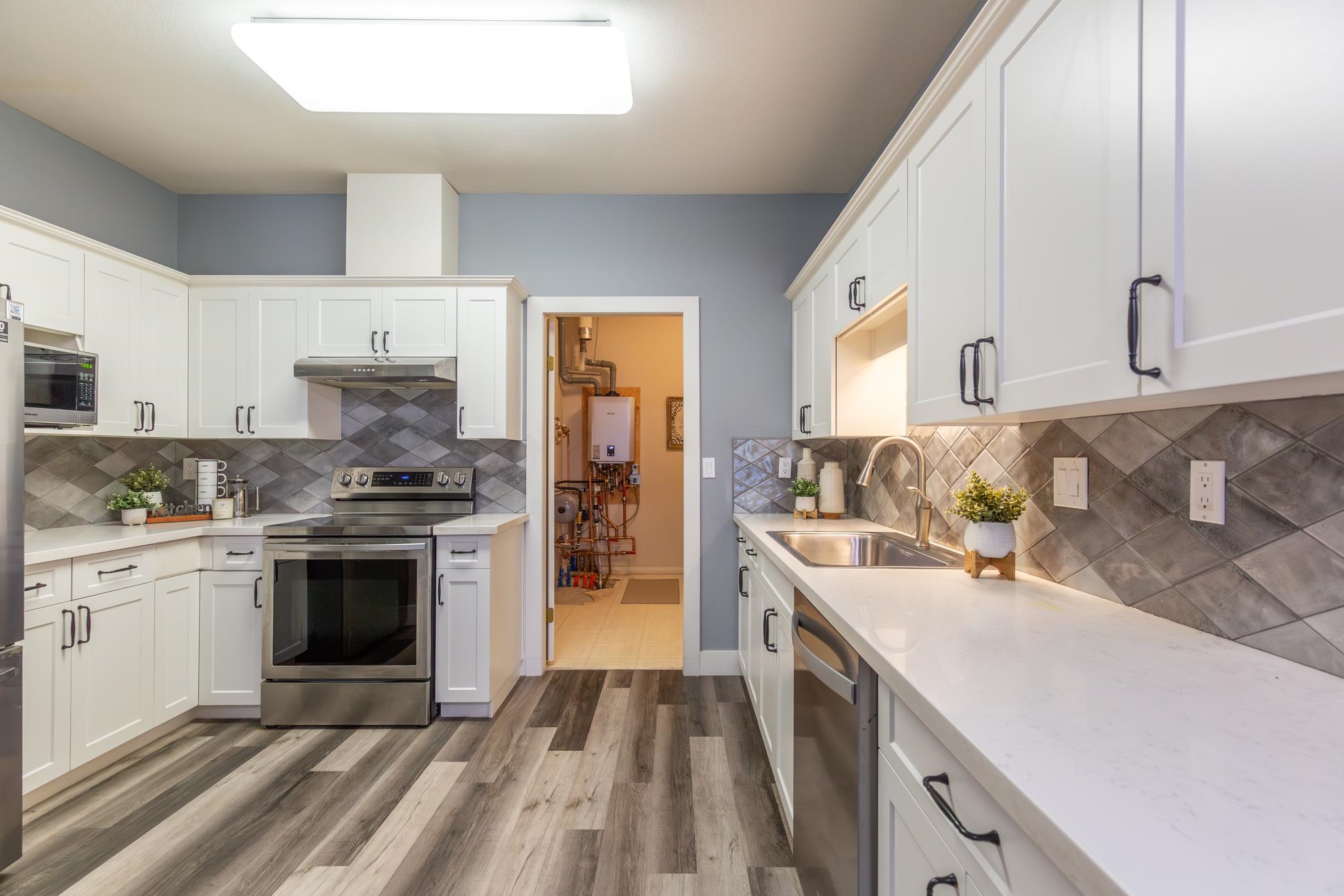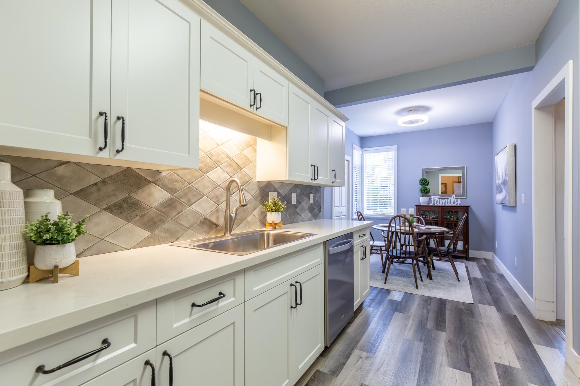 Gorgeous ground-level, end-unit townhome located in Murrayville’s Eaglecrest. This beautifully updated home features a spacious & bright living room w/ gas fireplace & glass sliding door to the private SW facing patio, gourmet kitchen w/ vinyl plank flooring, white shaker cabinets, quartz counters, stainless appliances, & large adjacent eating area. 3 bedrooms incl primary bedroom w/ bay window, large closet w/ barn door, & luxurious ensuite w/ relaxing soaker tub & separate shower. 4 pc main bath, laundry ...