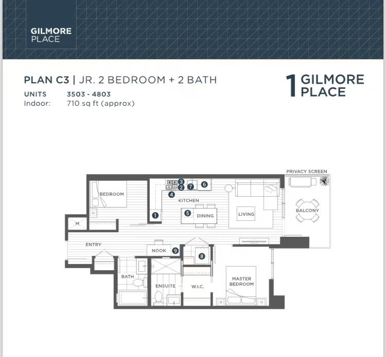 Welcome to the master plan Gilmore Place by ONNI! This most efficient floorplan Jr 2-bedroom locates on the 39th floor with south - east facing offers you the breathtaking views of city view. The pinnacle of luxury living near Brentwood gives you the sophisticated urban living experience and environment at its finest level, it is steps away to skytrain yet away from all the noise. The building offers first class amenities on over 75000 sqft of space including 24 hour concierge, indoor and outdoor pools, gym...