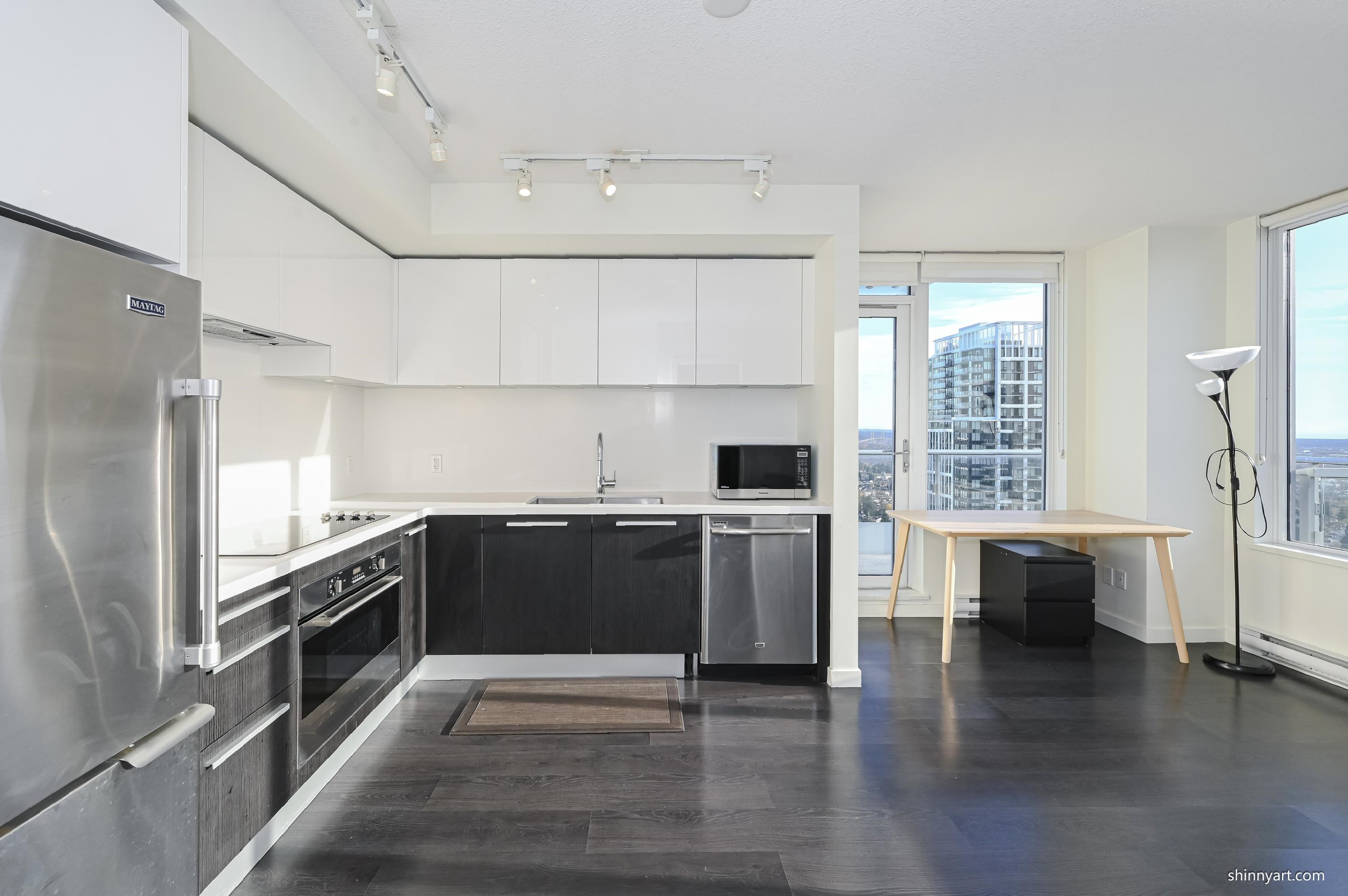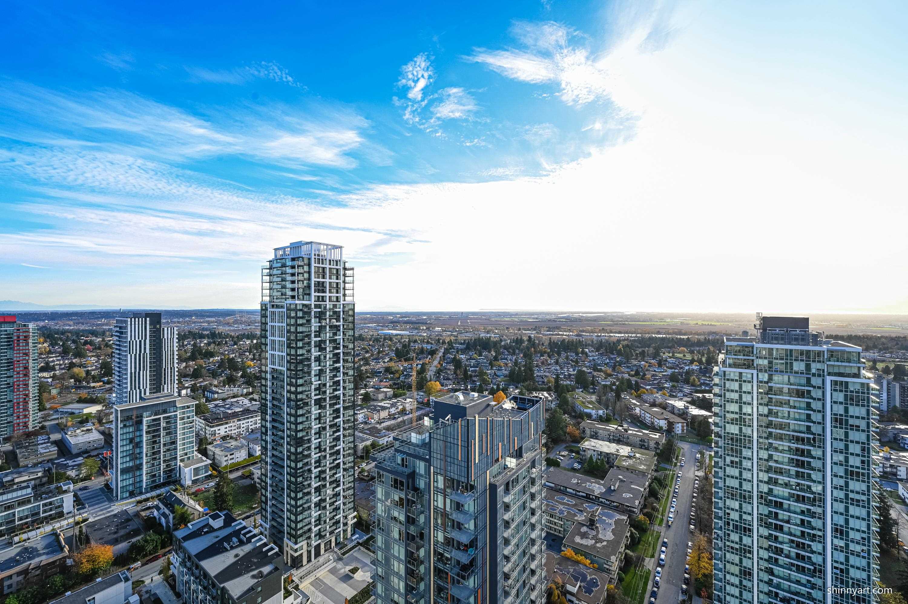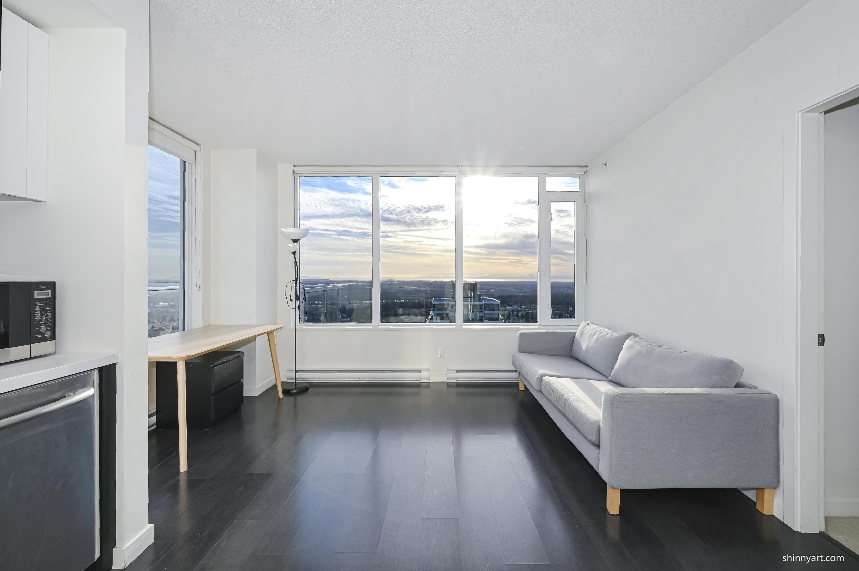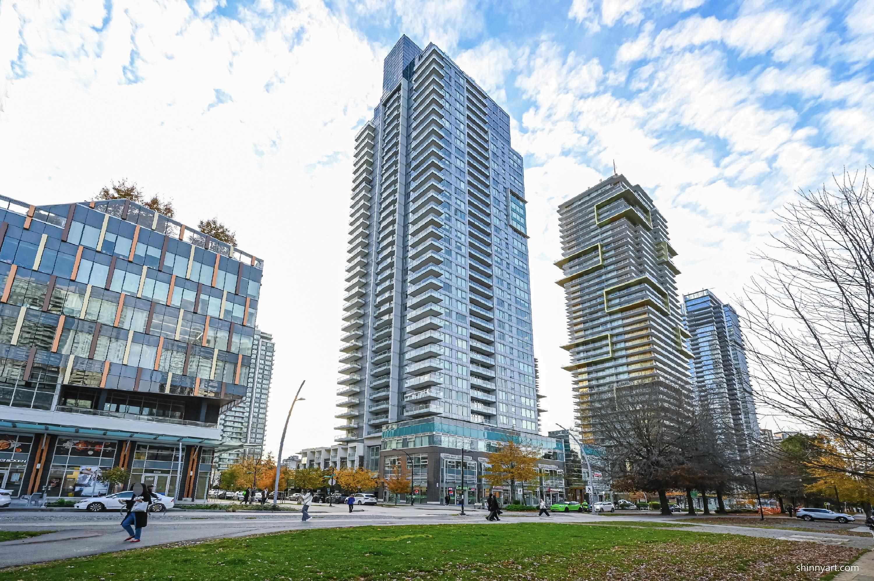 Welcome to Silver by Intracorp, a sought-after high-rise ideally located just steps from Metrotown SkyTrain Station. This bright southeast-facing 2-bedroom corner home sits high on the 39th floor. Positioned on the quiet side of the building, it provides a perfect balance of peaceful living and unbeatable urban convenience. Enjoy easy access to Metropolis at Metrotown, Crystal Mall, shops, dining, parks, and transit-all within a short walk.