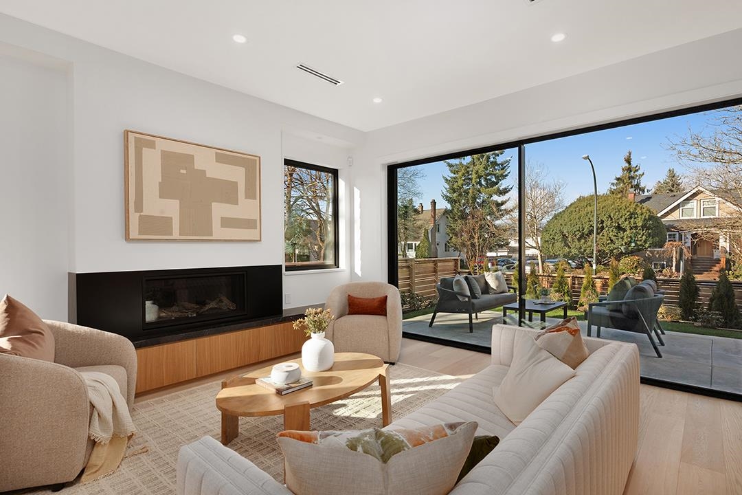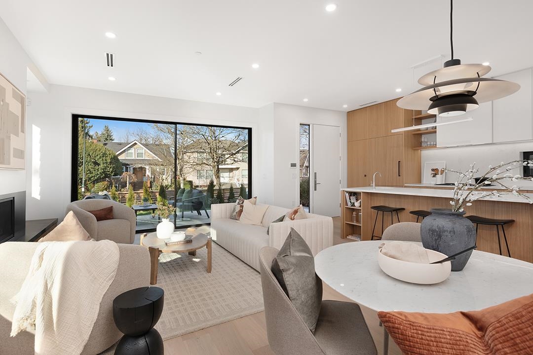 Architecturally striking 3Bed/3.5Bath contemporary duplex built by Rdon Construction, designed by Architrix on a prime 36’ x 122’ Cambie corner lot. Designed with intention and built beyond standard spec: metal roof, aluminum detailing, triple-glazed Cortizo sliding doors, Hardie siding, radiant in-floor heating and A/C. Private landscaped yard and beautiful mountain views enhance the detached-home feel. Interiors showcase white oak floors, marble fireplace, skylights and a fully integrated kitchen. Spaciou...
