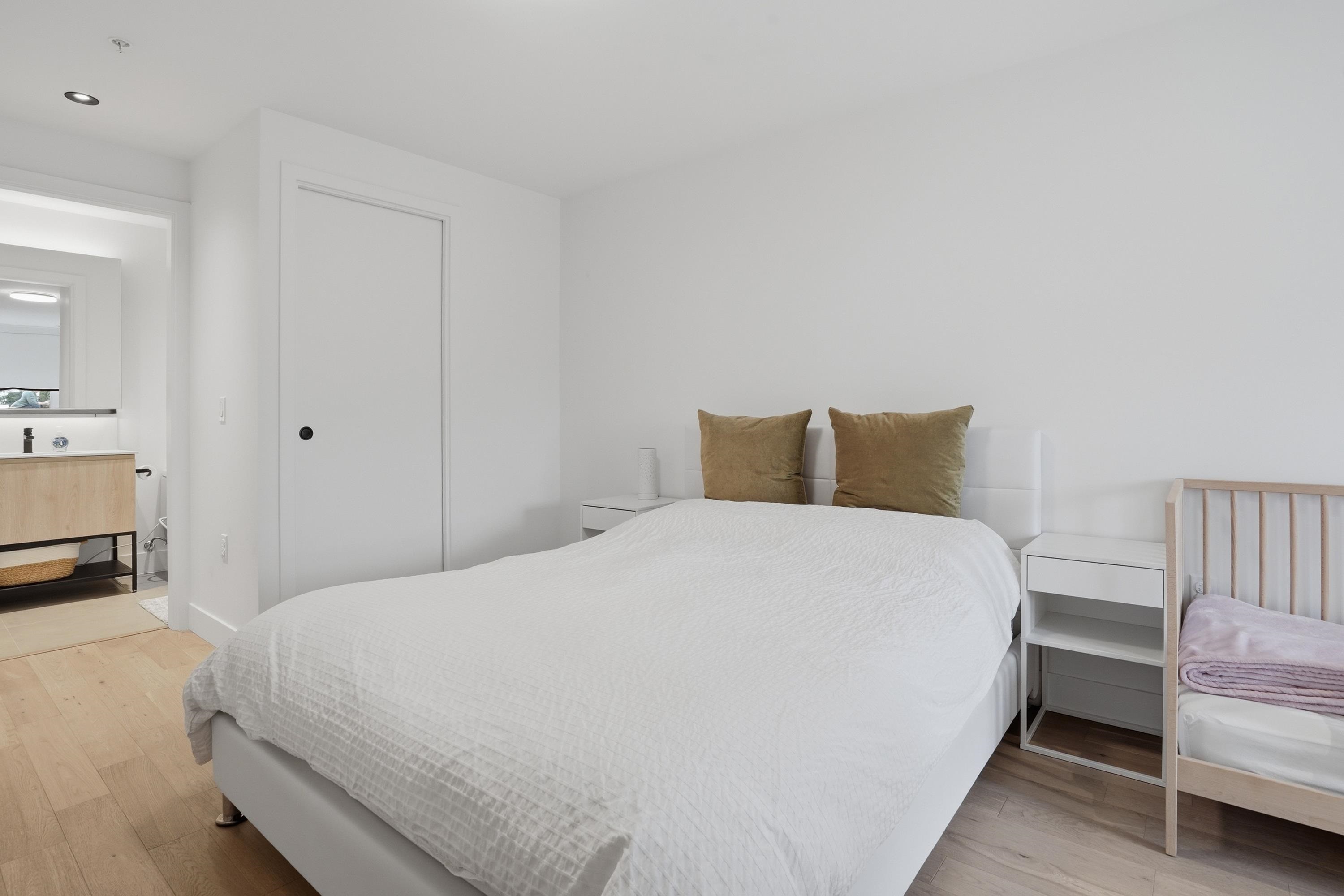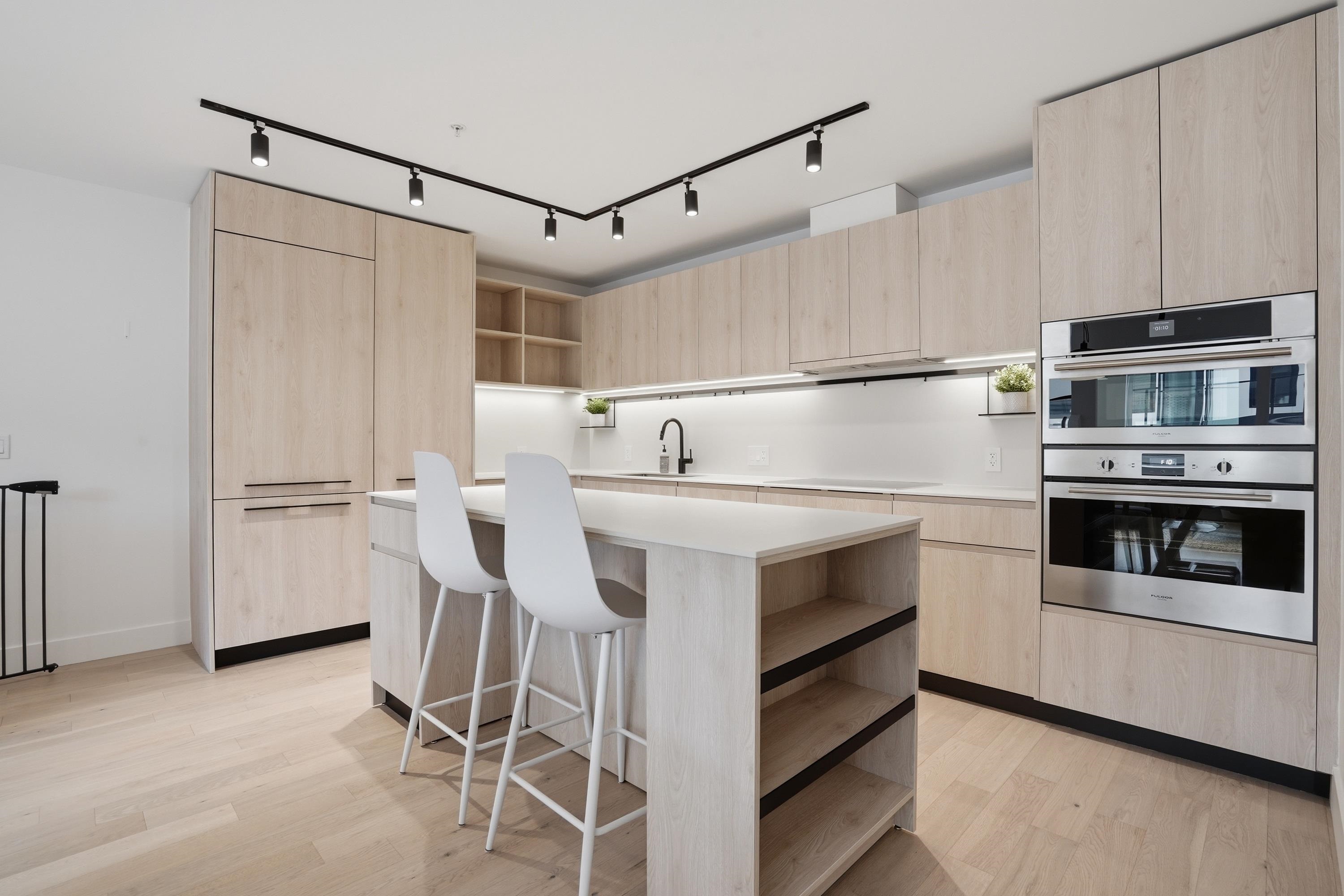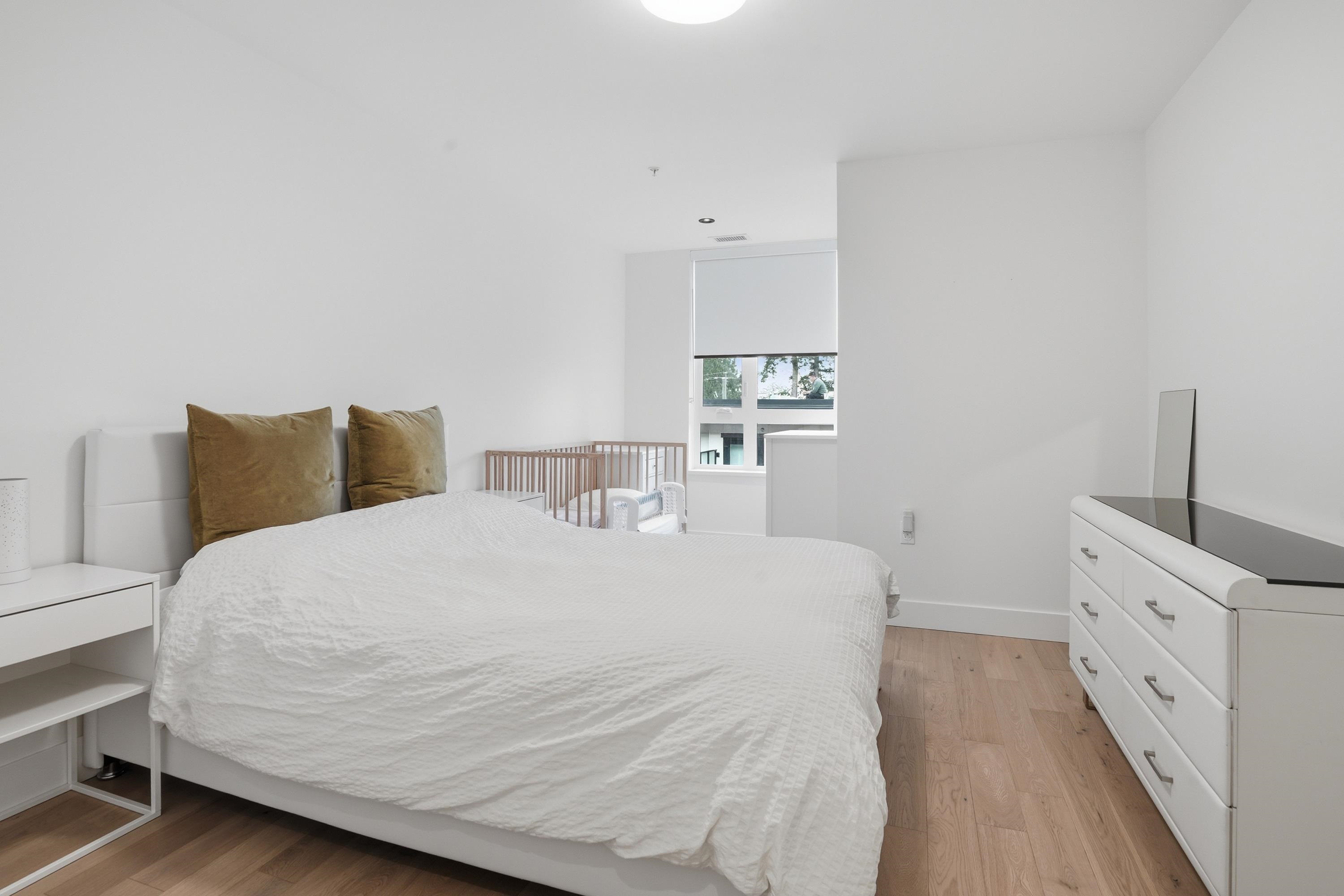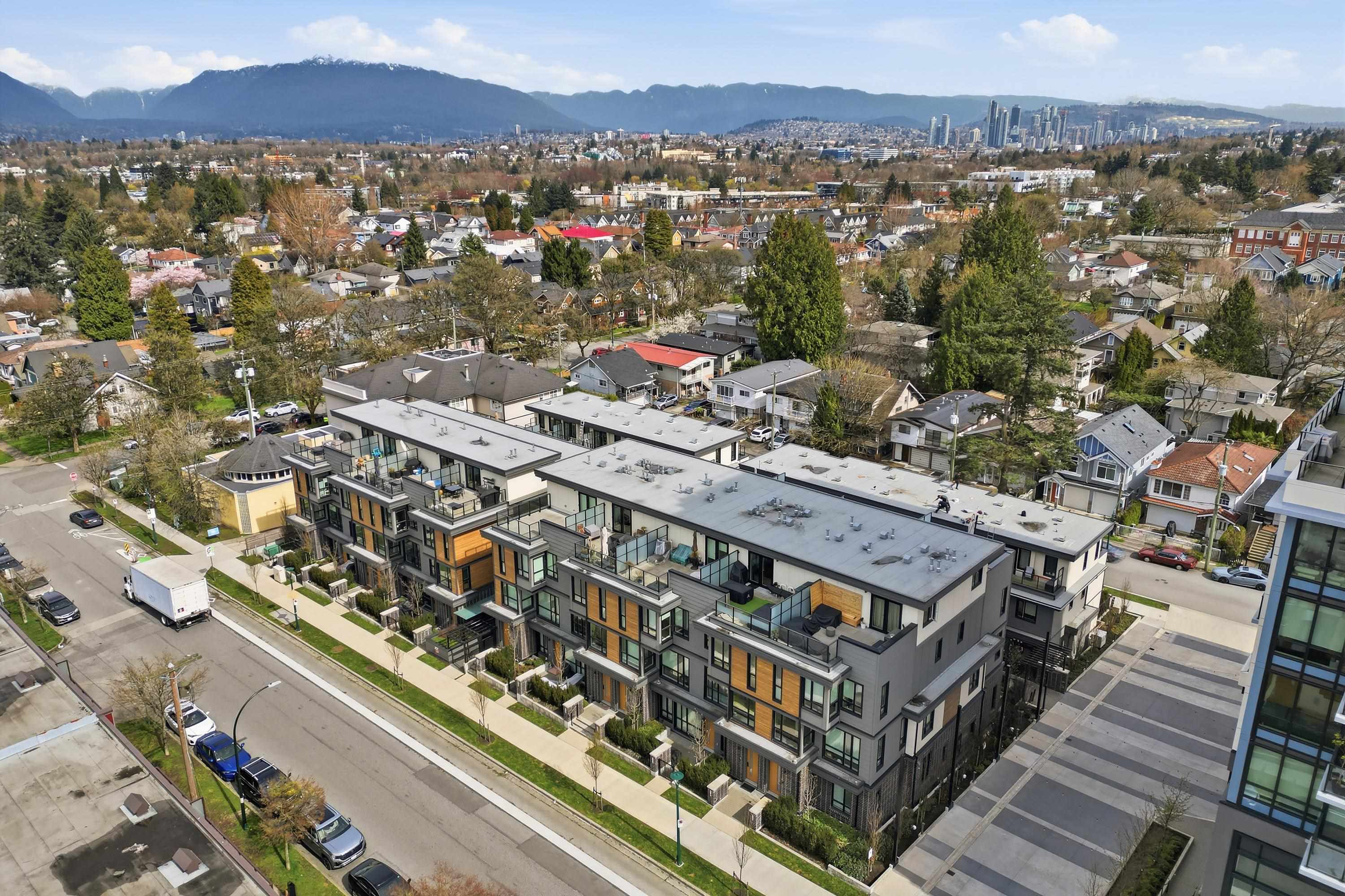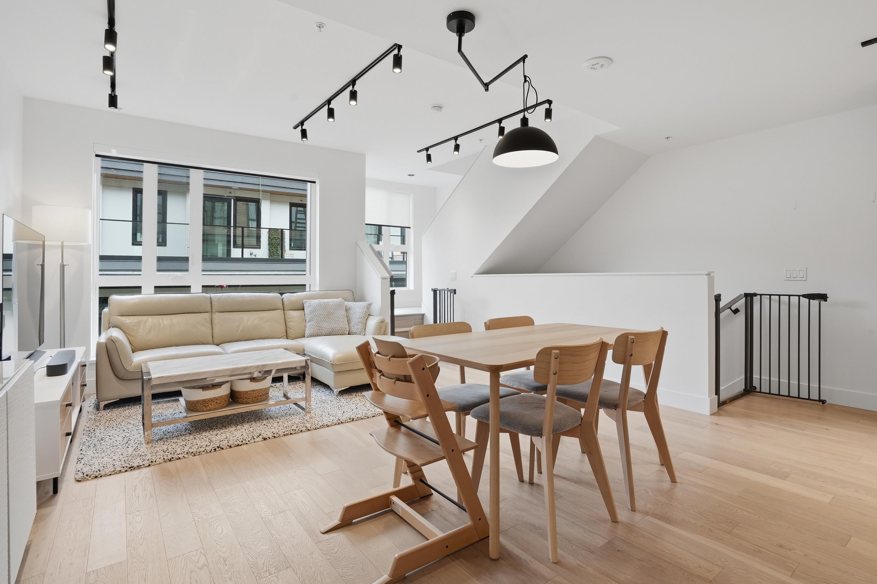 FORMAT, by Cressey Development. Built in 2023, this 3 bedroom 3 bathroom townhouse is situated on an idyllic tree-lined street, seamlessly connected to the Cedar Cottage neighbourhood. This home features light Italian-Cellini soft-close cabinetry, Dekton countertops, induction stove, integrated Italian appliances, convection/microwave and speed oven, and wide plank oak hardwood throughout. 2 bedrooms on the upper floor with the third bedroom above, suitable to be used as bedroom or home office. Rooftop deck...