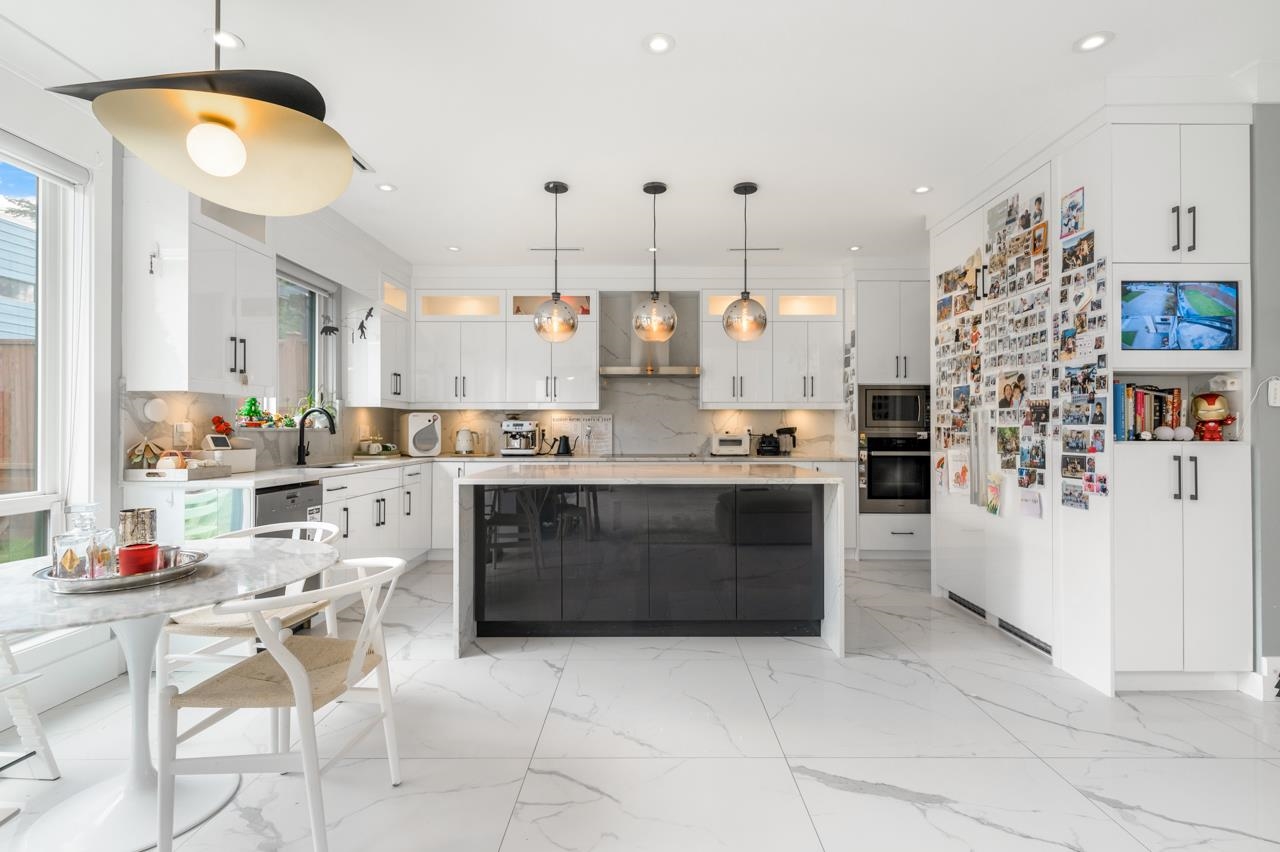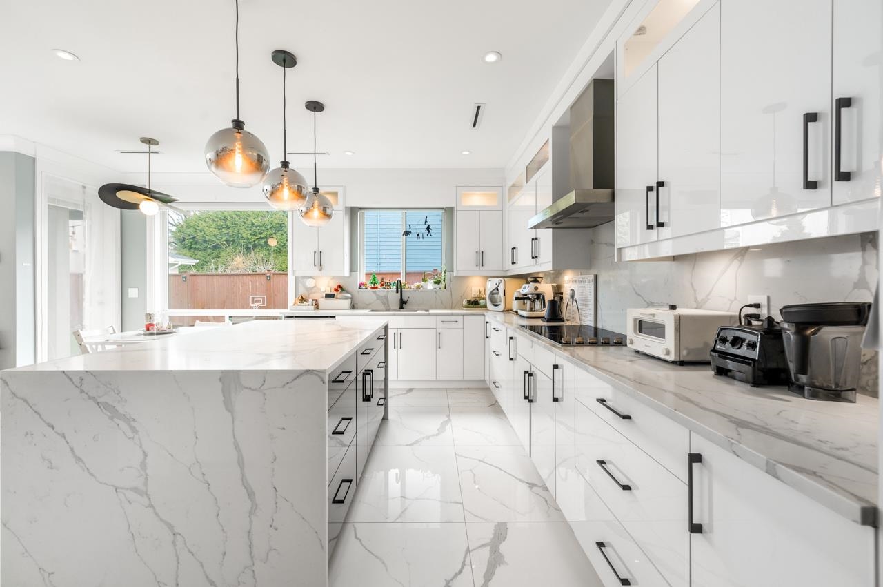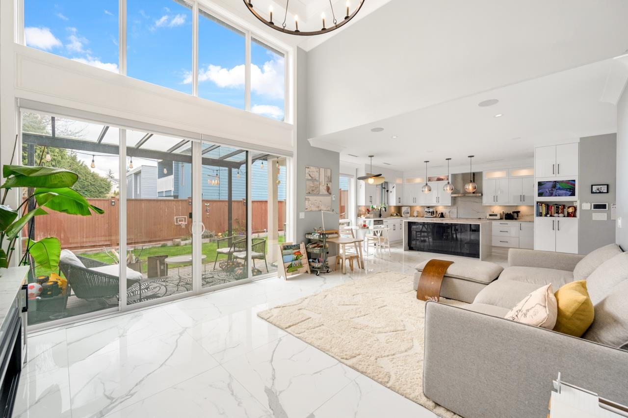 Welcome to this SOUTH FACING 5 year new custom-built home in Richmond. Just a 5 min walk from Quilchena Golf Course and a stroll to the scenic seawall dyke. This 4 bds, 4 bath house comes with an impressive 45'frontage, 16' double drop ceilings in both the living and family rooms provides abundant sunlight throughout the day. It also features radiant heat &A/C, Miele kitchen appliances, walk in spice kitchen, designer light fixtures, elegant wall molding throughout, epoxy garage floor, level 2 charging etc....