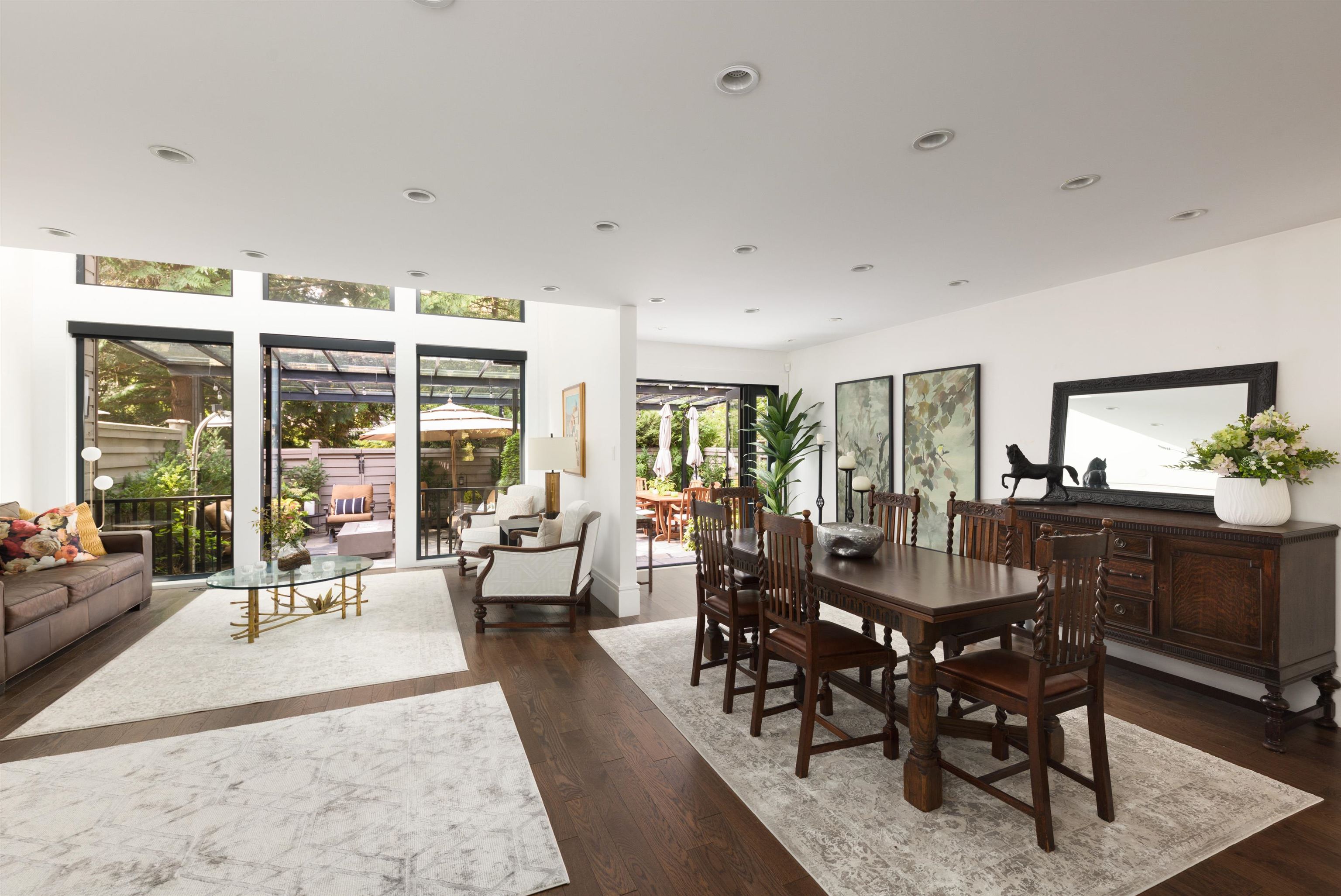 Rarely available NW corner semi-detached townhouse in Arbutus Village. Offering 3,000sf of beautifully curated living space plus an impressive 1,000sf covered patio reminiscent of a Tuscan retreat. Fully renovated with permits, showcasing soaring ceilings, skylights and expansive windows throughout. Designer kitchen with custom millwork and a striking 12' backlit Brazilian quartzite island. Elegant powder room finished with backlit Italian onyx. Primary suite w/spa-like ensuite & WIC. Lower level offers med...