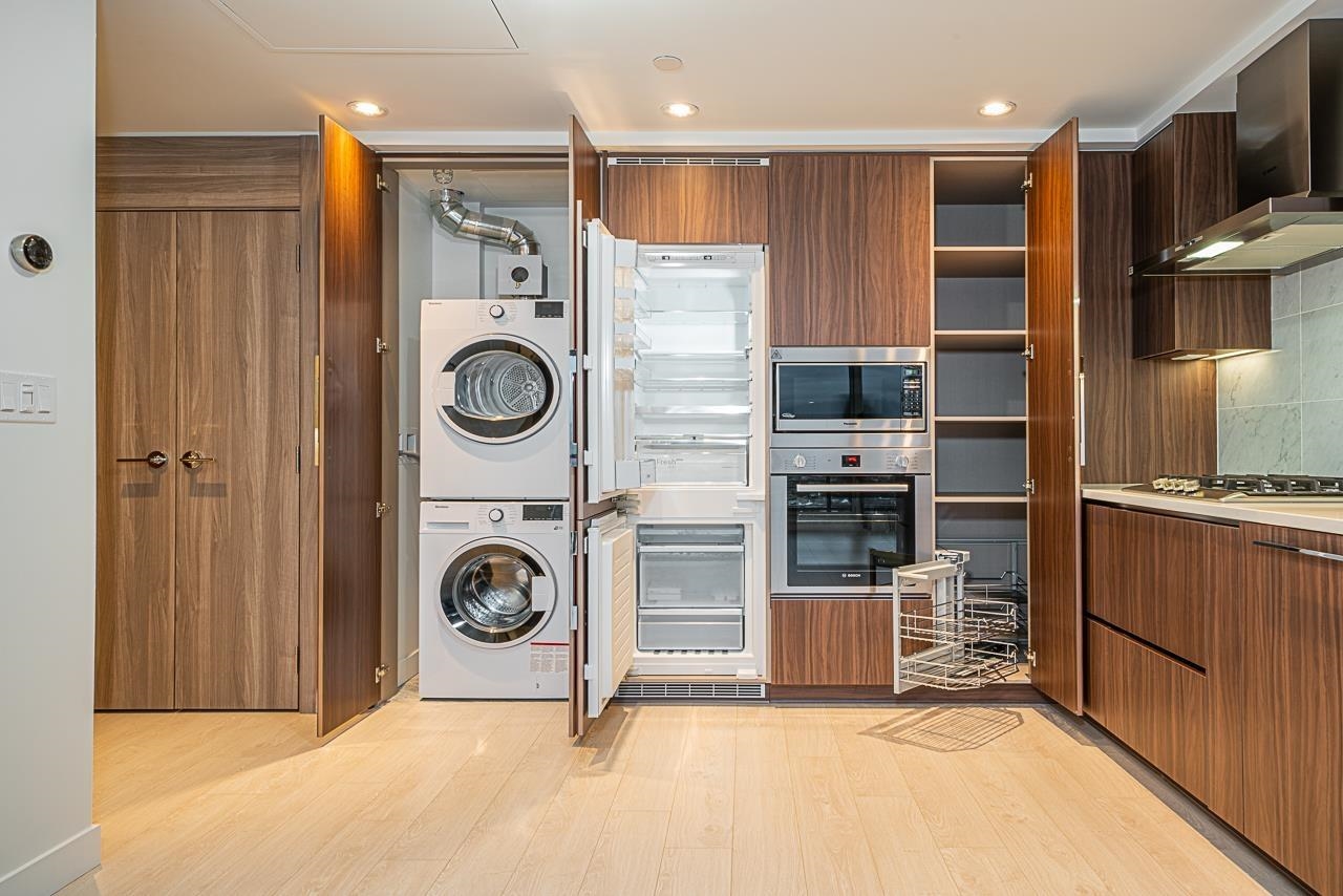 Welcome to Hillside West by Concord Pacific. This luxuriously built 1 bed high-rise condo on the 40 floor features mountain views from your private balcony. Its functional laid out floor plan features Air Conditioning, smart home with high end appliances, soft close cabinets, quartz countertops, gas stove, built-in microwave, marble floors. Amenities: A/C, Concierge, Gym, Entertainment Lounge, Pet Grooming room. Includes 1 EV parking and 1 locker, Open House April 18,19 Saturday and Sunday 2-4pm
