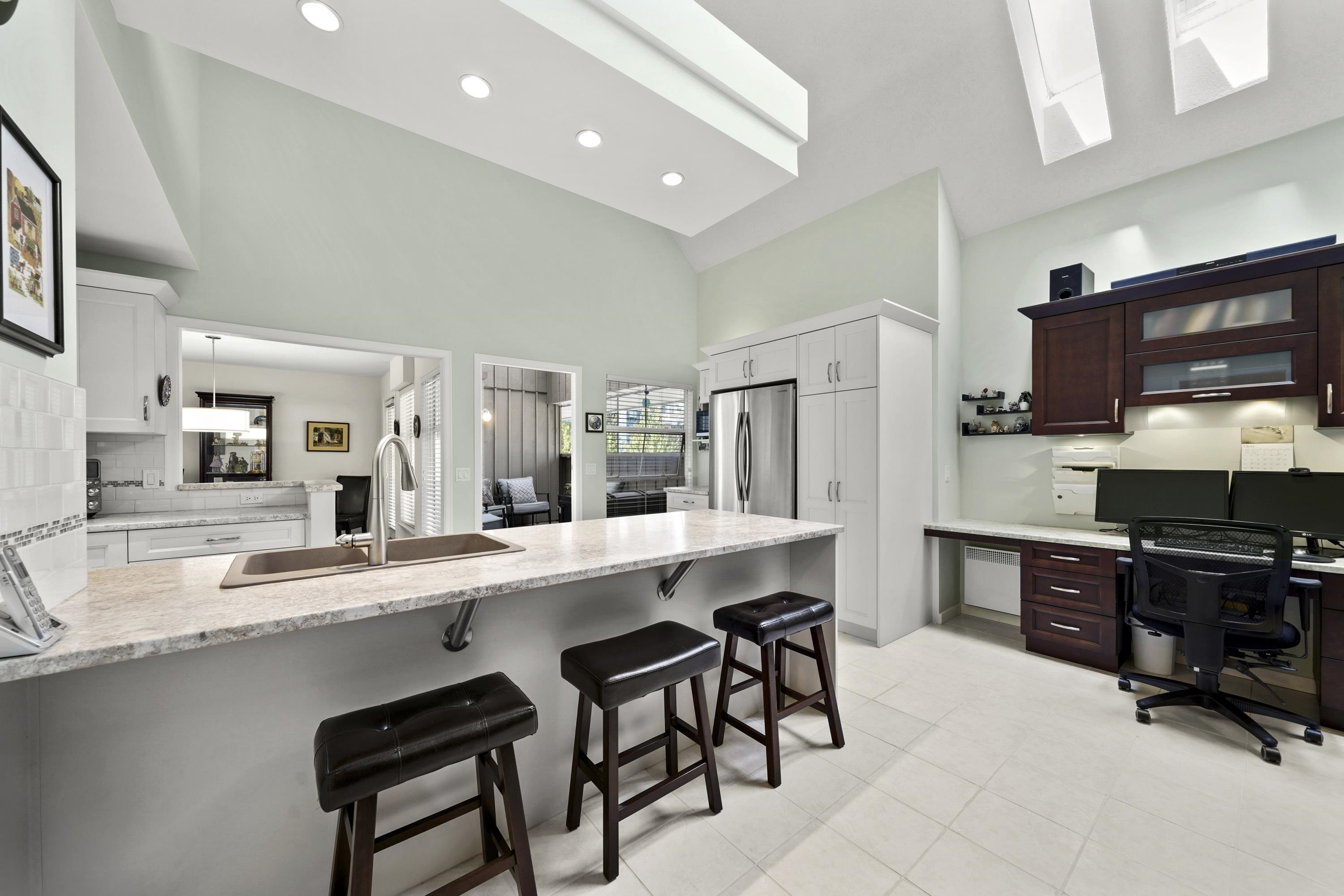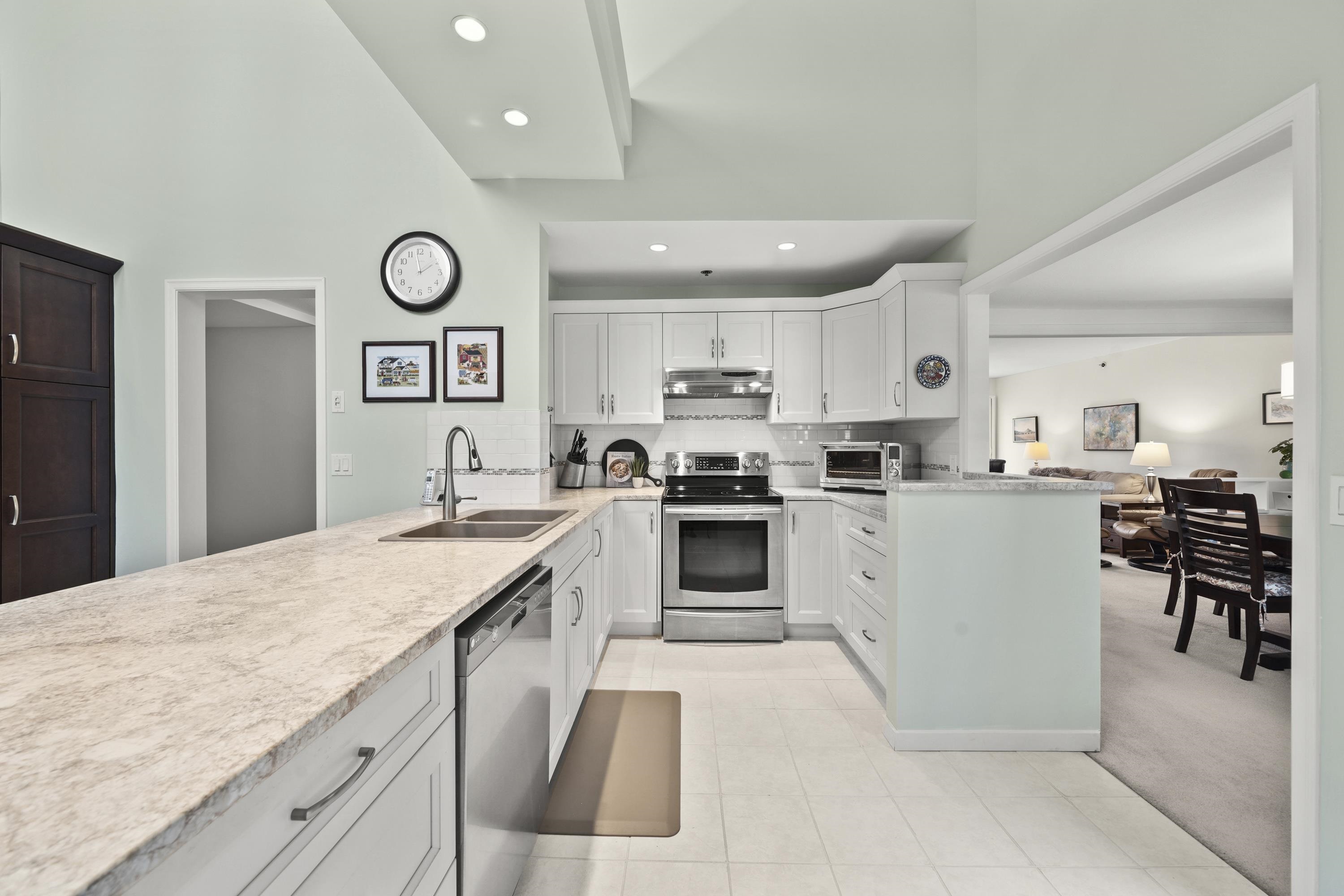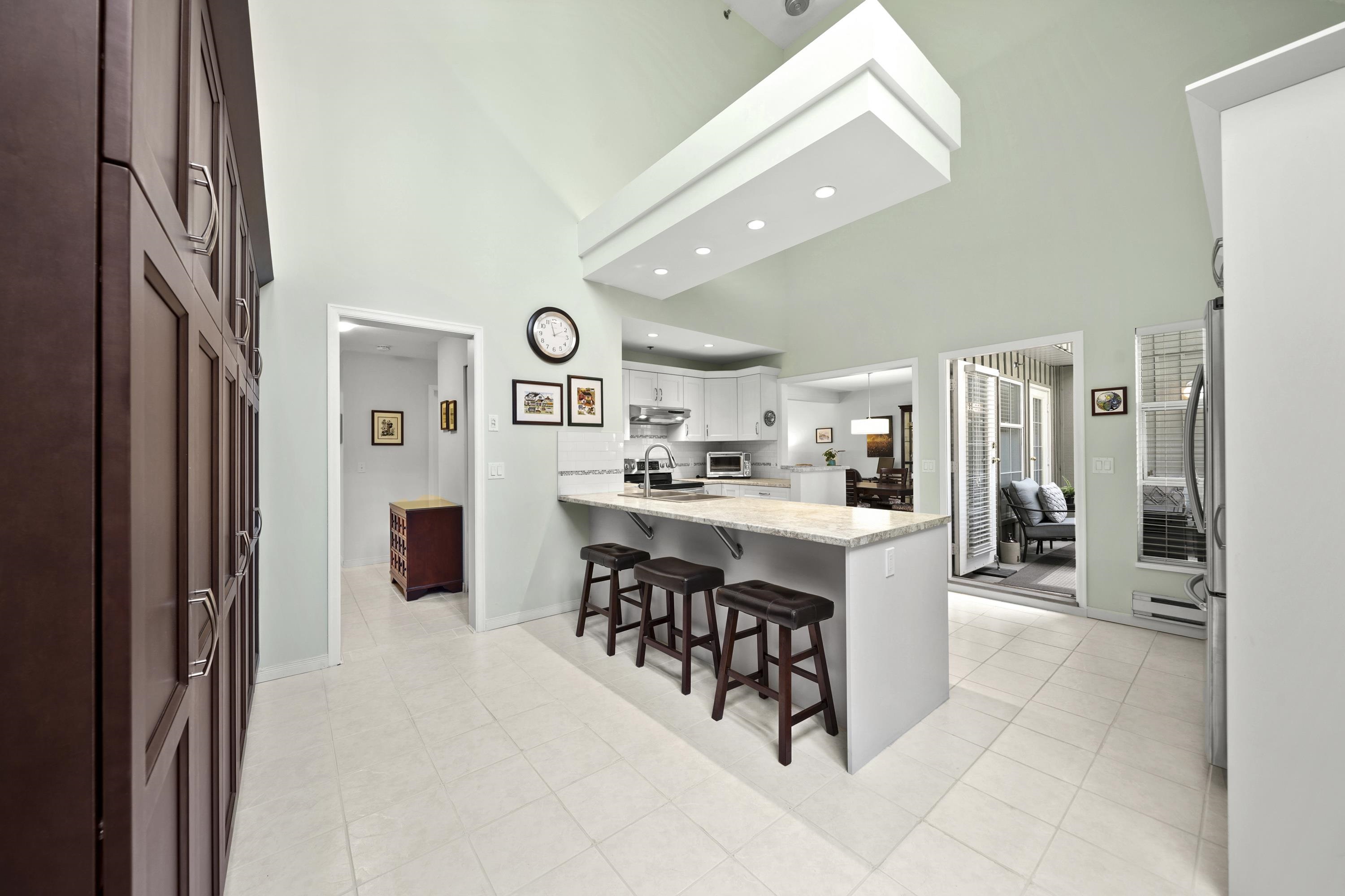 Welcome to Emerald Court! This stunning top-floor condo offers 1,475 sq ft of beautifully designed living space, highlighted by soaring 19-foot vaulted ceilings & skylights that flood the home with natural light. The thoughtfully designed layout features 2 spacious bedrooms, 2 full bathrooms, and two balconies—including one fully enclosed for year-round comfort. Enjoy an updated kitchen with extensive custom cabinetry, lots of storage & stainless steel appliances, flowing seamlessly into generous dining & l...