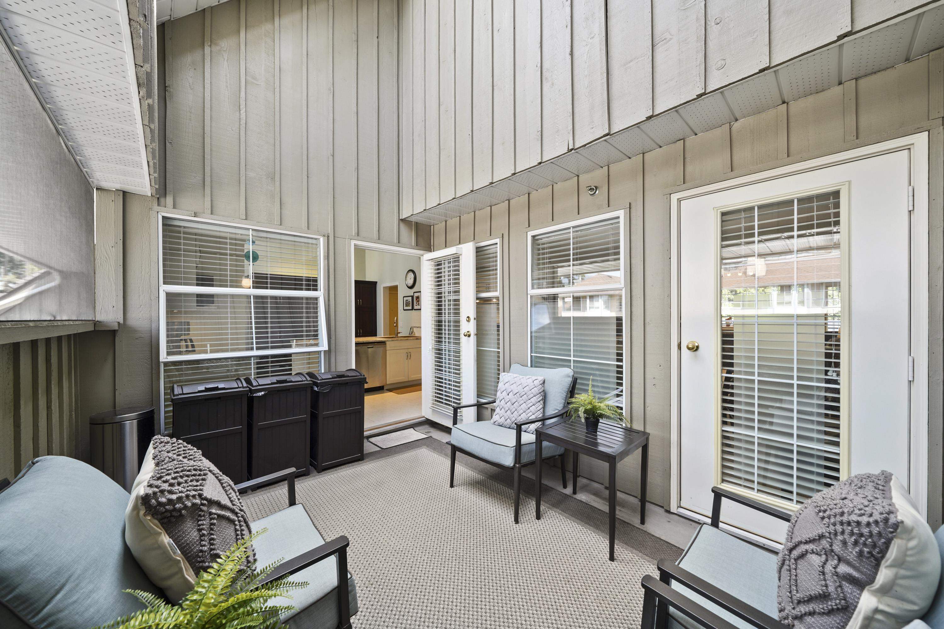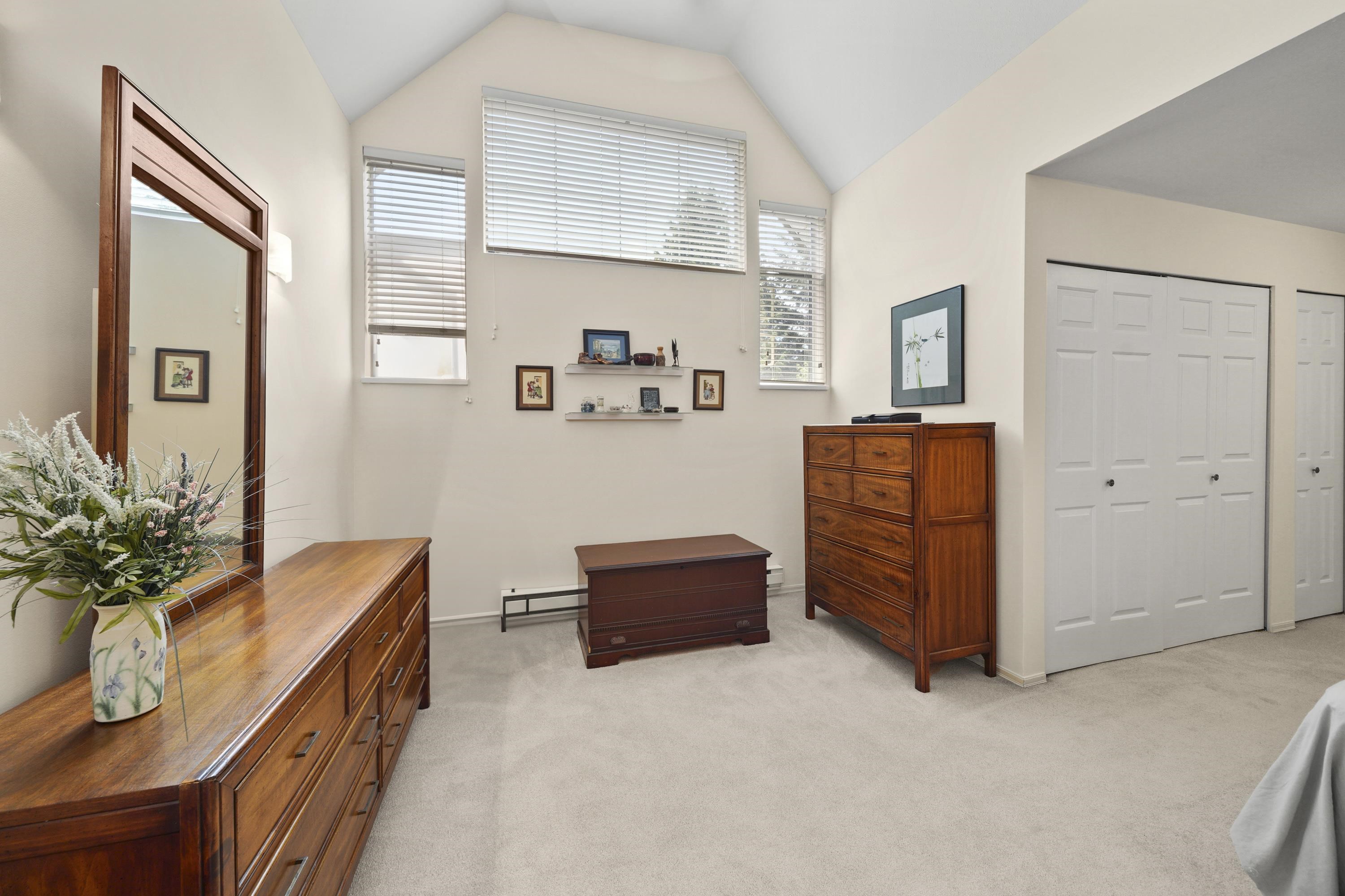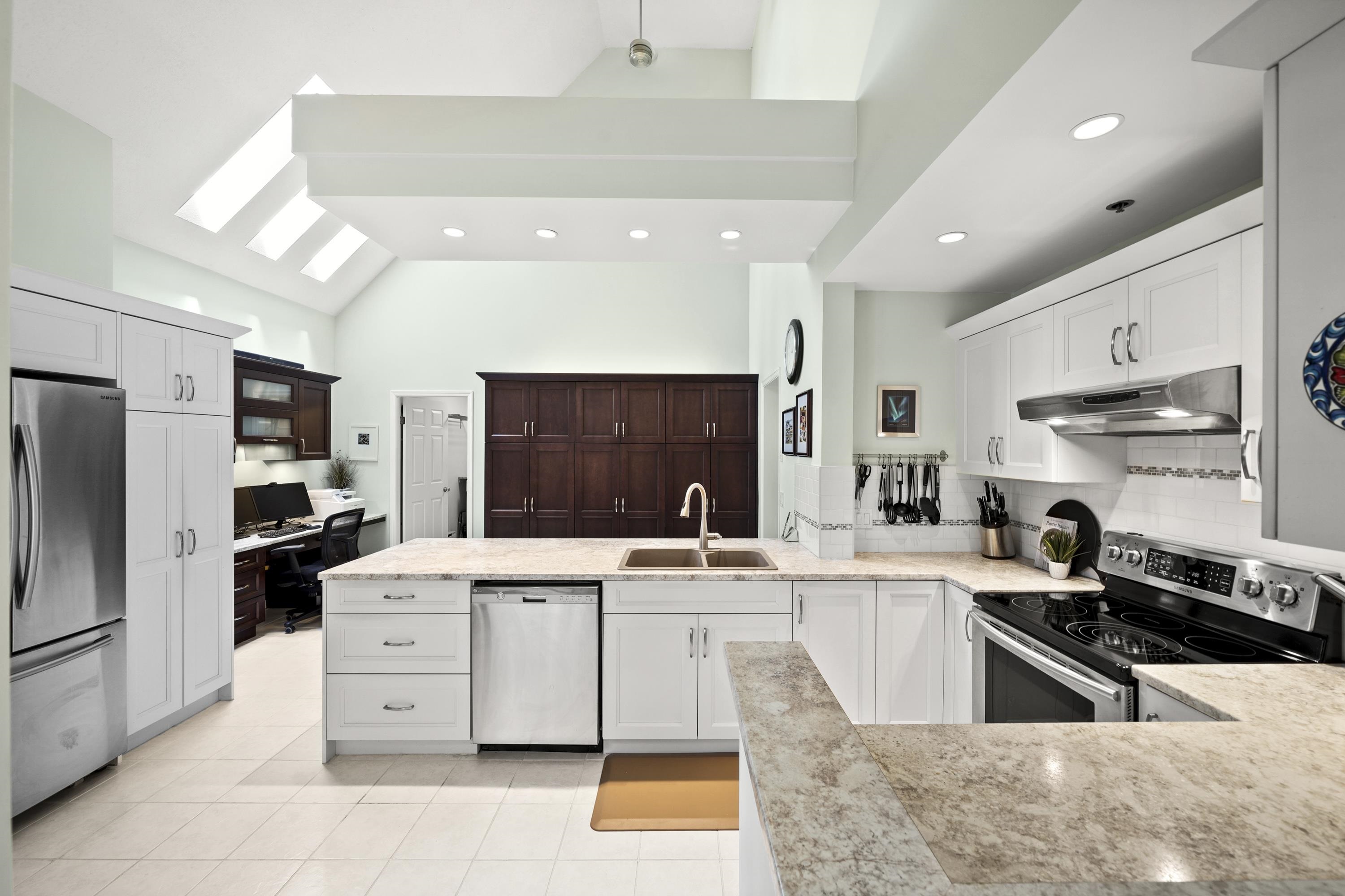 Welcome to Emerald Court! This stunning top-floor condo offers 1,475 sq ft of beautifully designed living space, highlighted by soaring 19-foot vaulted ceilings & skylights that flood the home with natural light. The thoughtfully designed layout features 2 spacious bedrooms, 2 full bathrooms, and two balconies—including one fully enclosed for year-round comfort. Enjoy an updated kitchen with extensive custom cabinetry, lots of storage & stainless steel appliances, flowing seamlessly into generous dining & l...