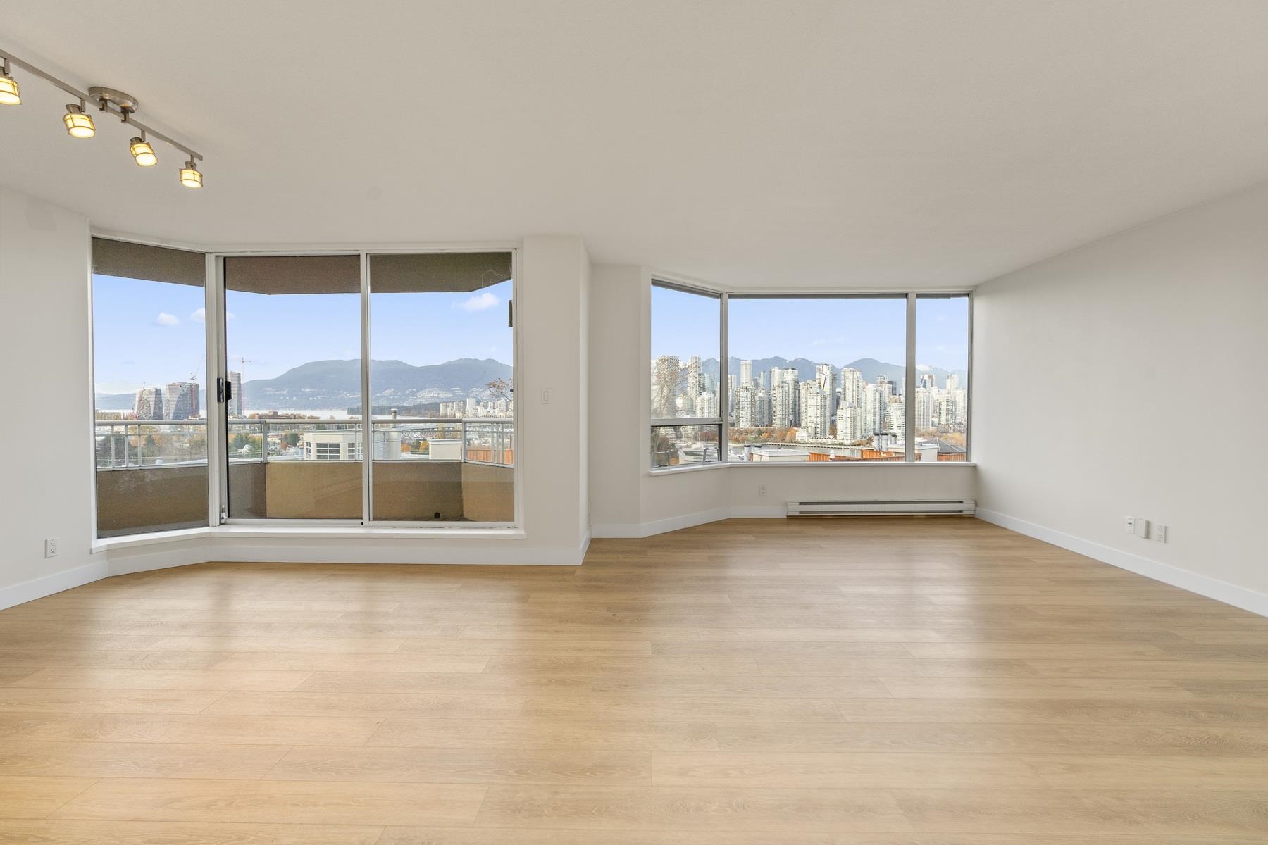 Come home to the Vancouver skyline as the backdrop for your living room. The jaw-dropping 180 degree, panoramic ocean, mountain and city views must be seen to be appreciated! They do not build them like this anymore: exclusive strata with 2 units per floor, 2 side-by-side parking and 2 balconies, all within 2 blocks to the soon-to-open Broadway sky train (Granville station), City Market and more! Two well sized bedrooms + large den (or 3rd kids bedroom). Perfect spacious one level living for downsizers look...