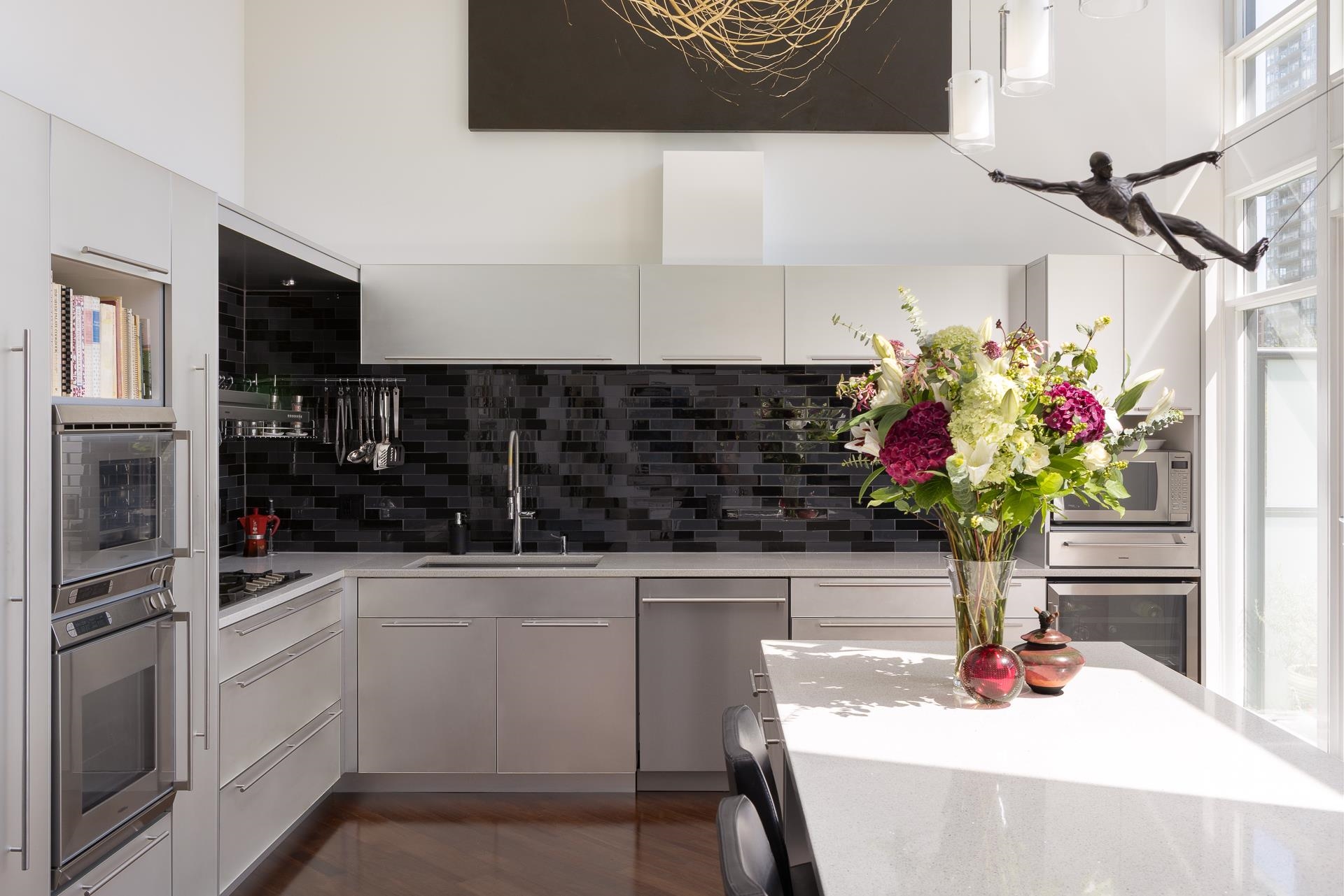 The right art changes how you live; the right space makes it possible. Connoisseurs of art & design will appreciate the 2000sf loft’s grandeur, created when the developer of boutique Tribeca Lofts combined 2 units for a “WOW” space unique to Yaletown. 16-ft ceilings with floor-to-ceiling windows and motorized blinds create uninterrupted wall space & shifting natural light. Concrete construction optimizes acoustic privacy; the shape, wrapped around the quiet courtyard, provides solitude from roads. A refined...
