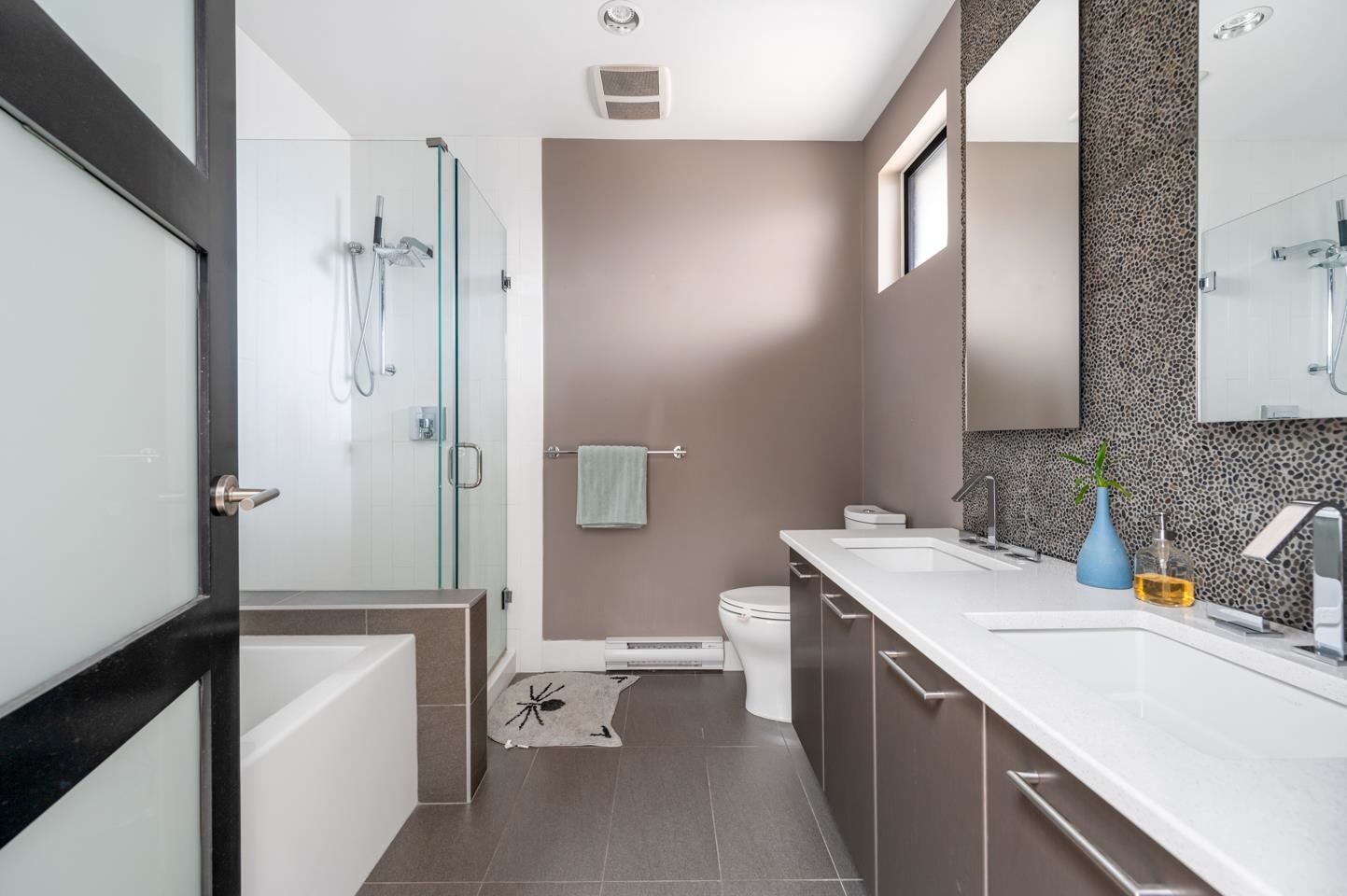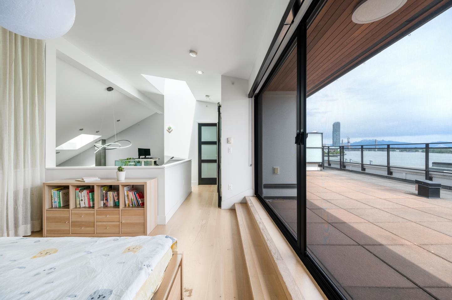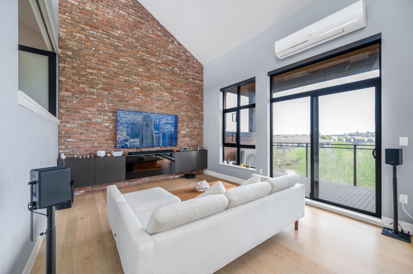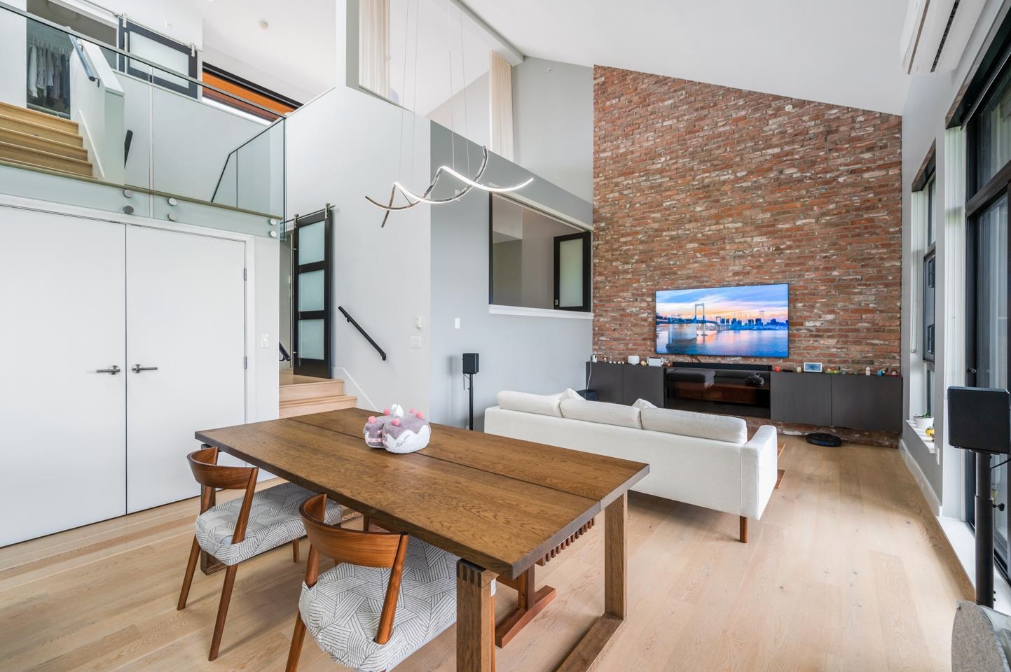 This rarely available penthouse offers a unique blend of modern elegance and urban charm. Featuring 2 bedrooms plus a loft (serve as the master bedroom), this residence boasts 20 ft ceilings, a stunning reclaimed brick feature wall, and an open concept kitchen equipped with quartz countertops and s/s appliances. The spacious dining/living room area provides the perfect setting for entertaining guests. The loft opens up to a magnificent 500 sqf rooftop patio, where you can enjoy mesmerizing water, mountain, ...