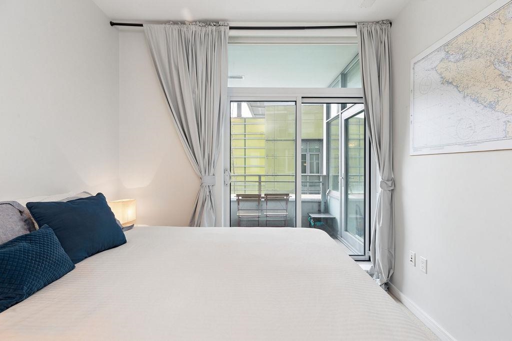 Welcome to your new home at The Brook! A well looked after building in the heart of the sought after Olympic Village. Steps away from cafes, restaurants, parks and the seawall, this spacious one bedroom condo features a flex space that can be used as a pantry, extra storage or a small home office and a quiet outdoor space with ample room for small plants and a cozy breakfast table for two. Finished with engineered hardwood floors, quartz countertops, a gas cooktop, integrated fridge, Miele appliances and in...