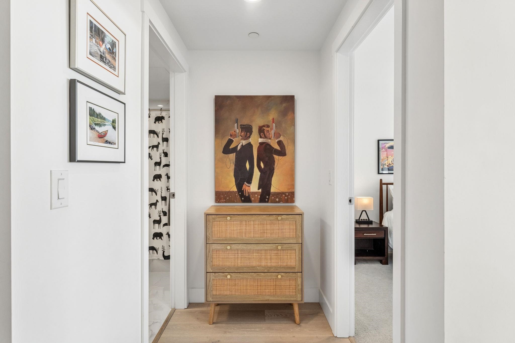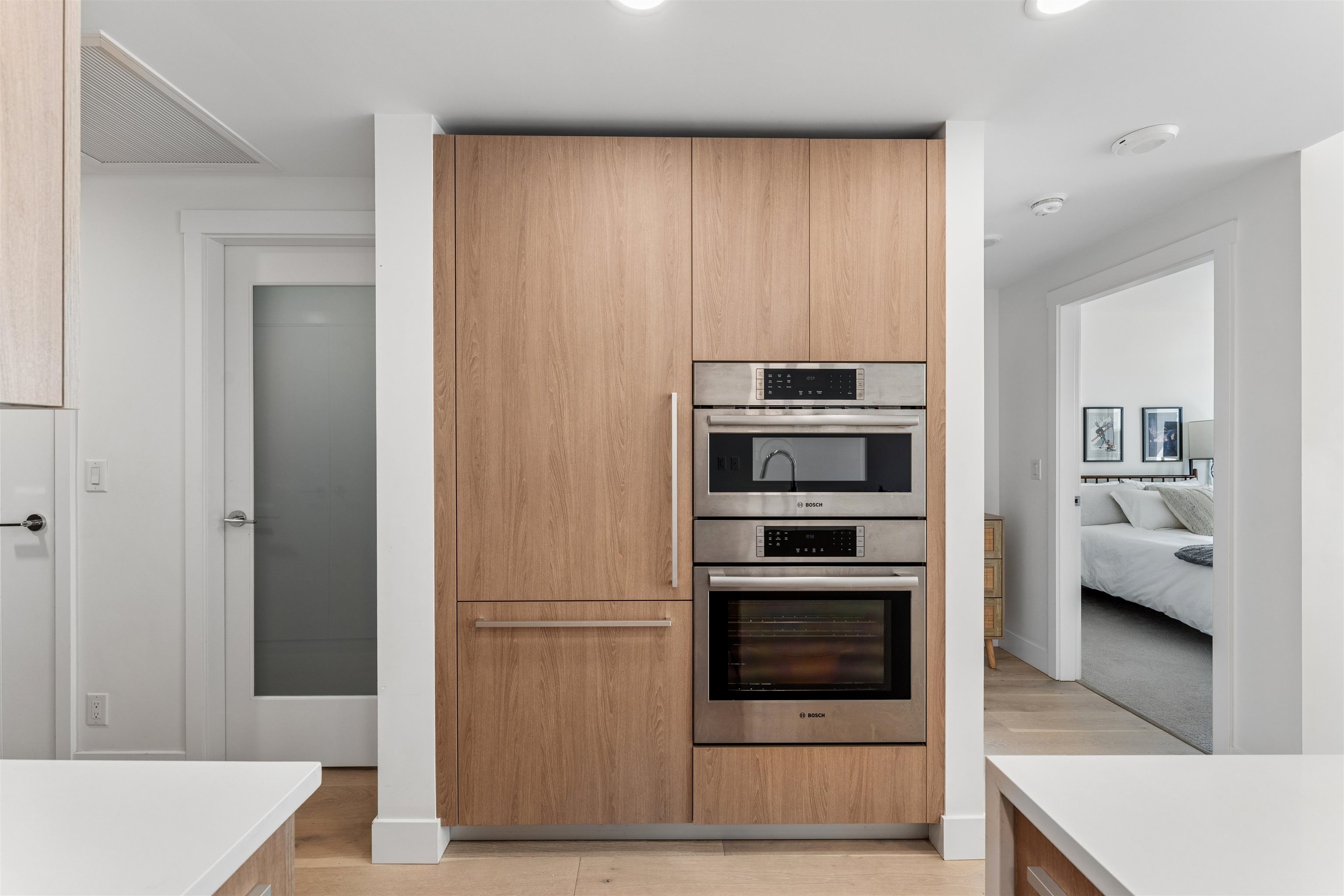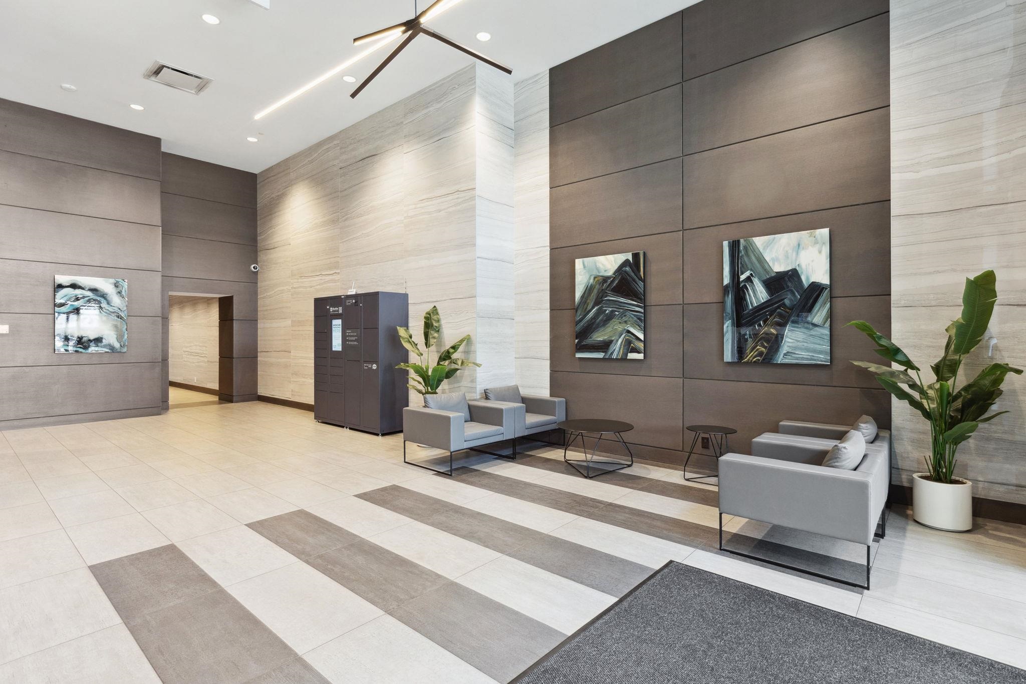 Rare opportunity to own a nearly 800 sq.ft. 1 bed + den at the sought-after Residences by Bosa. This beautifully finished concrete home features an open-concept layout with hardwood flooring, Italian cabinetry, quartz countertops, and premium Bosch integrated appliances including a gas range. Enjoy year-round comfort with central A/C. Bright and south-facing, overlooking the expansive podium gardens with beautifully designed outdoor spaces. Includes in-suite laundry, 1 secure parking stall, and oversized st...