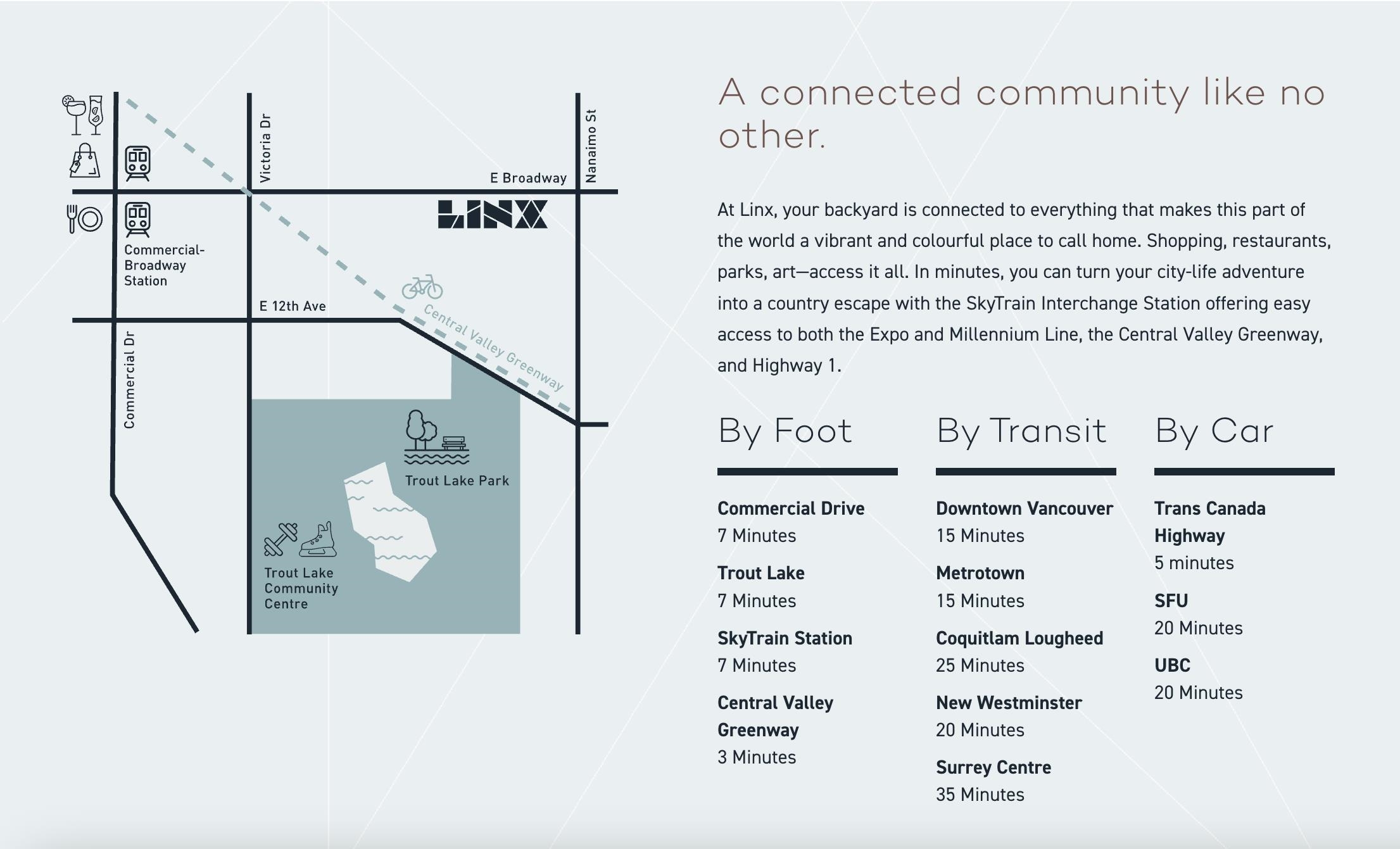 LINX by Lotus Capital in vibrant Grandview-Woodland. This 1 bed + flex home offers 548 sq ft of efficient living plus a 100 sq ft balcony for seamless indoor-outdoor flow. The modern kitchen features quartz countertops, integrated European appliances and sleek two-tone cabinetry. Floor-to-ceiling windows draw in natural light throughout. The flex space suits an office or storage, and the primary bedroom includes a walk-in closet. Upgraded bike locker included. Estimated completion in November. Near Trout La...