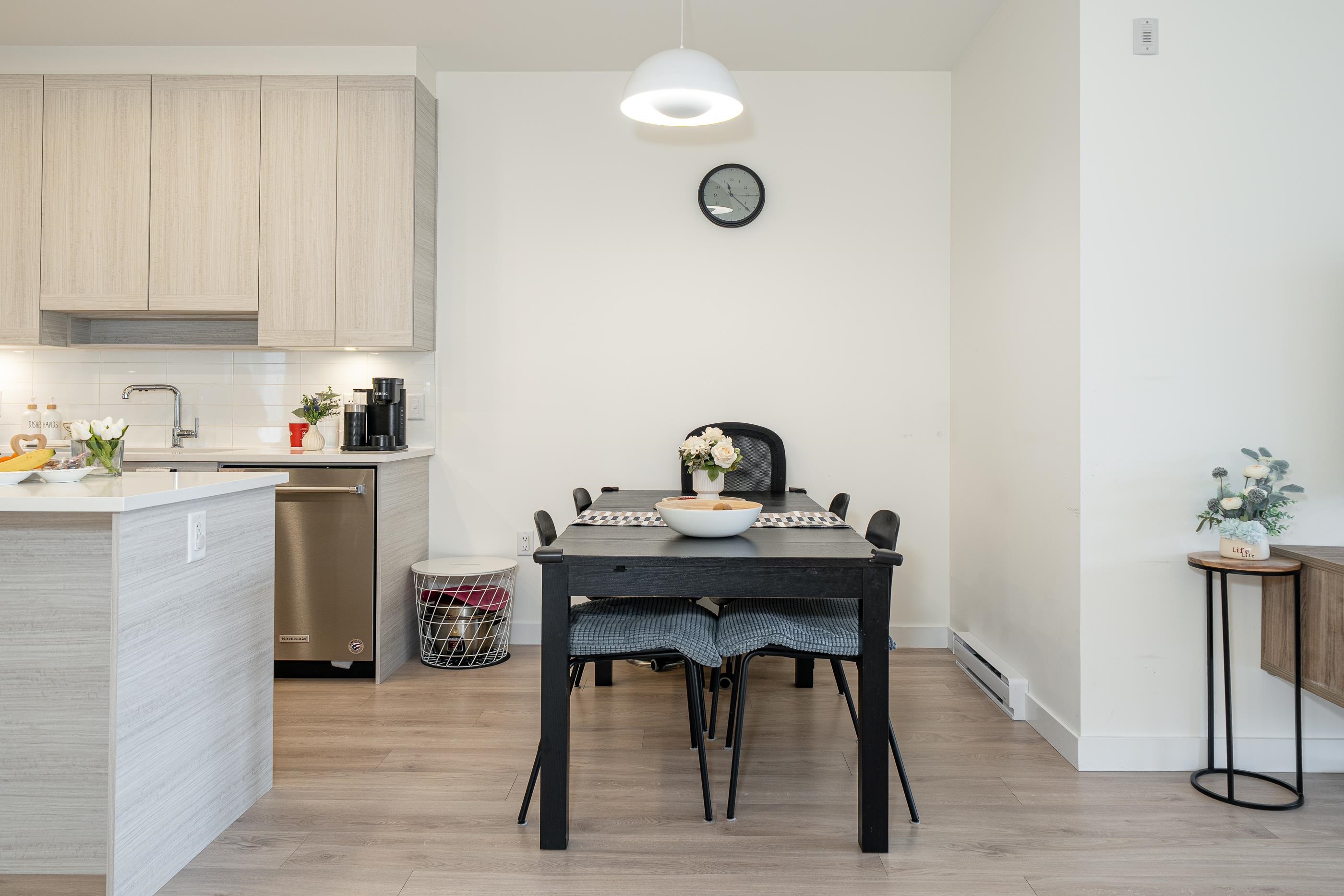 Welcome to this bright and inviting two-bedroom home at Cedar Creek by Ledingham McAllister in the heart of Edmonds, Burnaby. Designed with young families in mind, this home offers 9’ ceilings and a smart open layout that feels spacious yet cozy. The modern kitchen with a large island is perfect for everyday meals and gathering together. The living and dining area opens onto a private balcony with a quiet, open view — a lovely space to relax. Complete with stainless steel appliances, front-loading washer an...