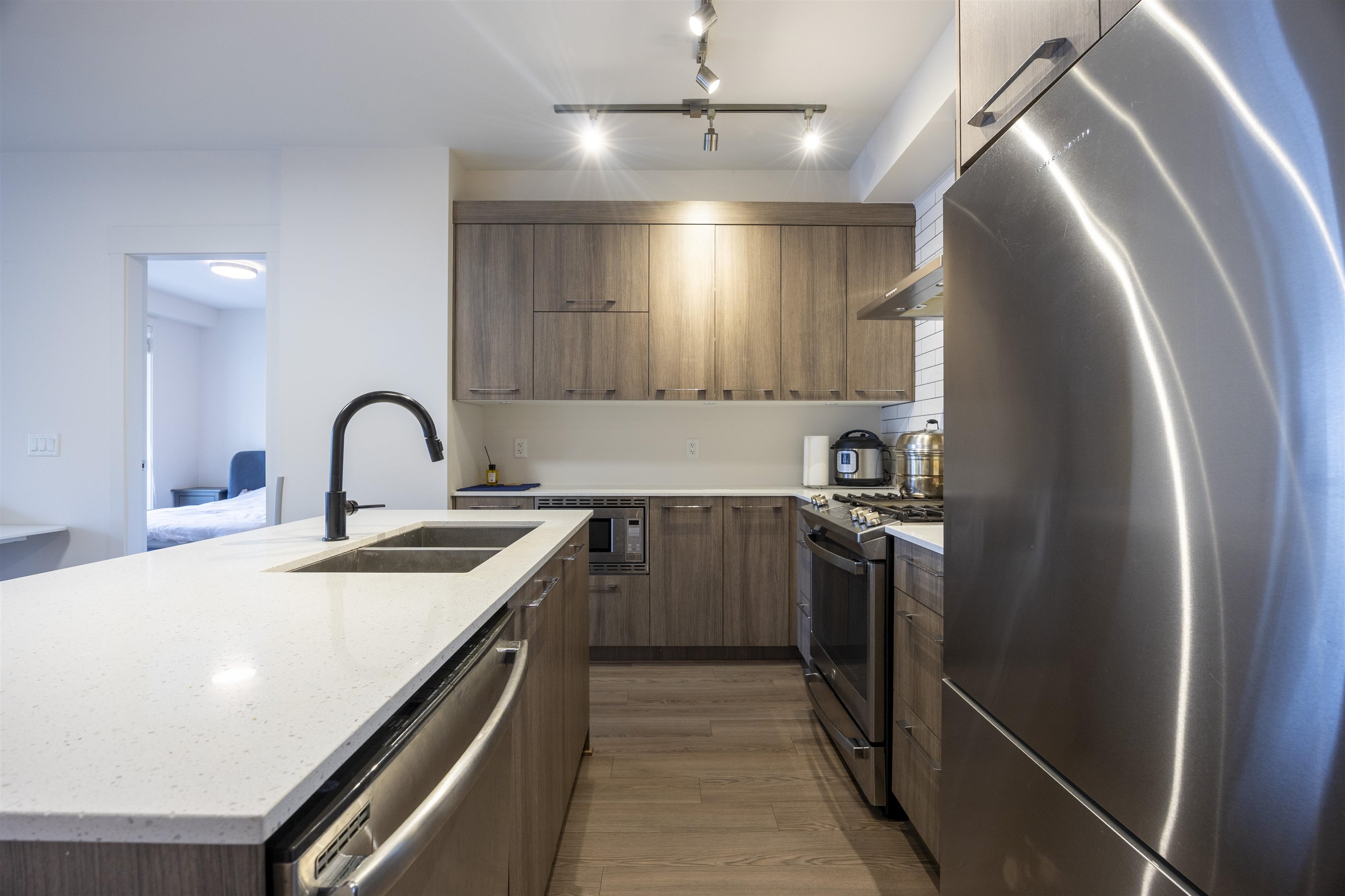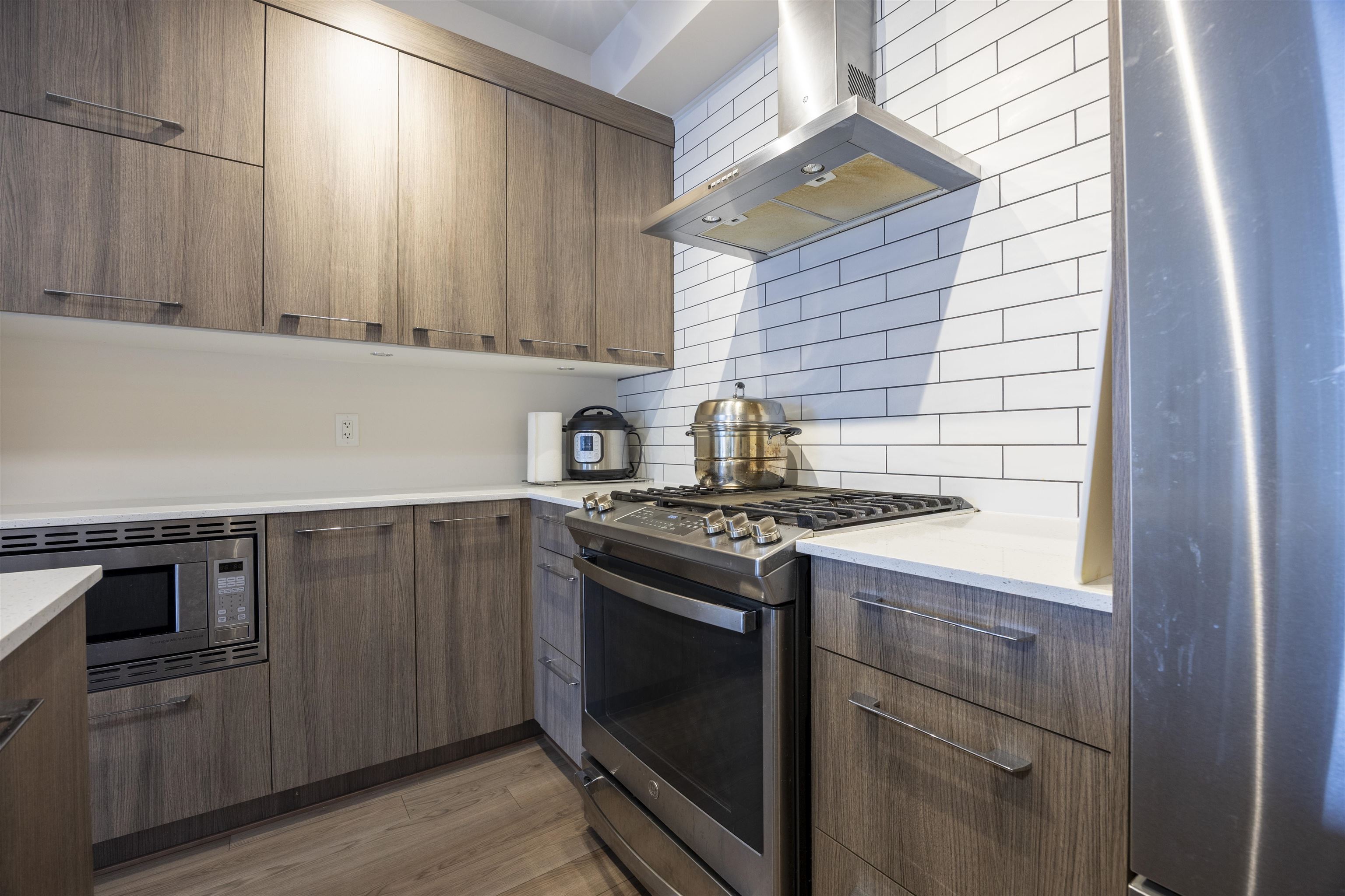 Capitol by Porte Homes, located in the vibrant core of Downtown New Westminster. This well-designed 2-bed, 2-bath home +1 den offers an open-concept layout based on the former display suite floor plan, featuring 9' ceilings, in-suite laundry, wide-plank laminate flooring, soft-close cabinetry, full-size stainless steel appliances, quartz counters, tile backsplash, and a spacious balcony. Just steps to the SkyTrain, shops, dining, schools, and parks. Enjoy modern comfort with a thoughtfully planned interior ...