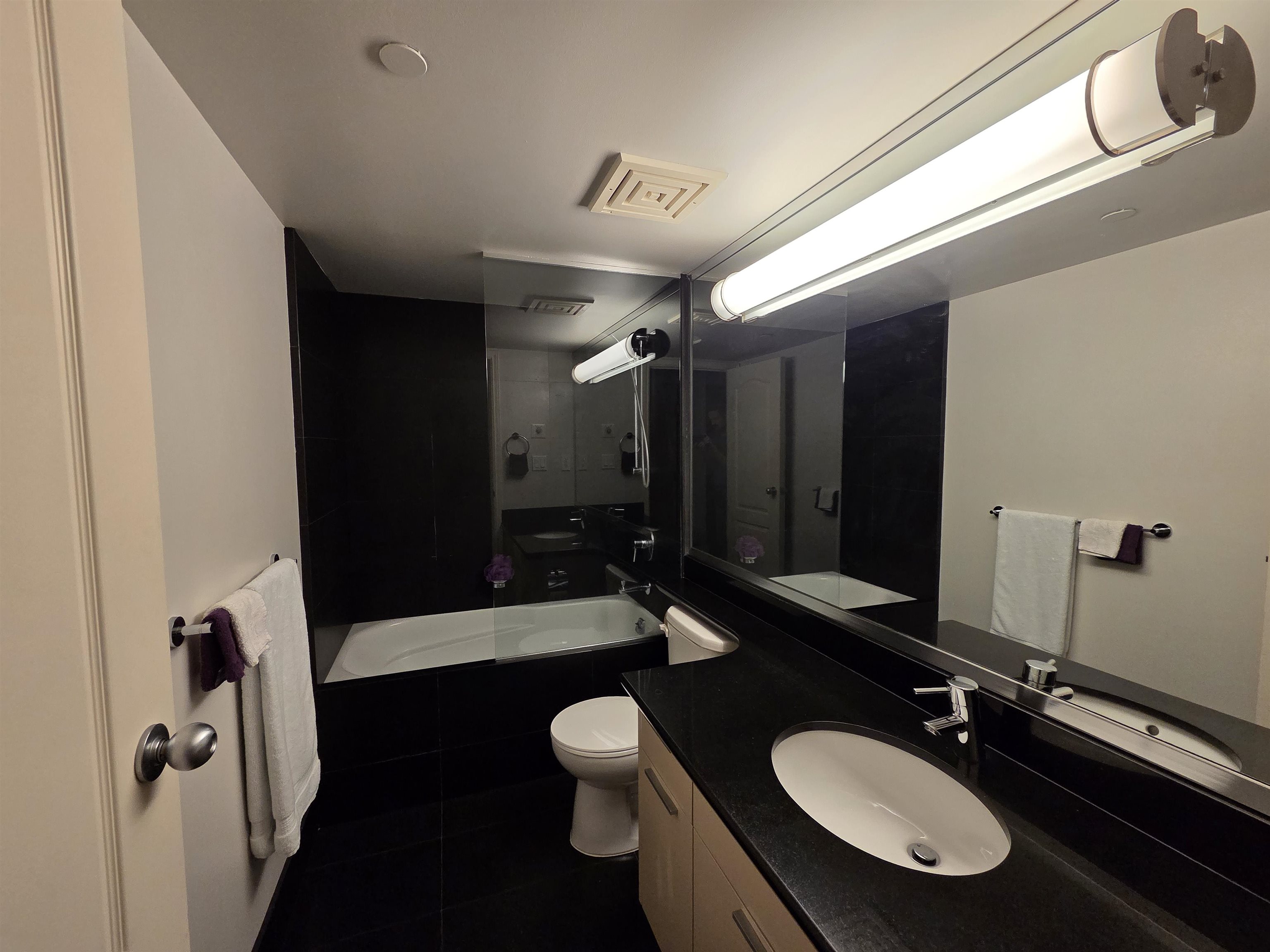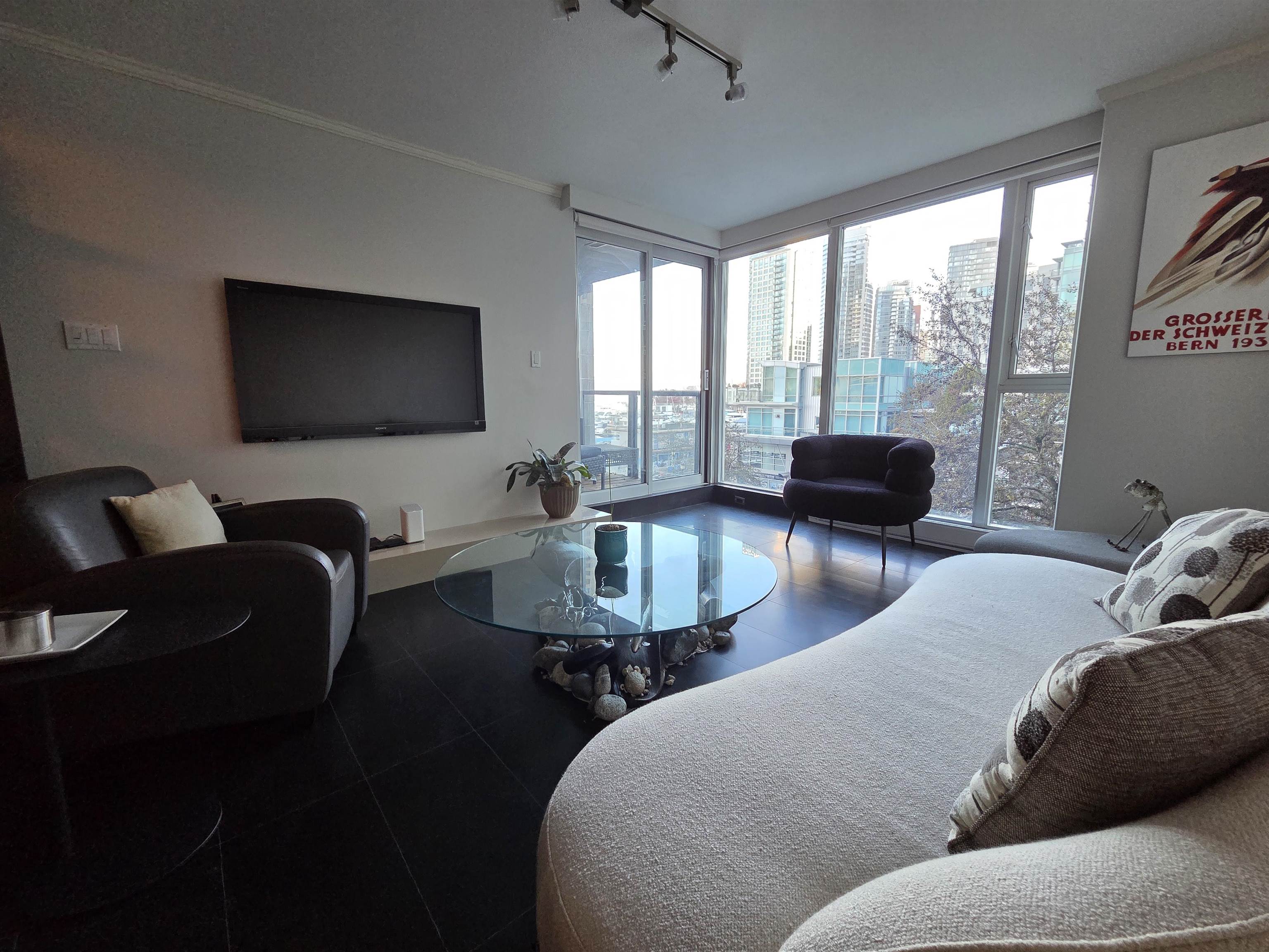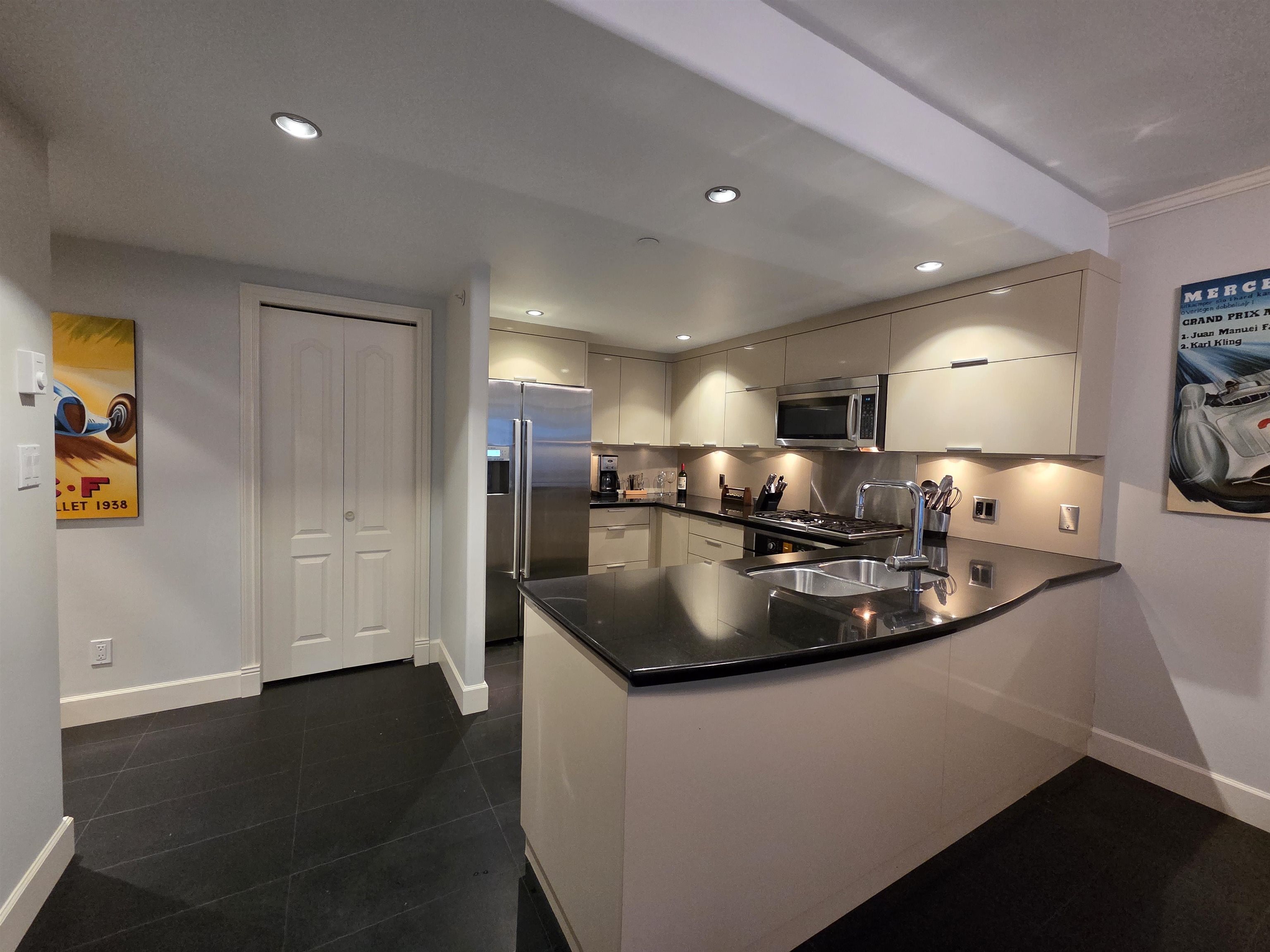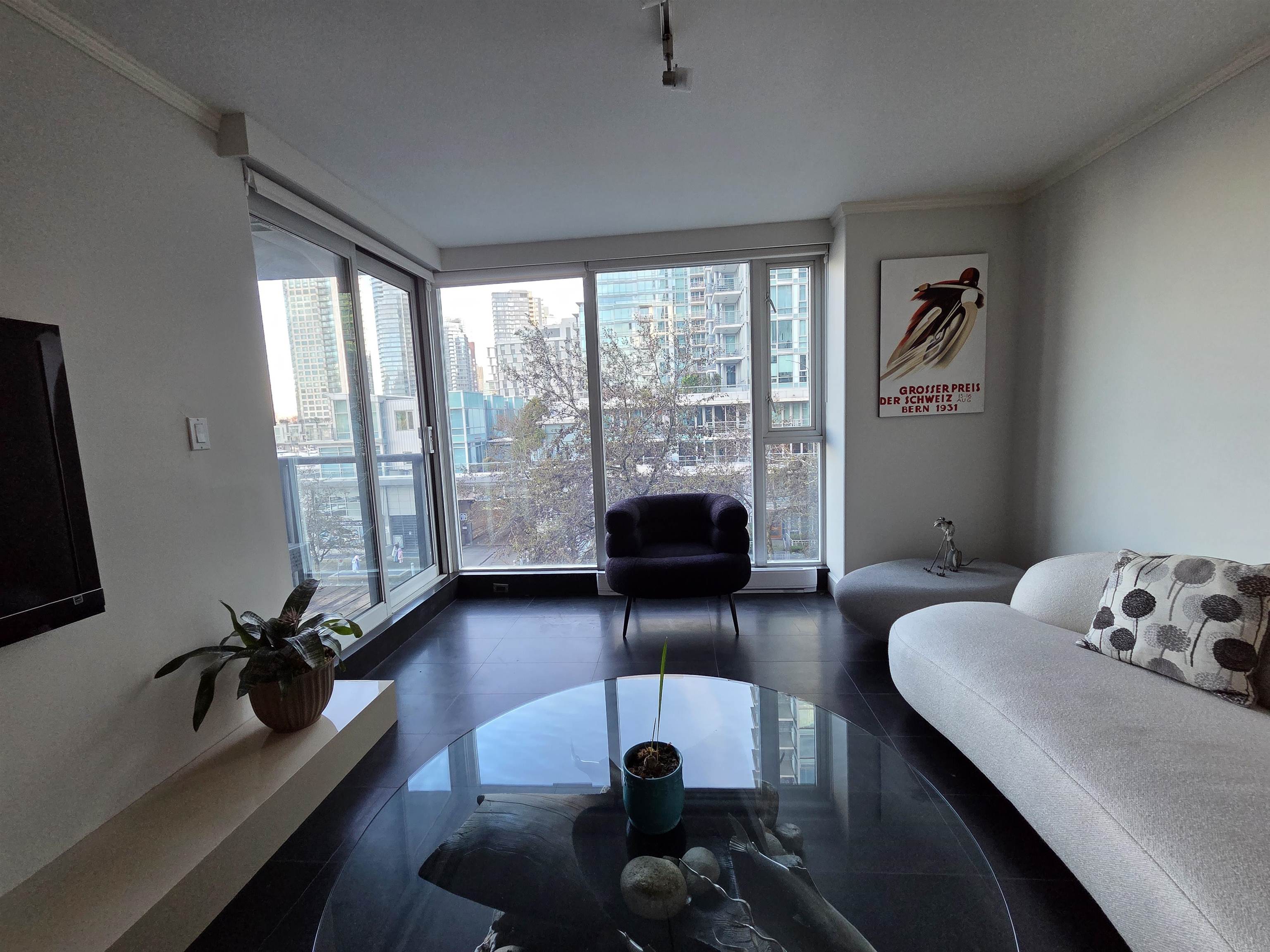 Large 1-bedroom waterfront condo at exclusive Bauhinia. Open concept kitchen with SxS fridge, gas cooktop, breakfast bar & dining area. Both living room & bedroom open to large covered balcony with seawall & water views to Coal Harbour & North Shore Mountains. Updates include premium tile flooring & recent paint. Outstanding resort-style amenities feature 25 m swimming pool, large gym, whirlpool, squash courts, gardens, billiards room, theatre, meeting room, car wash, plenty of guest parking, storage & 24-h...