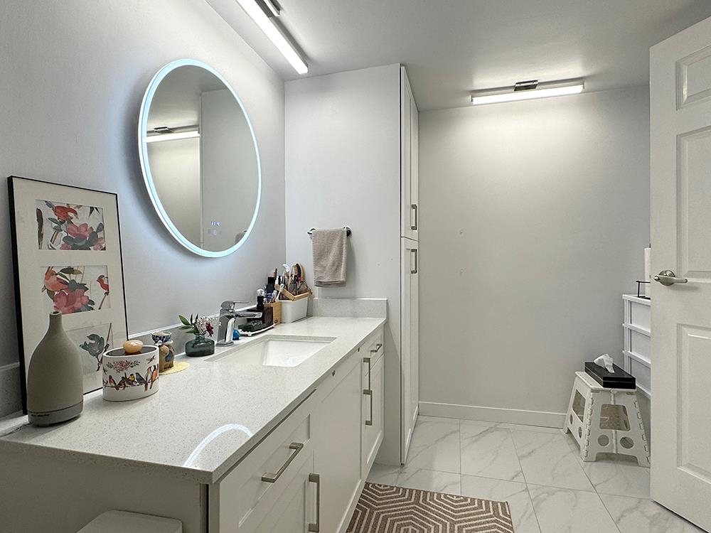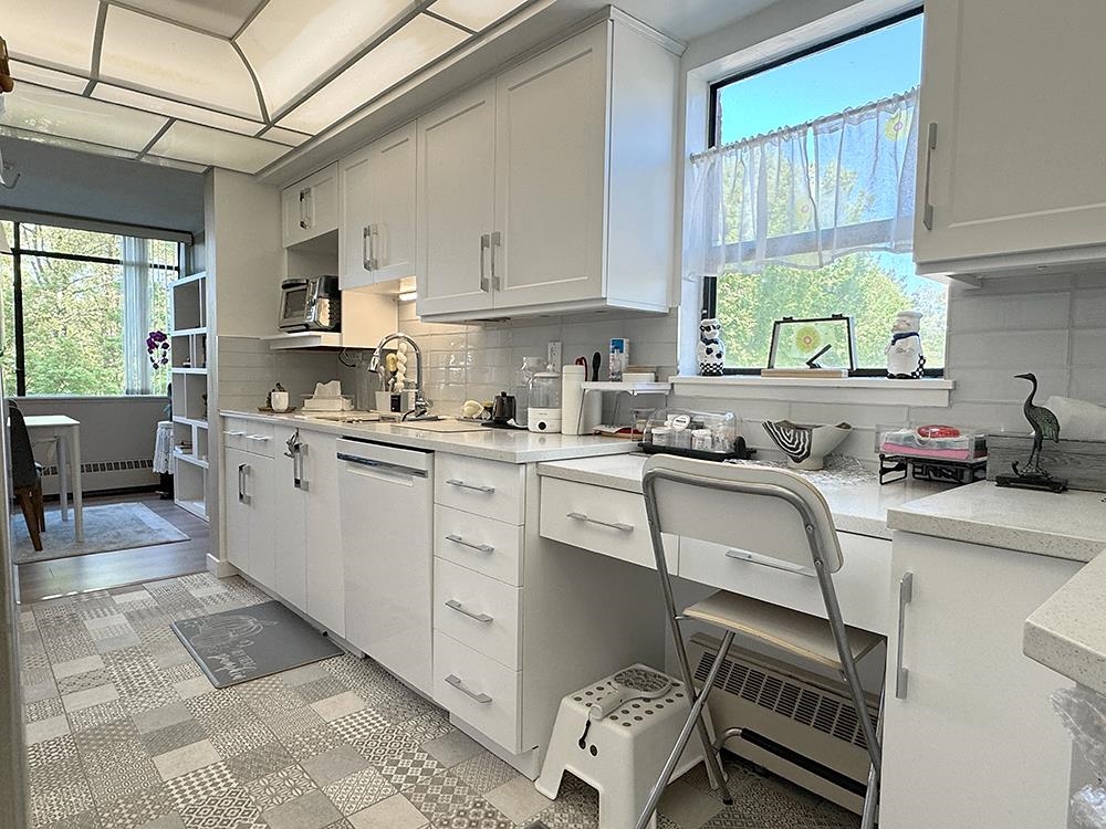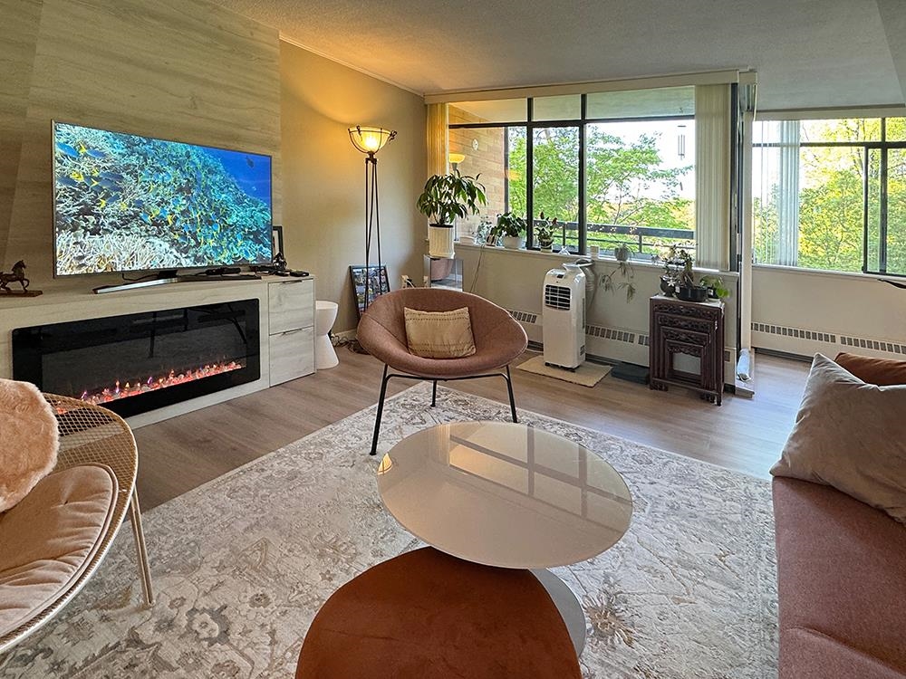 Customized kitchen design and many others! This condo has been RENOVATED with STYLE and loving care! Amazing floor-to-ceiling mirror wall, unique kitchen floor tiles, lighting fixtures and more! New cabinets, new bathtub tiles, new countertops, extra wide LED fireplace with open balcony for breaths of fresh air while you enjoy your morning coffee or evening wine in complete privacy surrounded by trees. Breathtaking shades of red and orange leaves in the fall season! Absolutely ELEGANT and RELAXING! Spacious...