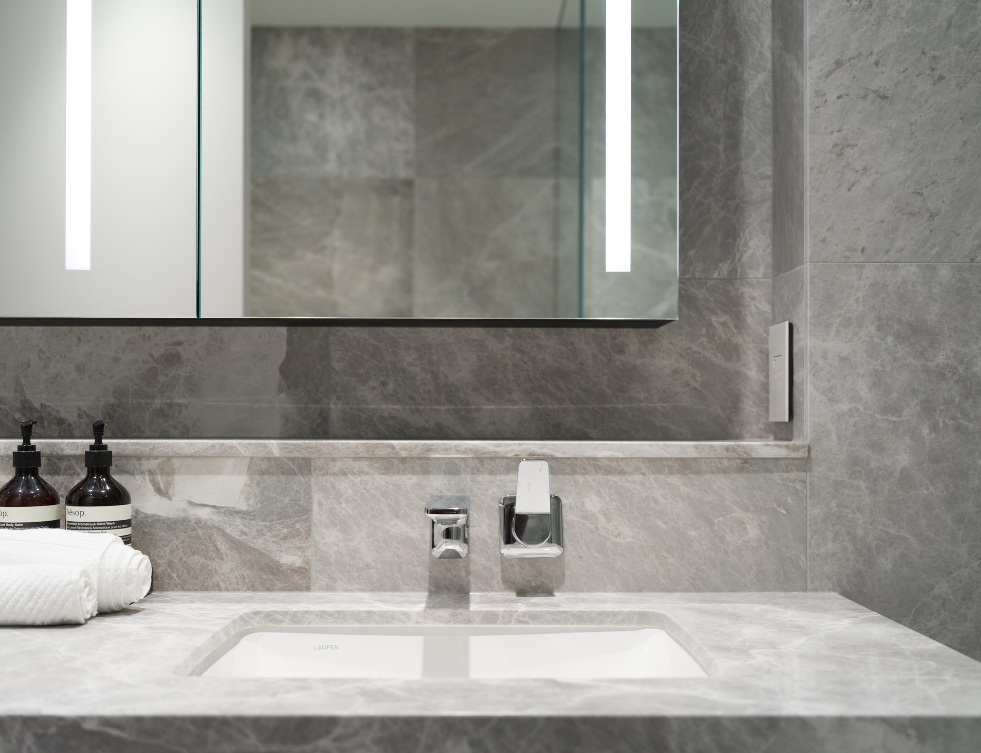 Tesoro by Concert Properties marks the final residential chapter on False Creek. Limited to 92 boutique homes, this two-bedroom residence offers 1,174 SF of design-led living anchored by a bespoke Poliform kitchen with integrated Gaggenau appliances and marble detailing. Bathrooms feature floating Poliform vanities, full-height marble, radiant in-floor heating and Dornbracht fixtures. Enjoy Poliform closets, Savant automation, air conditioning and a European-inspired spa with concierge.