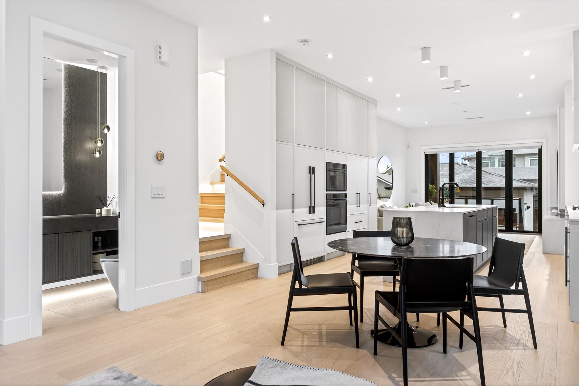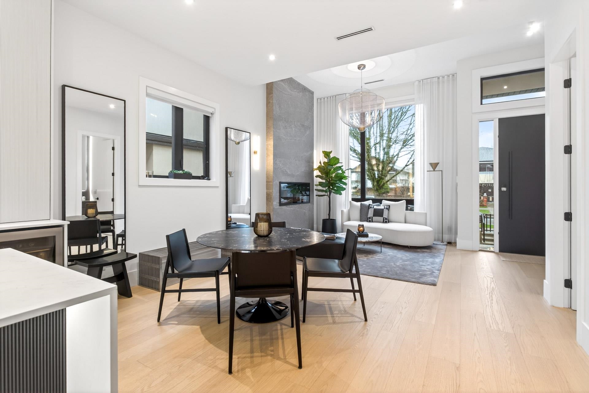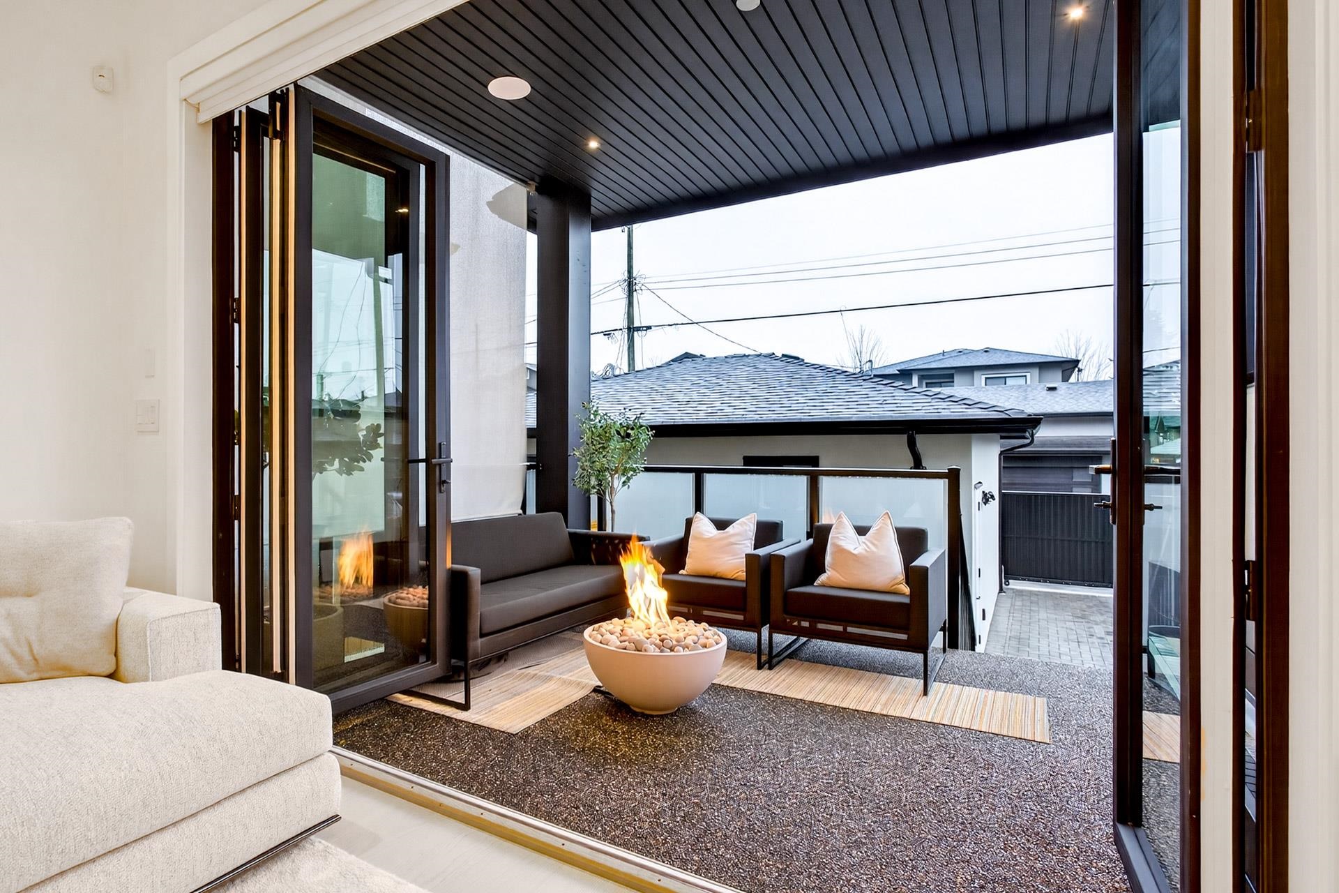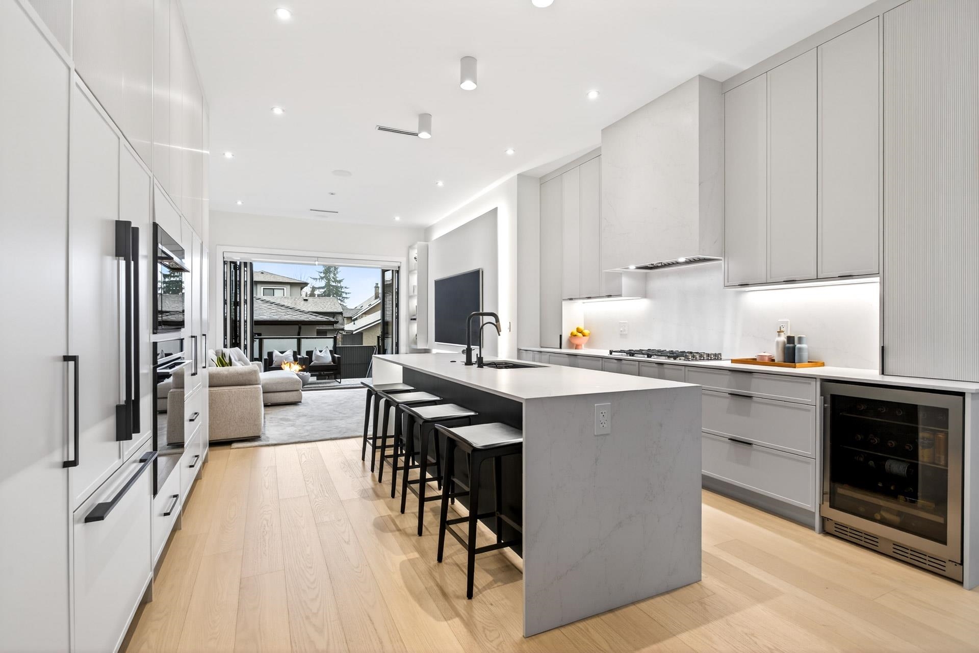 Stunning Vancouver Heights premium luxury finishes & custom design throughout. Soaring 13-ft ceilings elevate the open-concept main floor, while folding patio doors open to a south-facing covered porch with gas firepit—perfect for entertaining. Designer European chandeliers add refined ambient lighting. The upper offers a spacious primary retreat with a large walk-in closet featuring an LG Styler, plus an office with integrated millwork and a full laundry room. Upstairs bathrooms include high-end Toto Neore...