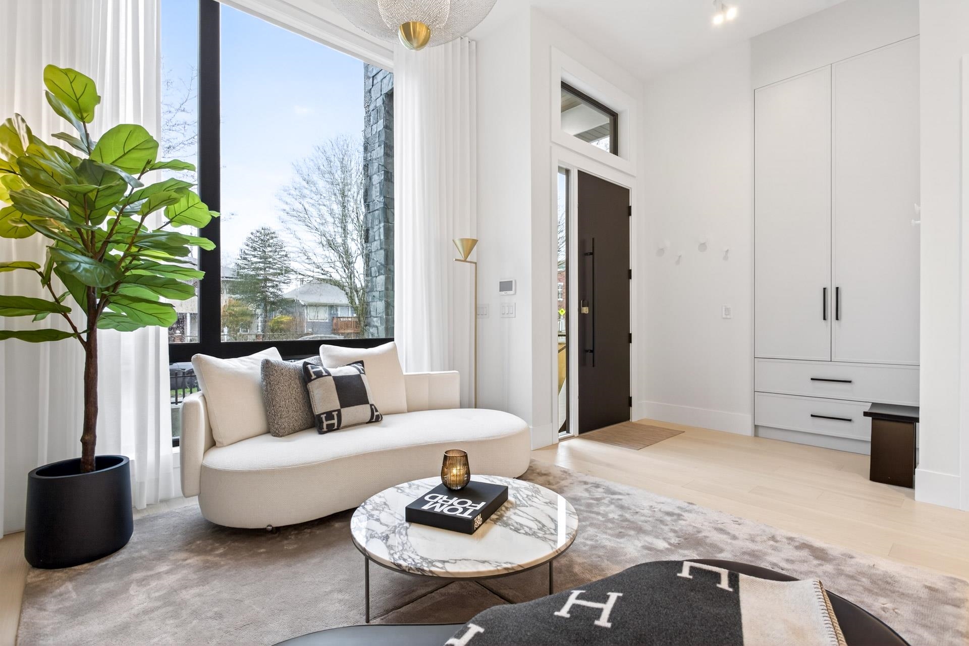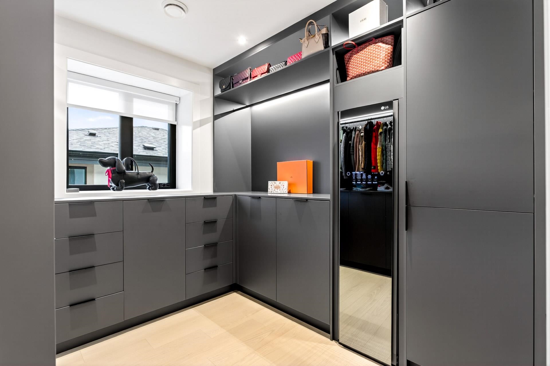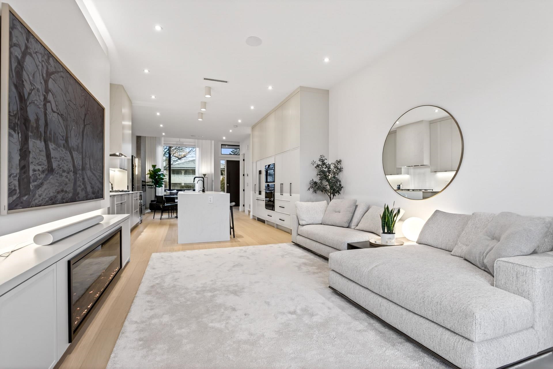 Stunning Vancouver Heights premium luxury finishes & custom design throughout. Soaring 13-ft ceilings elevate the open-concept main floor, while folding patio doors open to a south-facing covered porch with gas firepit—perfect for entertaining. Designer European chandeliers add refined ambient lighting. The upper offers a spacious primary retreat with a large walk-in closet featuring an LG Styler, plus an office with integrated millwork and a full laundry room. Upstairs bathrooms include high-end Toto Neore...