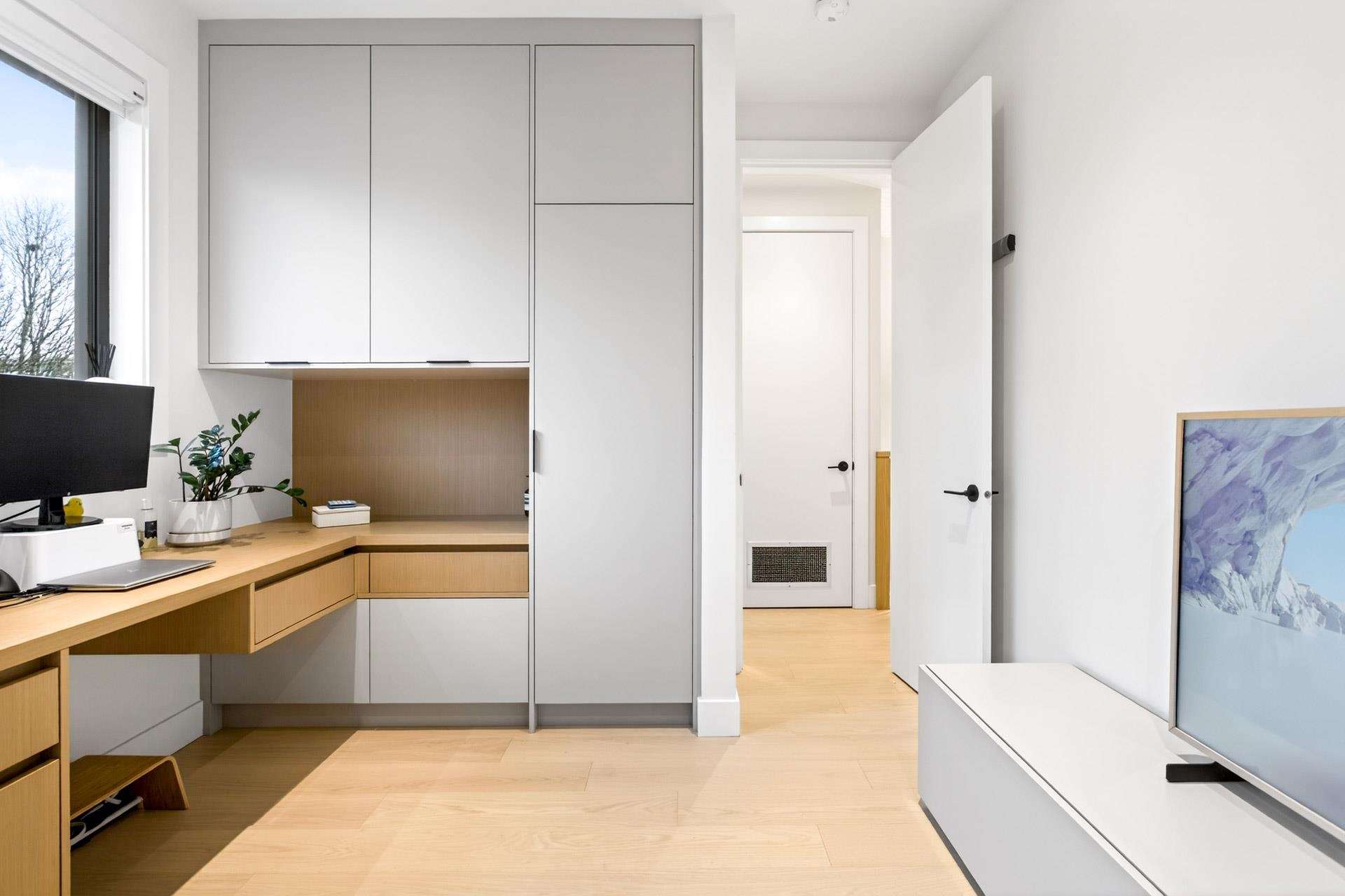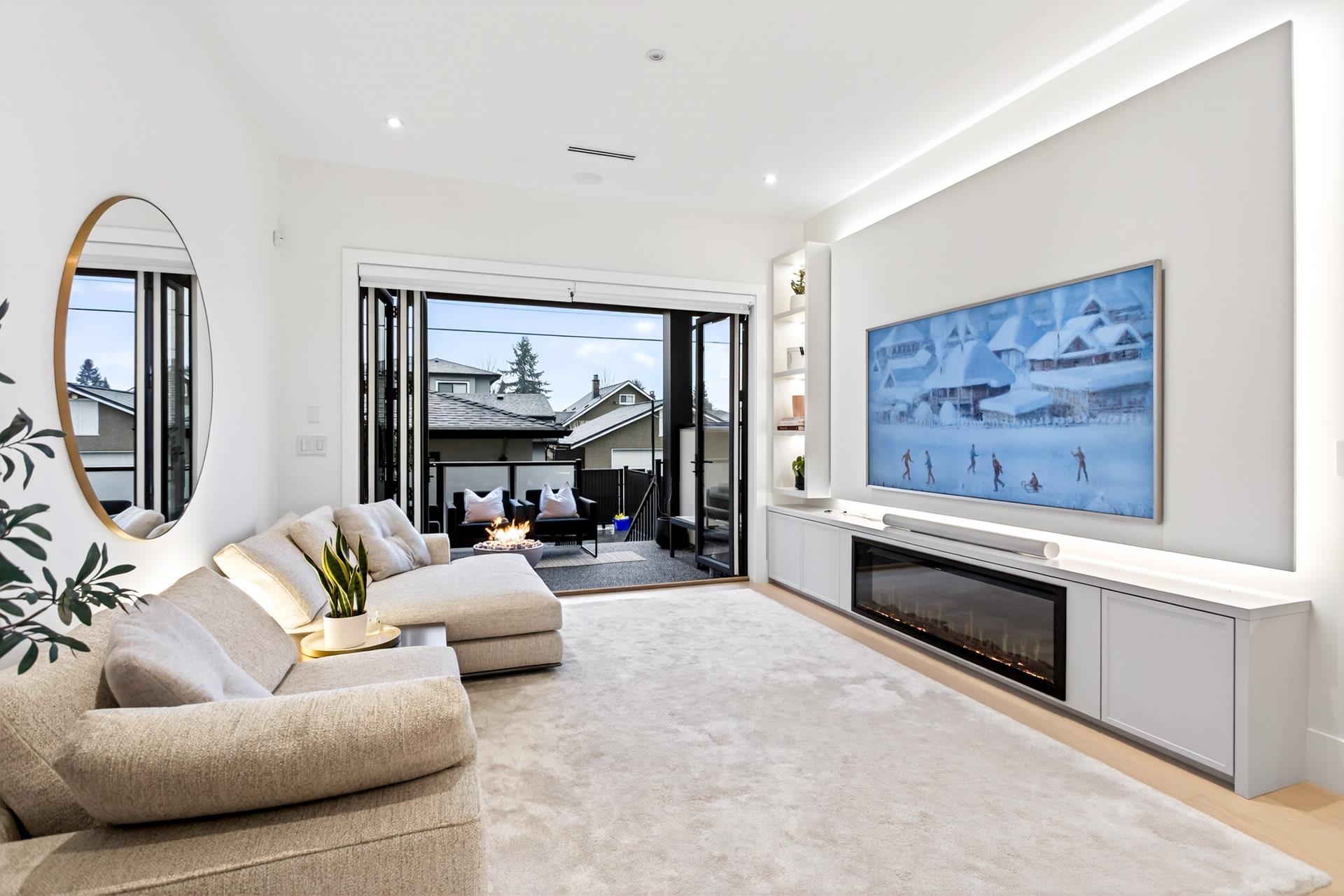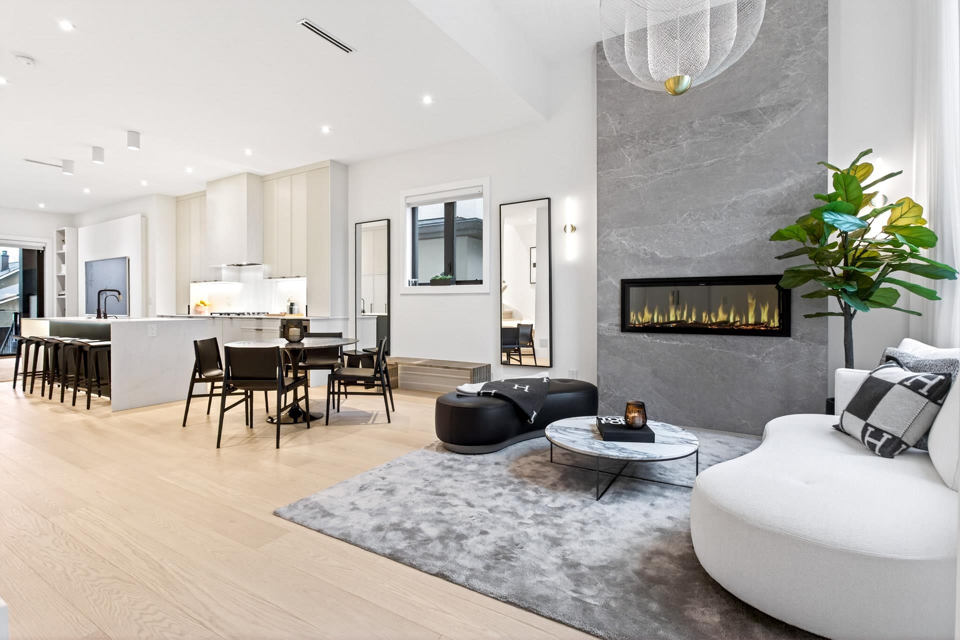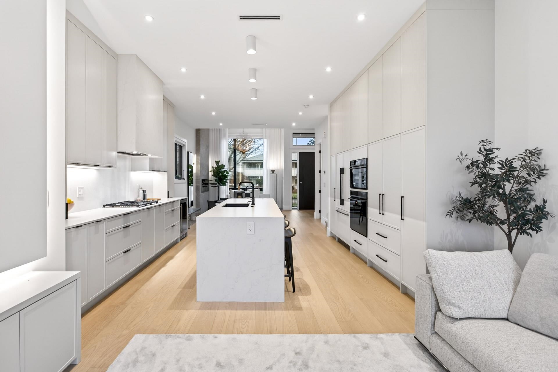 Stunning Vancouver Heights premium luxury finishes & custom design throughout. Soaring 13-ft ceilings elevate the open-concept main floor, while folding patio doors open to a south-facing covered porch with gas firepit—perfect for entertaining. Designer European chandeliers add refined ambient lighting. The upper offers a spacious primary retreat with a large walk-in closet featuring an LG Styler, plus an office with integrated millwork and a full laundry room. Upstairs bathrooms include high-end Toto Neore...