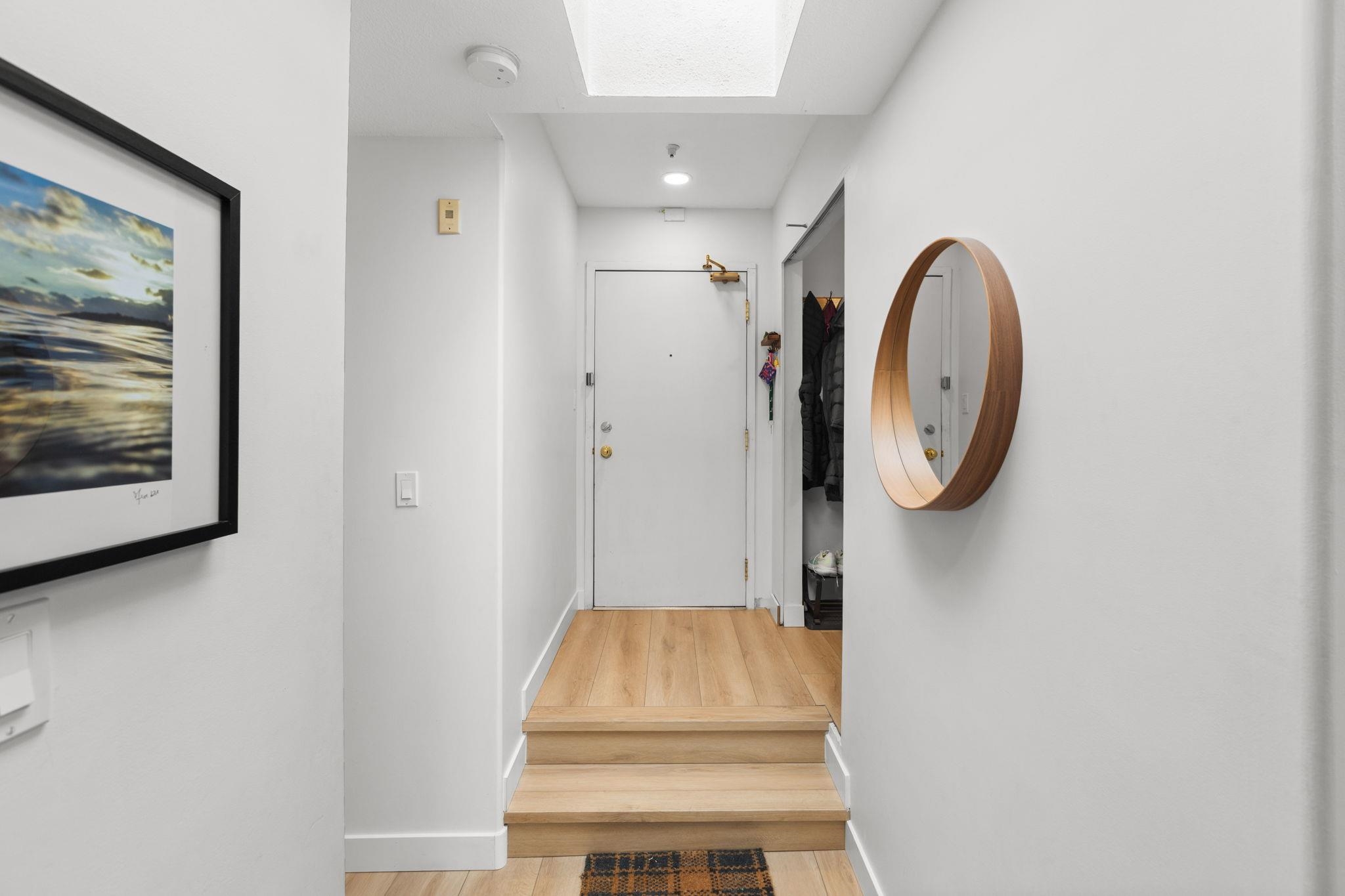 Experience quiet city living in this spacious top-floor home located in one of Trout Lake's most sought-after pockets. Just steps from Trout Lake and the popular Farmers Market, this residence offers the best of urban convenience and nature. Only minutes from the energy of Commercial Drive, this corner, south-facing 1 bedroom, 1 bathroom home is filled with natural light. Features include skylights, generous storage, tasteful updates, and a well-maintained building with a proactive strata. Includes one par...