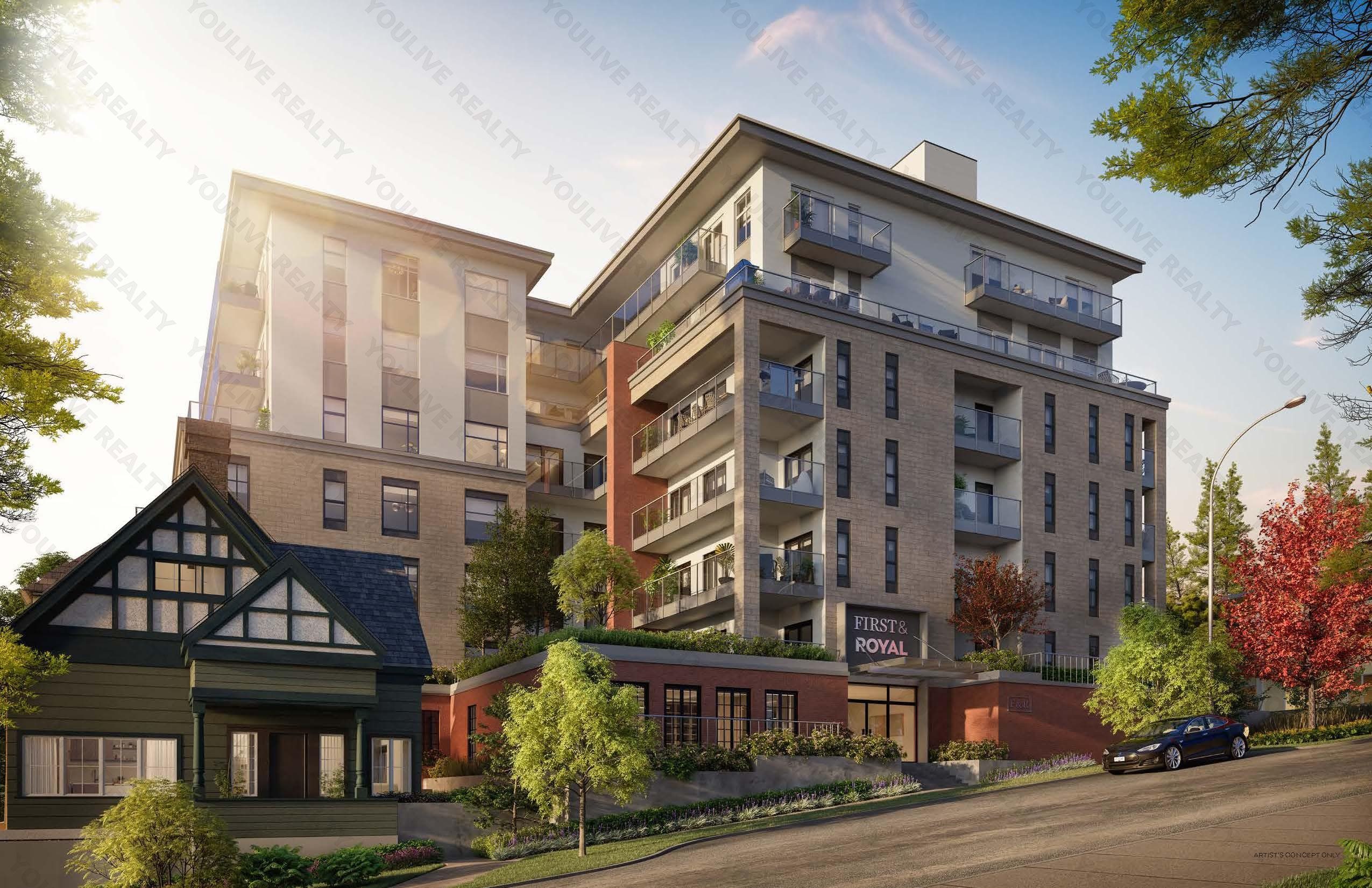 Assignment of contract. Welcome to First & Royal by Areva Developments, a well-designed 1 bedroom home offering 506 sq ft of functional living space. Featuring a light, modern colour scheme, this residence includes heat pump AC, with a smart layout that maximizes comfort and efficiency. Complete with 1 EV ready parking stall and 1 storage locker, this home is perfect for first time buyers and investors! Stunning amenities include a rooftop deck with outdoor theatre and lounge area, gym, indoor movie theatre...