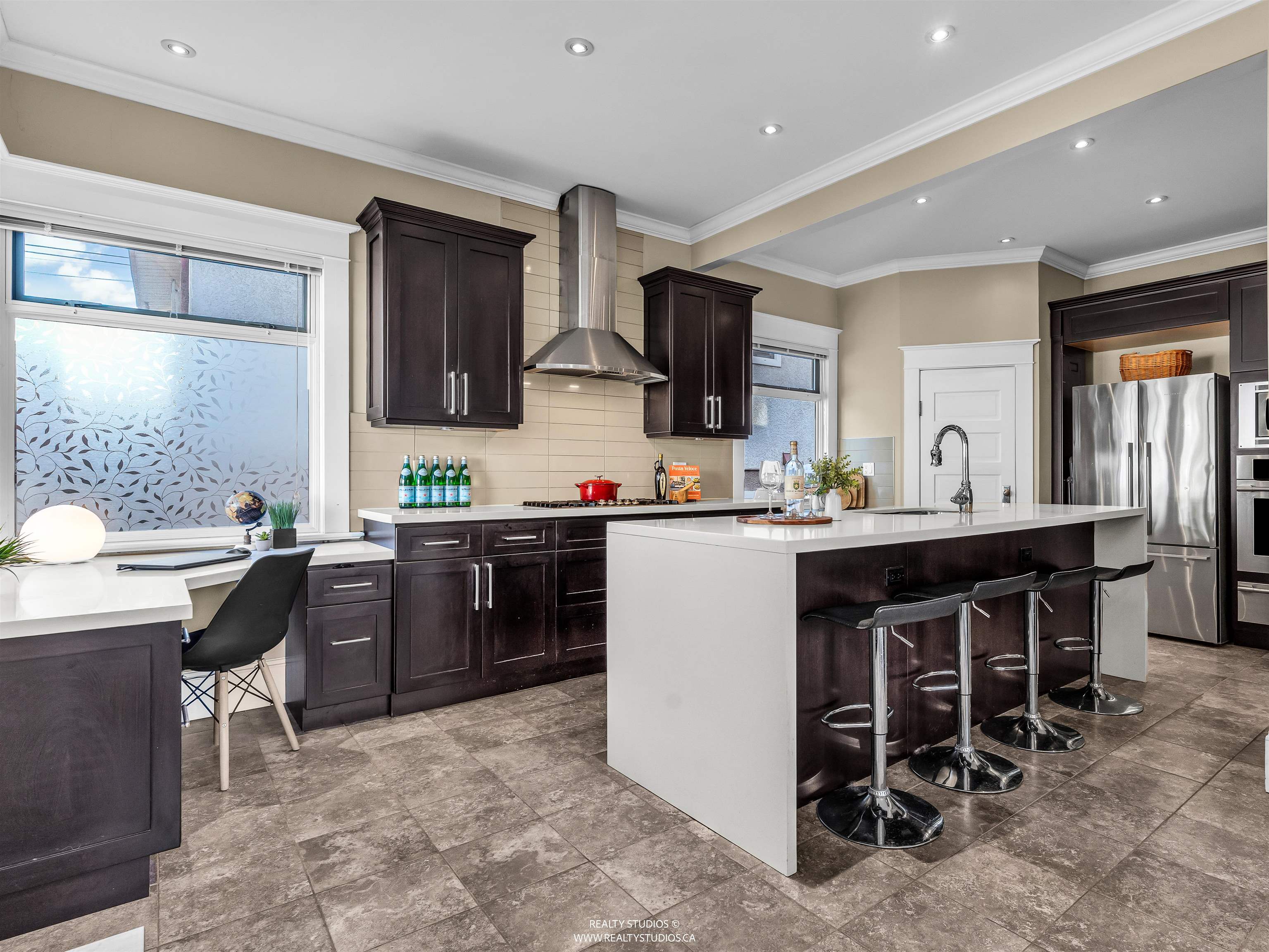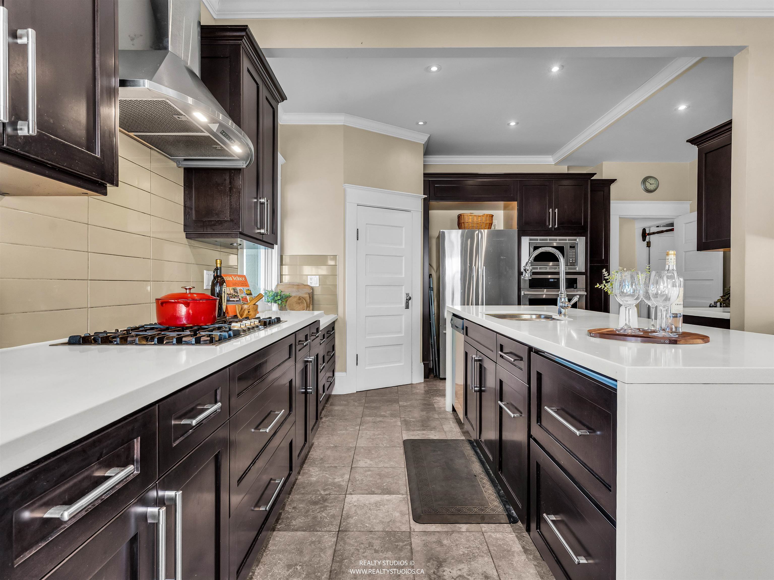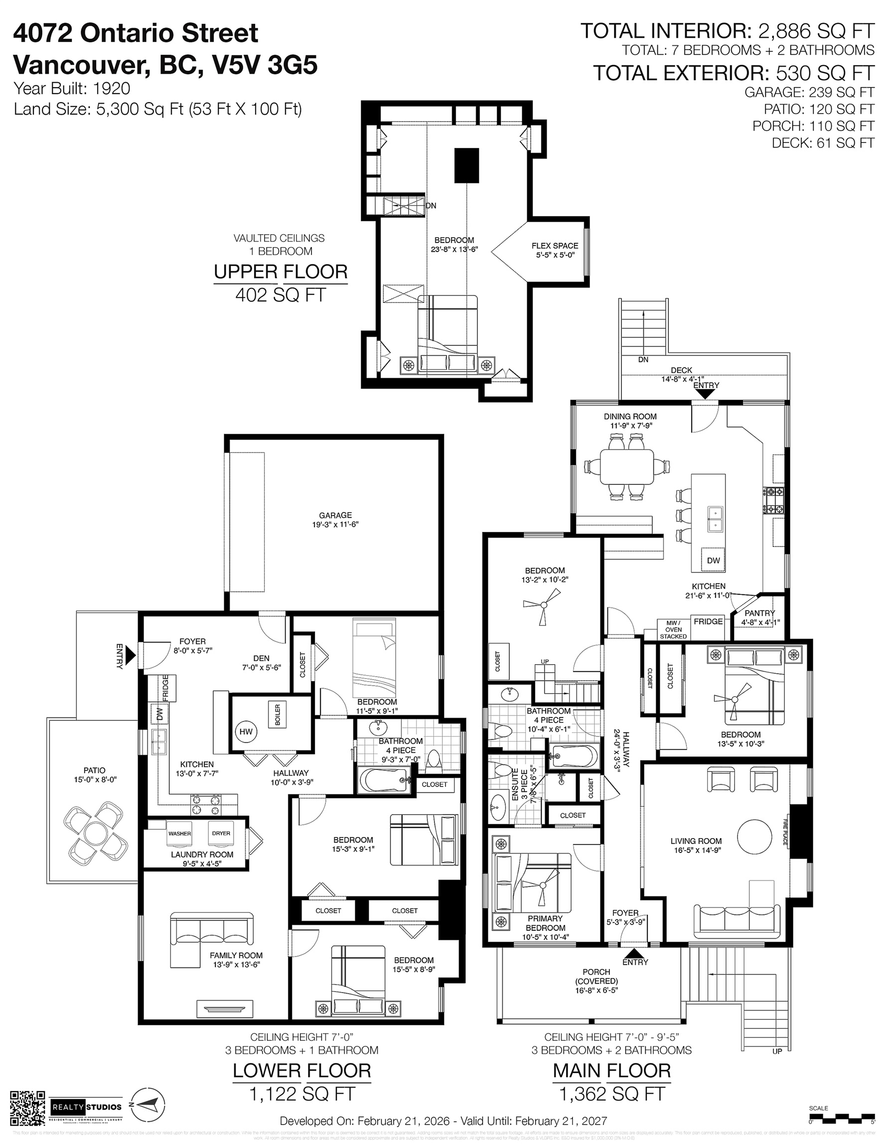 Prime Cambie area home on a rare 53x100 ft wide lot offering excellent space and flexibility. The main floor features 3 bedrooms, 9.5-ft ceilings, fir floors, crown mouldings, and a gas fireplace. Renovated kitchen with large peninsula island, five-burner gas cooktop, wall oven, walk-in pantry, heated tile floors, and custom desk. Upper loft provides flexible space for a home office, play area, or lounge. Garden level offers a three-bedroom suite with its own laundry, ideal for extended family or income pot...