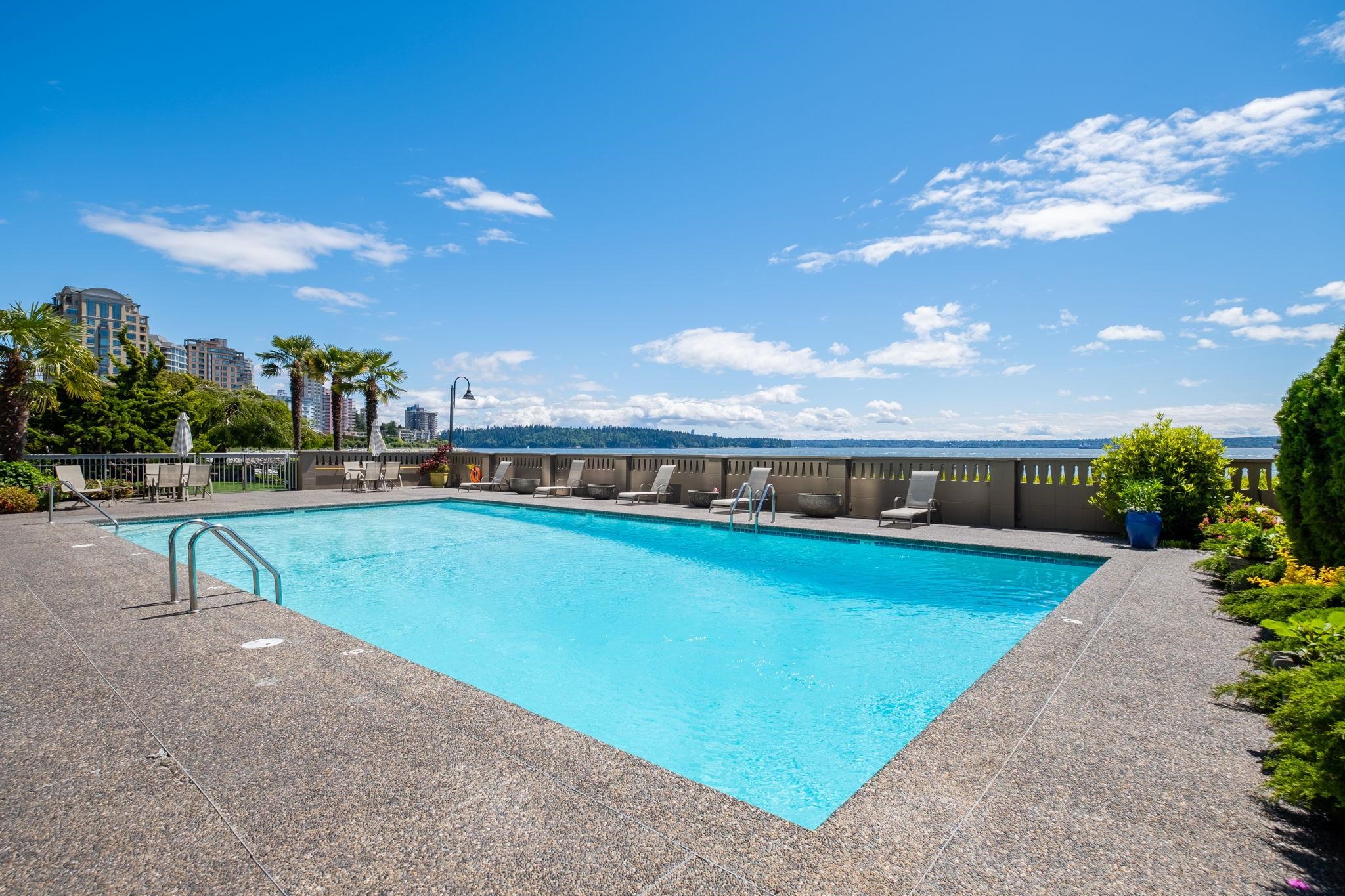 Welcome to the iconic Seastrand, one of West Vancouver’s true waterfront buildings offering oceanfront living on the WV seawall. This gorgeous one bedroom suite with beautifully appointed bathroom features ocean and mountain views and has been fully renovated throughout with style and modern finishes. The enclosed balcony extends the living area, creating an elegant, light-filled space. Enjoy resort-style amenities including a stunning oceanside pool, private manicured lawn, dedicated BBQ area, guest suite,...