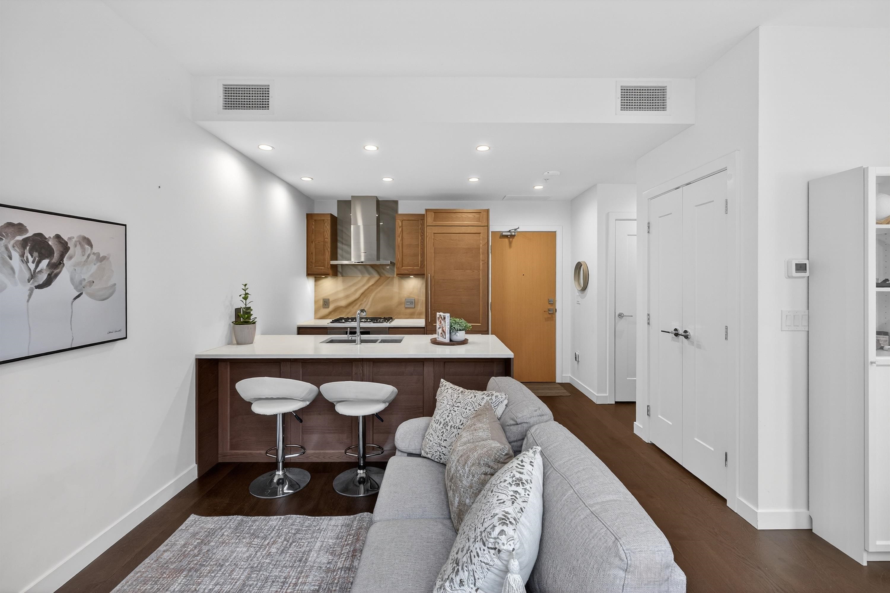Best location in the complex. All most-new concrete one-bedroom at Ivy on the Park by Wall Group, ideally located at the forest’s edge at UBC. This top-floor 485 sq.ft. home features 9’ ceilings, an efficient open layout, and unobstructed park views. Finished with hardwood floors, Bosch appliances, gas range, central heating/AC, and heated bathroom floors. Includes EV parking, storage locker, concierge, gym, study and music rooms, social lounge, and rooftop patio. Quiet, private, and surrounded by nature. D...