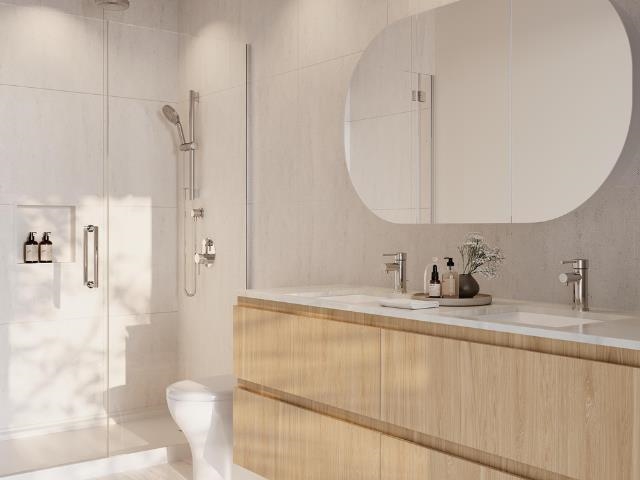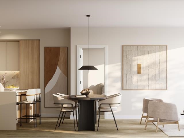 This 1 bed, 1 bath+ den home in Fraser Mills offers 604 sf of home space. Ceilings span up to 9' in dining and living areas , windows with roller shades add energy efficiency, laminate flooring offers durability, and A/C in the living area provides year-round comfort. Enjoy high-performance Porter & Charles appliances in the kitchen alongside stone backsplash & countertops, a pantry, European-inspired cabinetry and convenient tiered turntable corner shelving. The bathroom includes a medicine cabinet, rain s...
