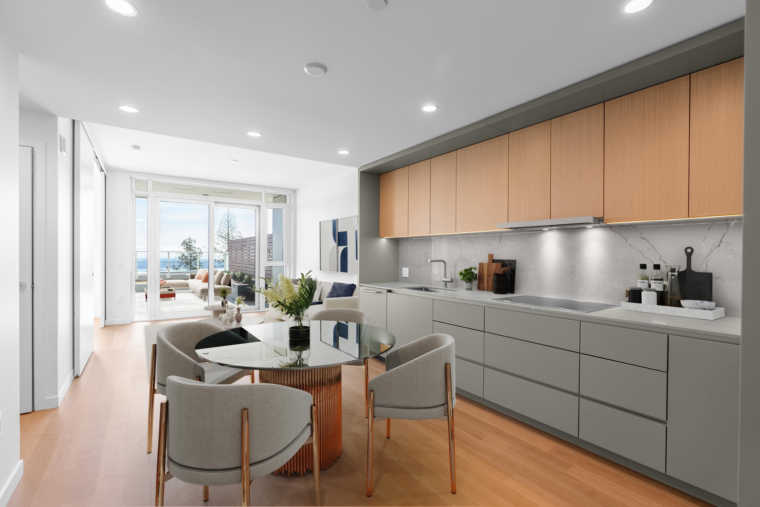 The Hawksley is a prime example of modern architecture, space, and design, showcased in this bright SW 1 bed + den home offering 667 sq.ft. of efficient living. Floor-to-ceiling windows allow the interior and exterior spaces to meld as one, opening onto an exceptional 590 sq.ft. private patio with unobstructed ocean views from every window and a built-in planter, perfect for year-round enjoyment. Includes 1 parking and 1 storage locker. Located in the desirable Uplands neighbourhood with premium amenities i...