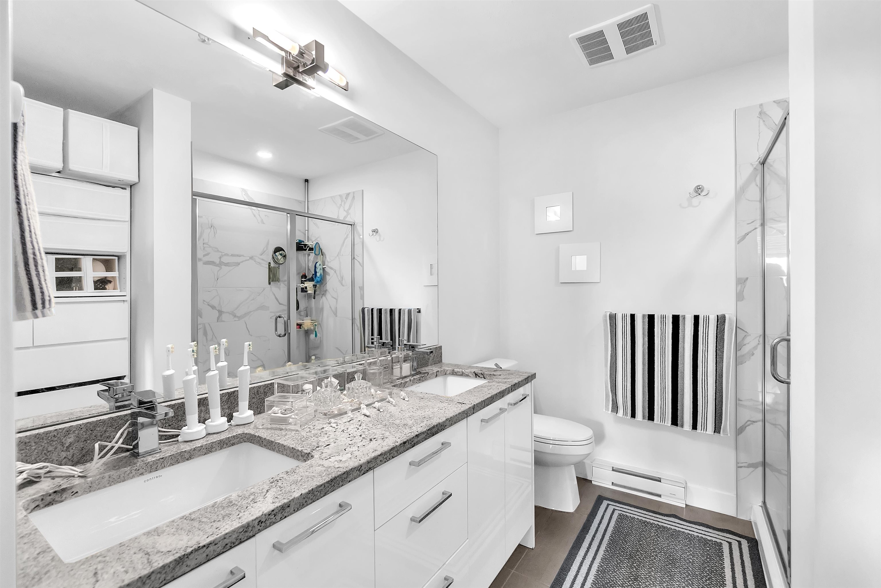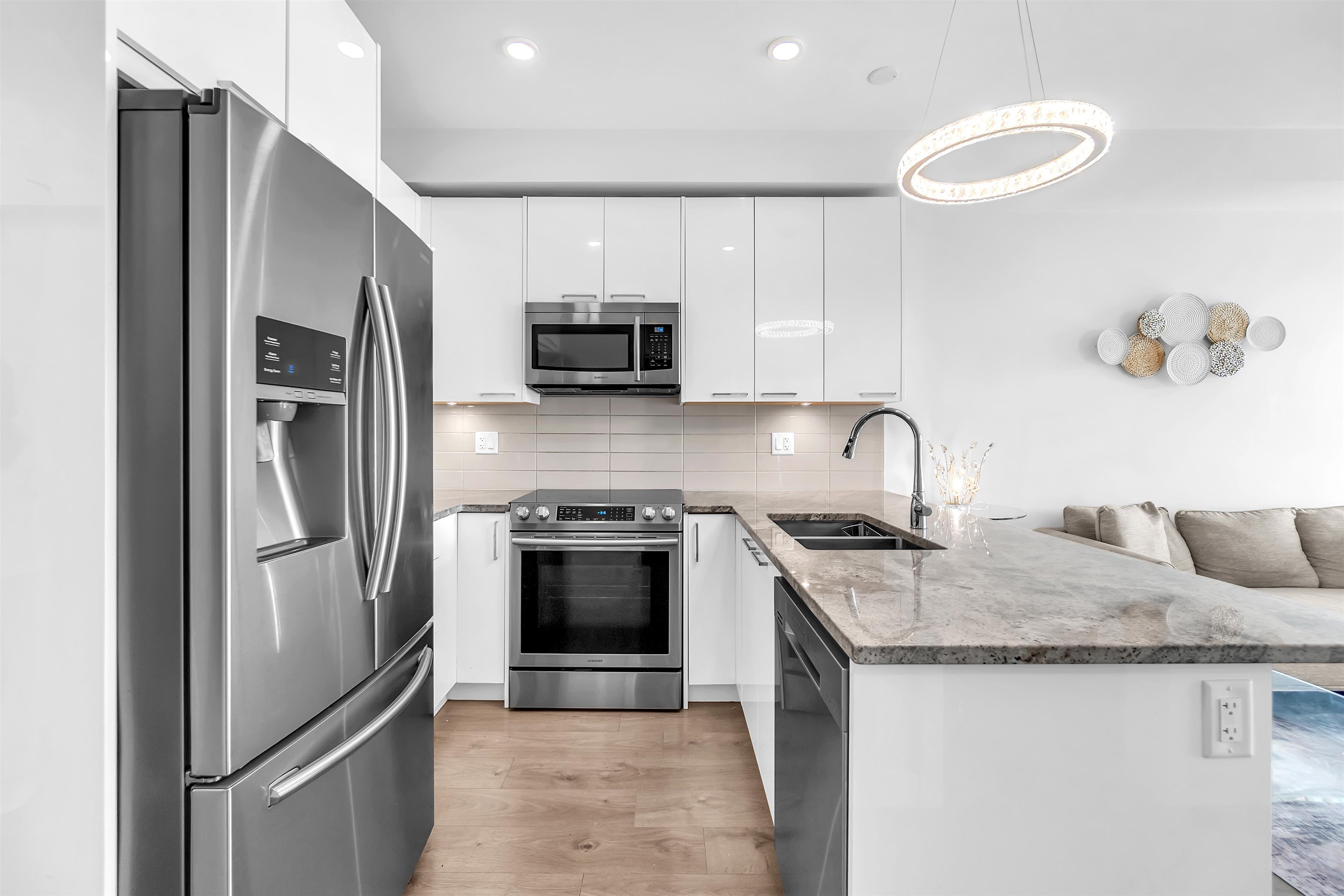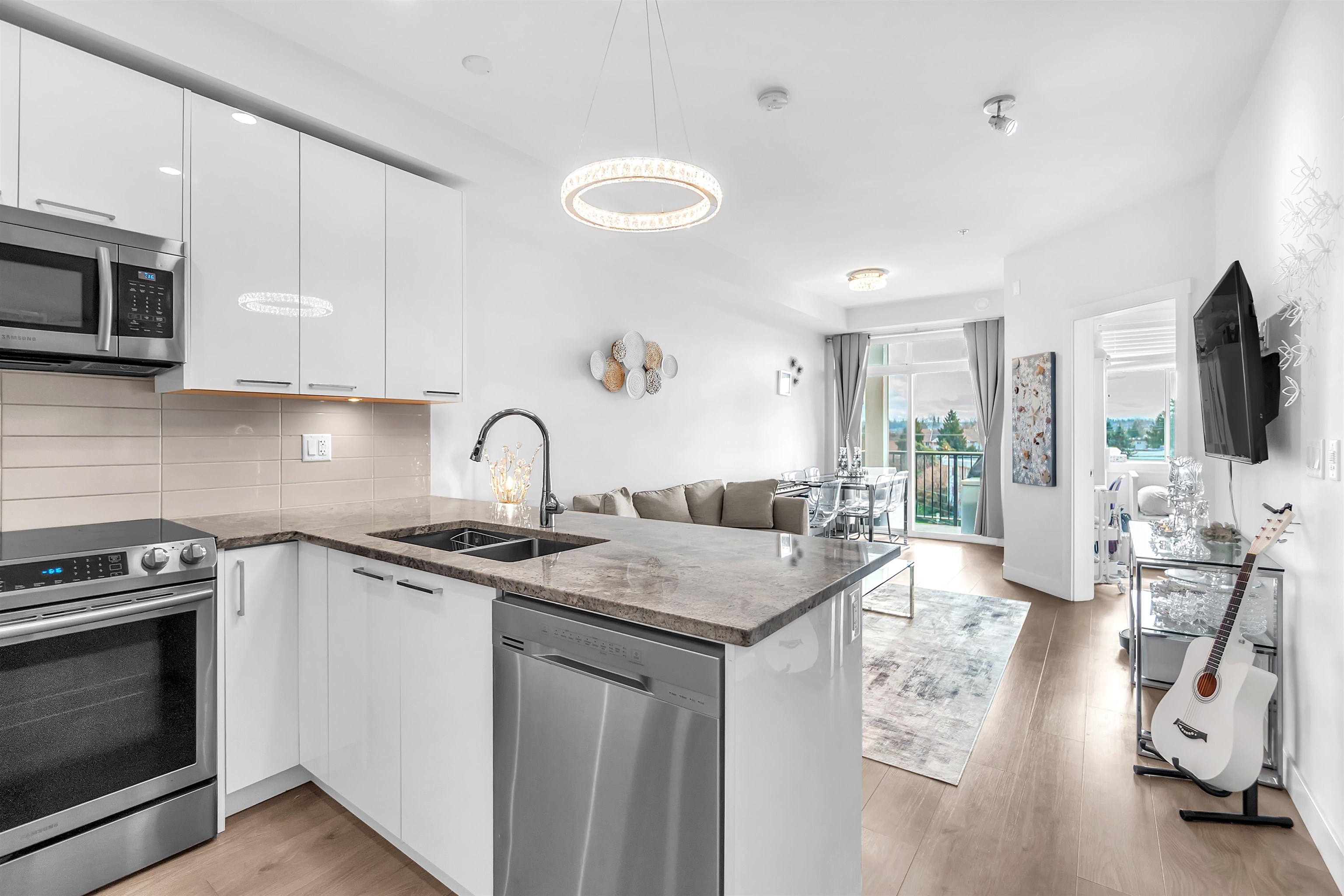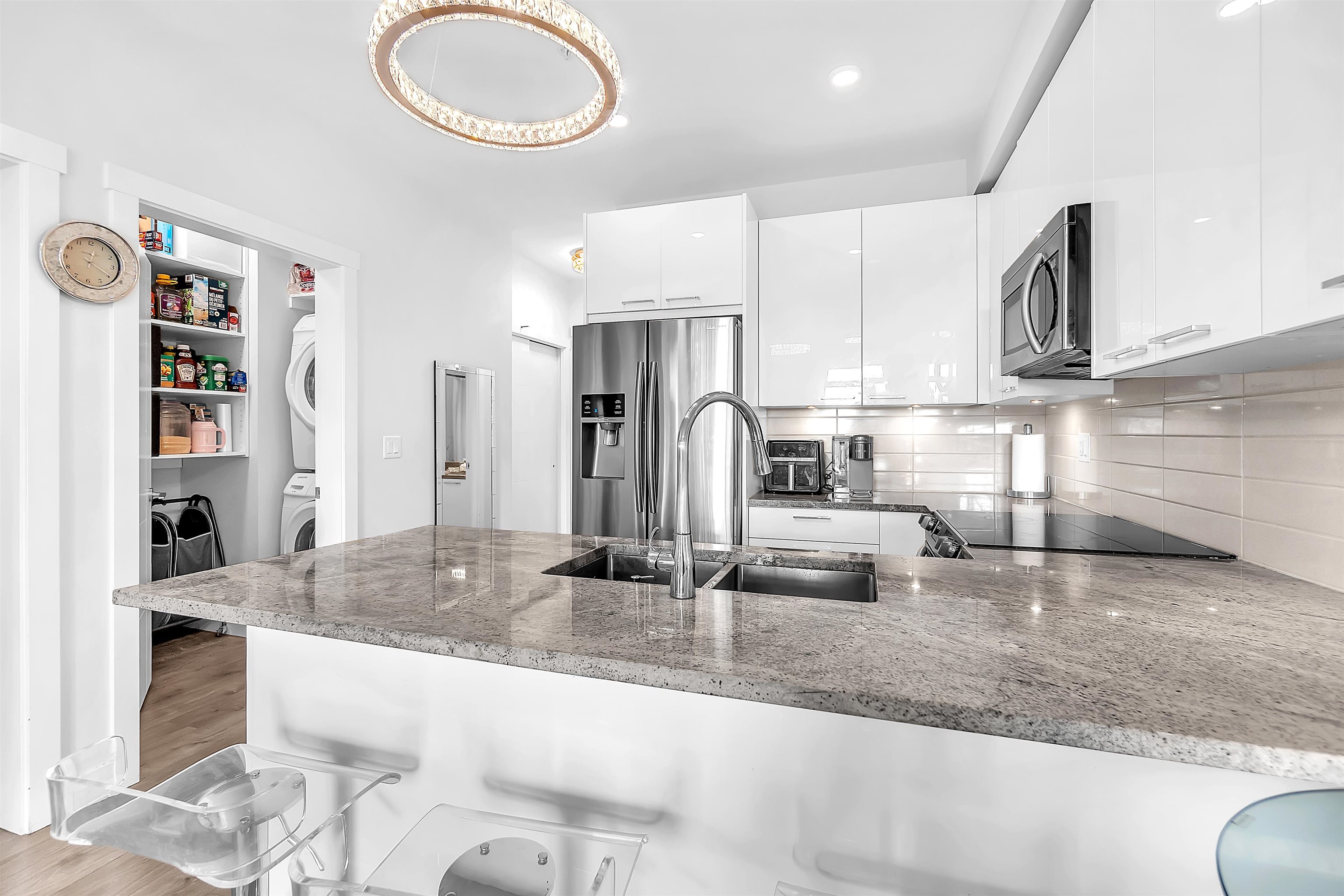 This stunning 2 -bedroom, 2 -bathroom condo at The Georgia features an open-concept layout, ideal for entertaining. The kitchen is equipped with stainless steel appliances and granite countertops. Enjoy 9-foot ceilings, laminate flooring, and air conditioning for added comfort. Includes 1 parking stall and a large storage locker conveniently located right behind the parking. Situated in a vibrant community close to shops and restaurants, with Langley Memorial Hospital, Kwantlen Polytechnic University, and C...