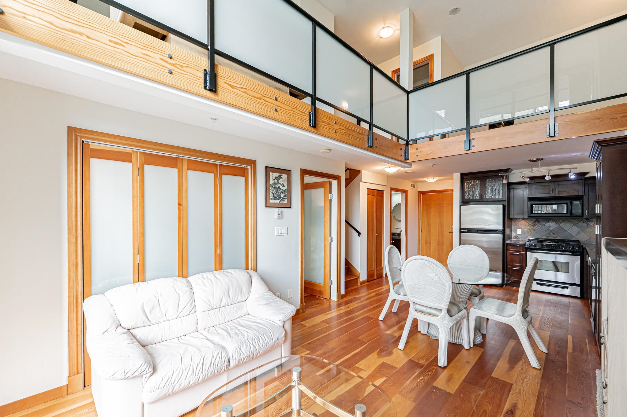 Rarely available 2-bedroom + den loft at the New West Quay! This stunning 989 sq.ft. home faces west into the quiet courtyard with partial river views. Features include beautiful hardwood floors, double-nosed granite countertops, Kohler fixtures, and 17’ floor-to-ceiling windows that fill the space with natural light. Includes 1 parking stall. Don’t miss this exceptional home at the Murano Lofts! The den could be used as third bedroom, functional layout! MUST SEE! Open house will be on SAT/SUN April 25/26 f...