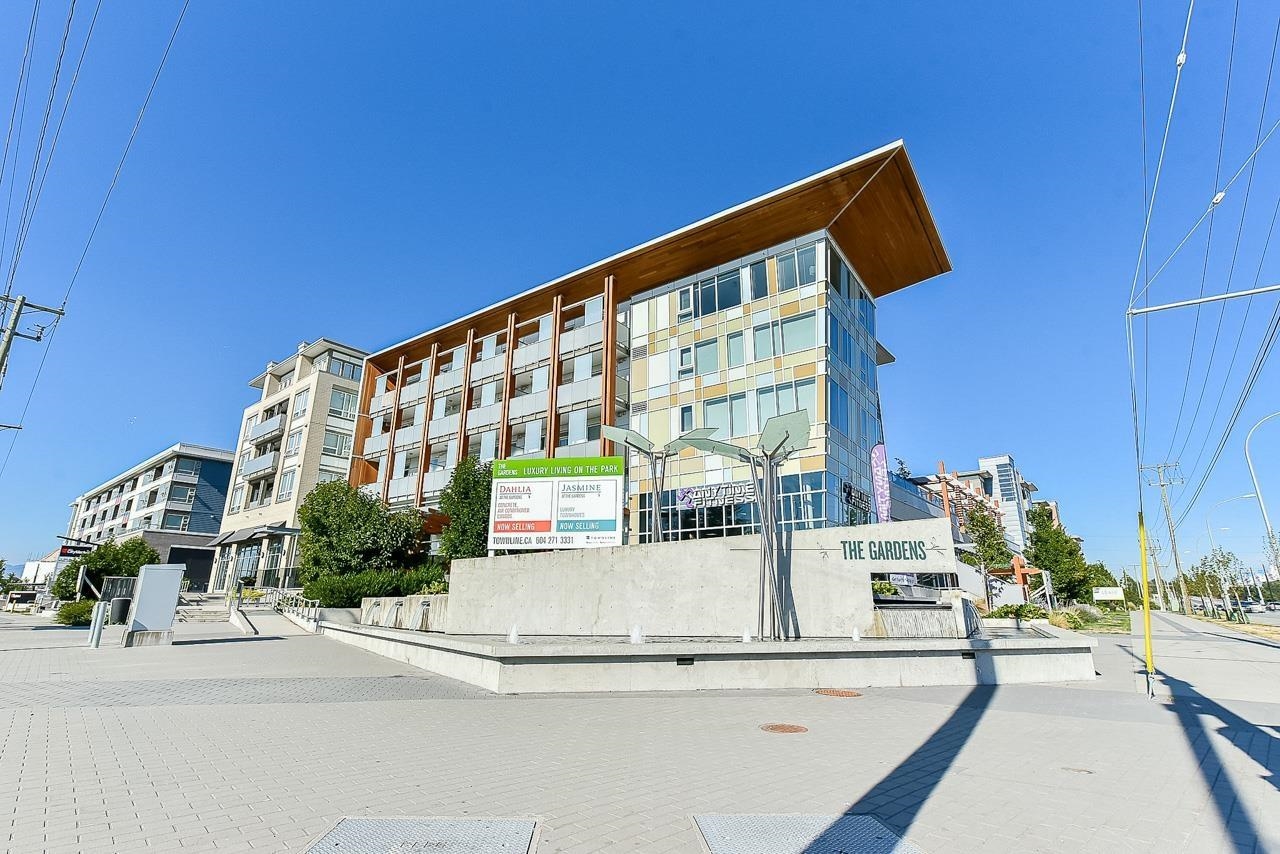Rarely available 1 bed, 1 bath at The Gardens. Features dark laminate floors, stainless steel appliances with gas stove, and double sink. Enjoy 6,000 SF of indoor amenities including badminton court, ping pong, gym, meeting and change rooms. Super convenient location with shops below such as medical, dining, and services. Minutes to Ironwood, Hwy 99, entertainment, and recreation. Includes secure parking and storage.