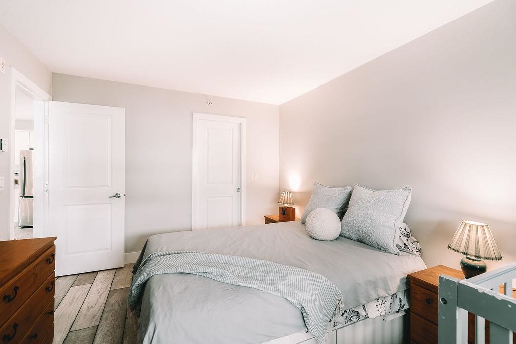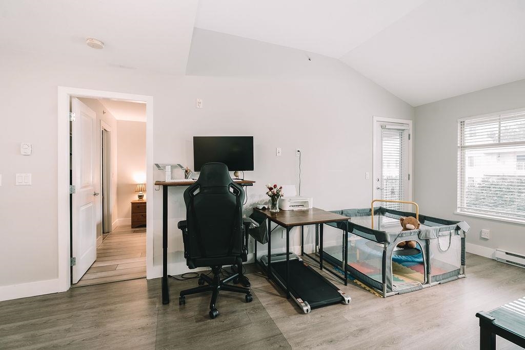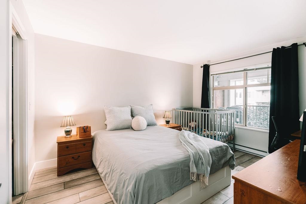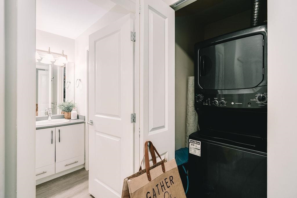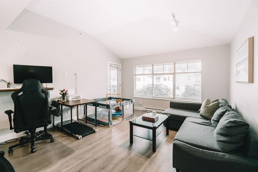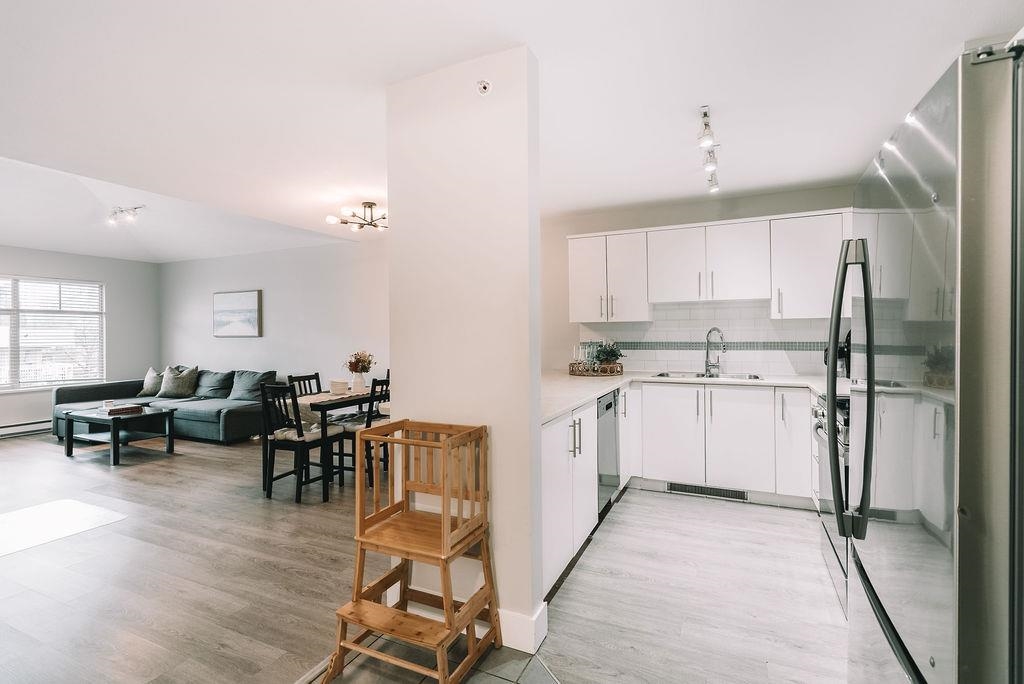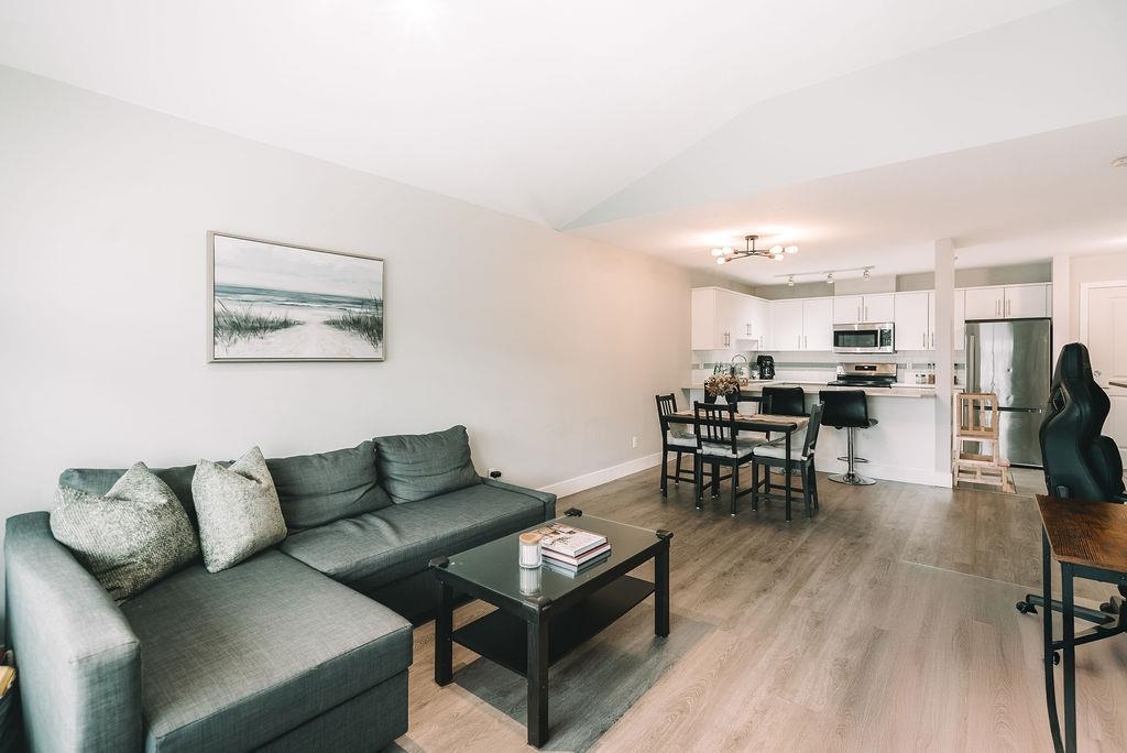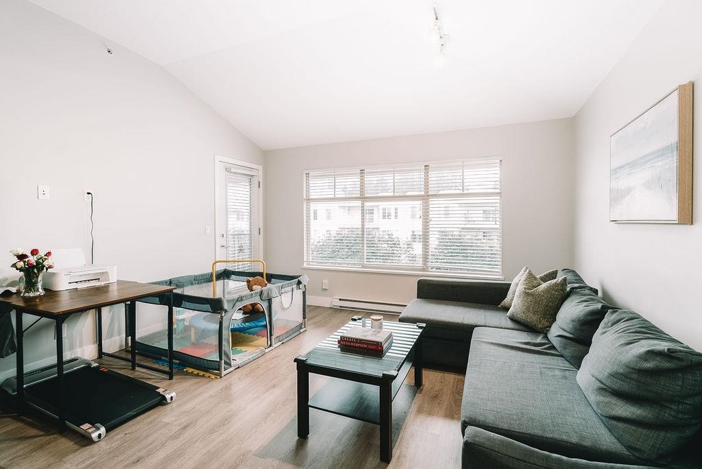 TOP FLOOR UNIT AT THE URBANO! Welcome to your large 1 bedroom home with over 730 sq ft of living space. Featuring open concept kitchen with lots of counterspace including long breakfast bar area, S/S appliances & room to entertain. Spacious dining room plus living room has vaulted ceilings with oversize window for natural light. Generous primary bedroom with W.I.C & cheater ensuite. Fully covered balcony for year round enjoyment. Close to the elevator for easy access. Well run strata with low maintenance fe...