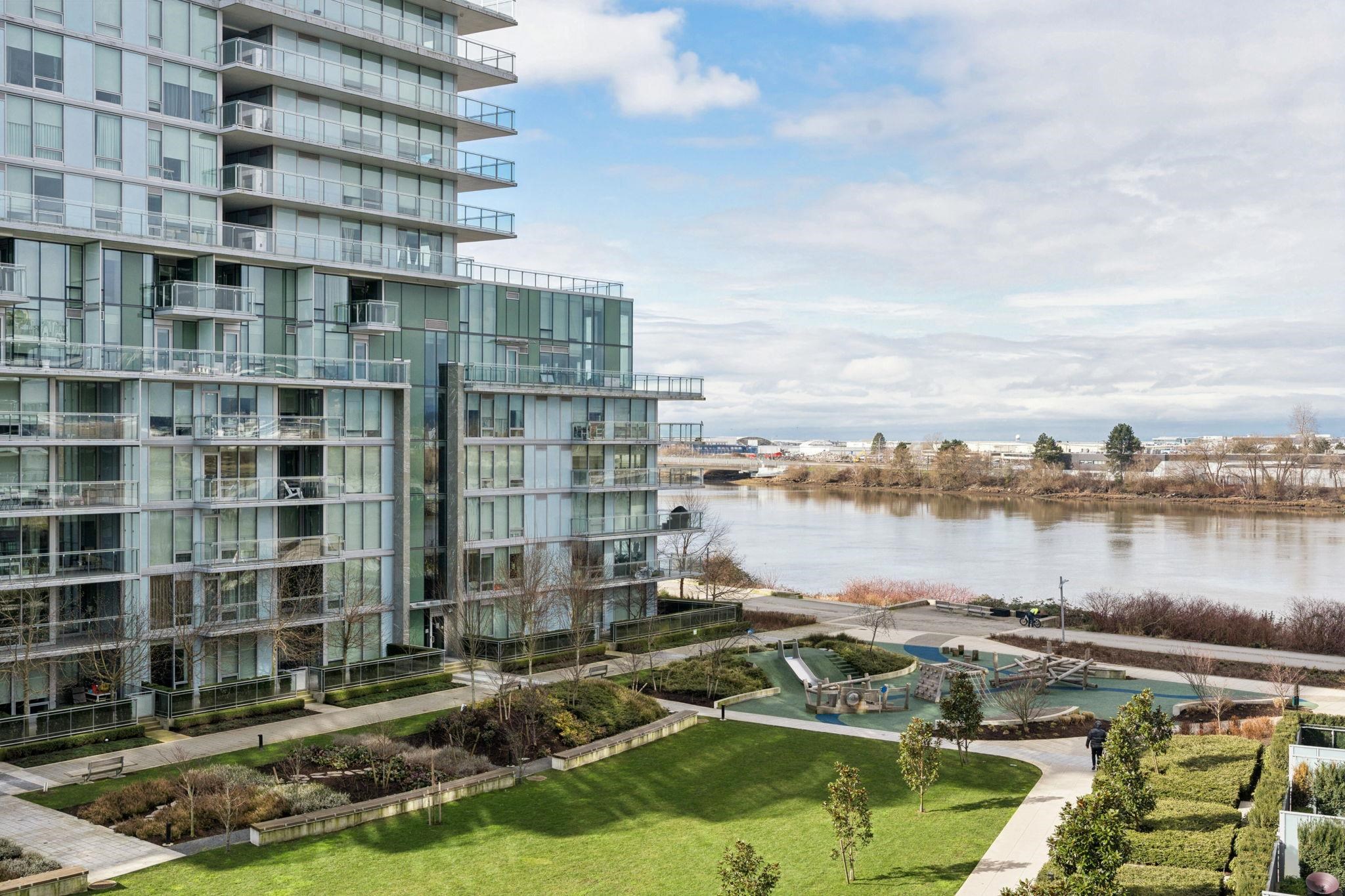 Welcome to Hollybridge at River Green by ASPAC, a luxury concrete waterfront residence in Richmond’s prestigious Oval Village. This functional 2 Bed + Den home offers efficient layout, air conditioning, and floor-to-ceiling windows with peaceful courtyard outlook for added privacy and natural sunlight throughout. Features include premium European cabinetry, Miele appliances, and quality finishes throughout. Enjoy resort-style amenities: 24-hr concierge, indoor pool, fitness centre, sauna/steam, lounge space...