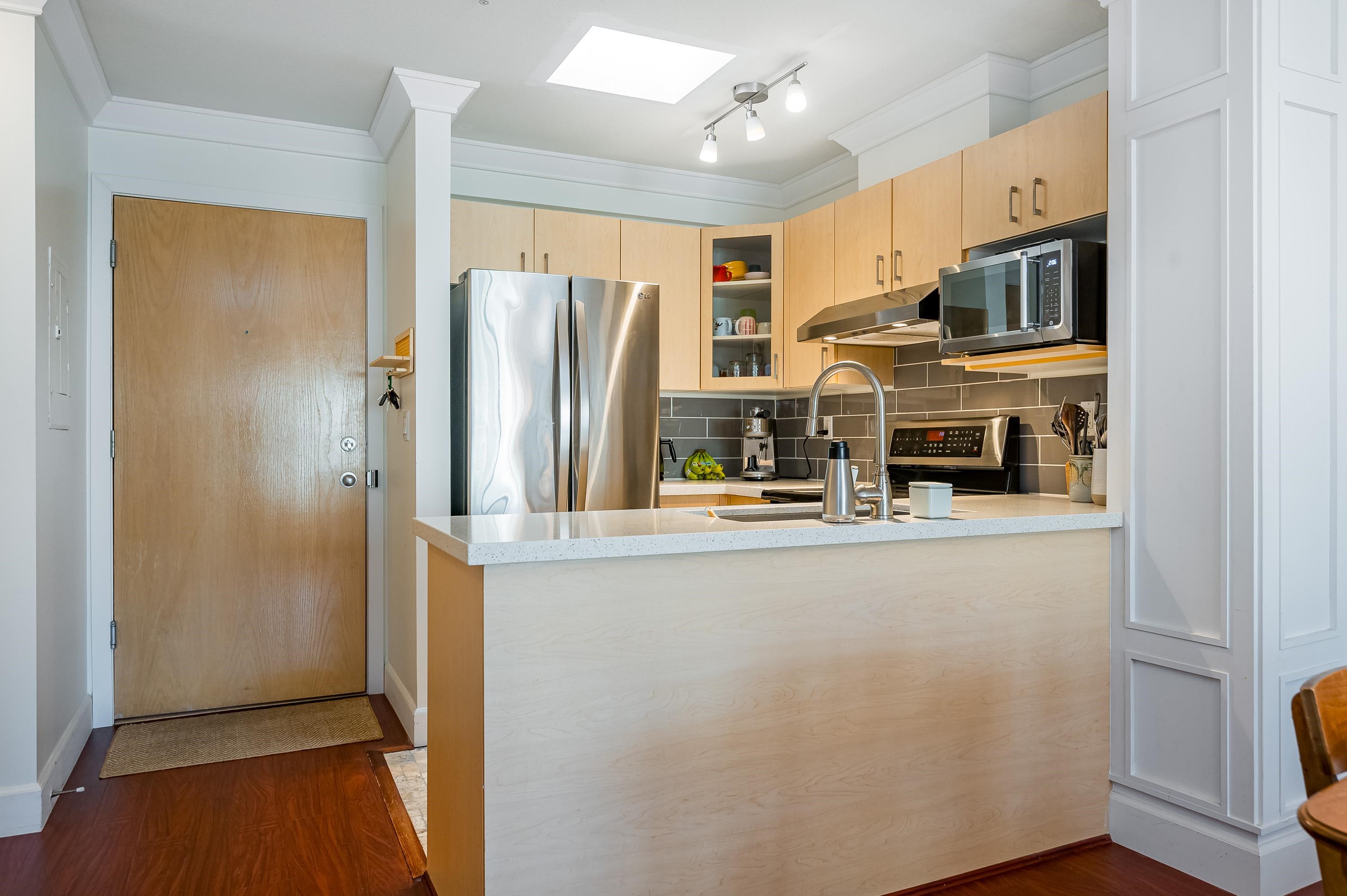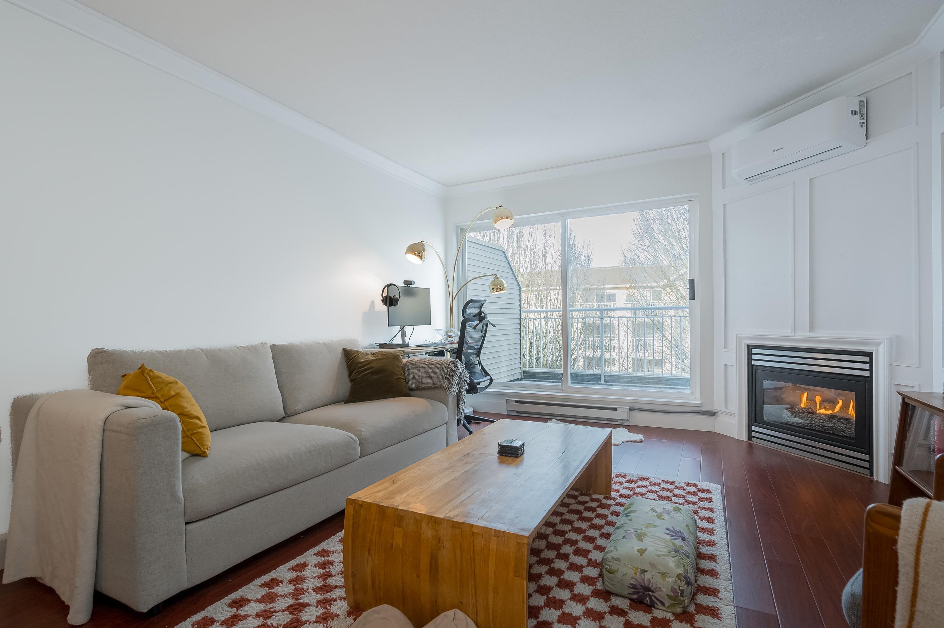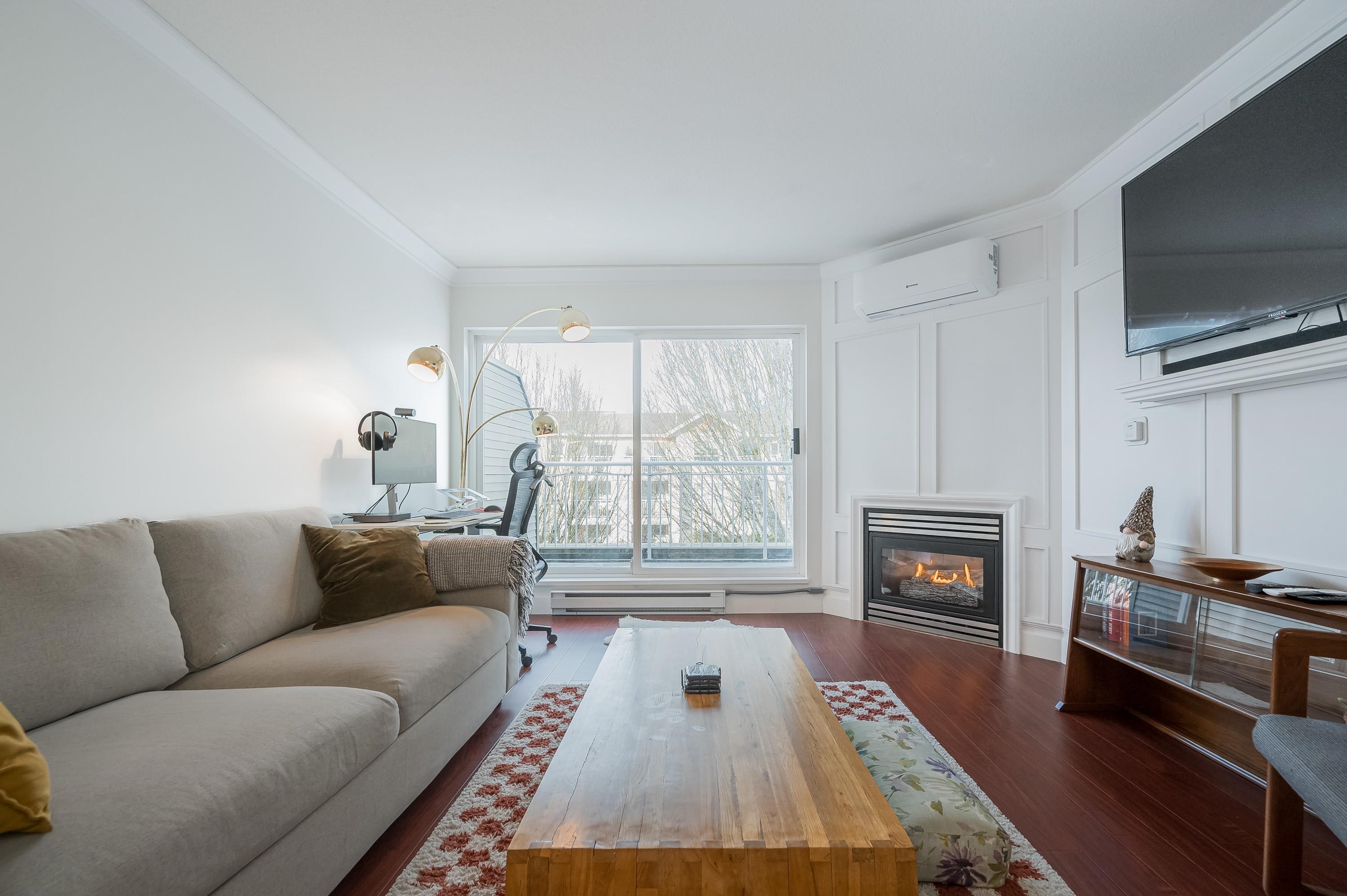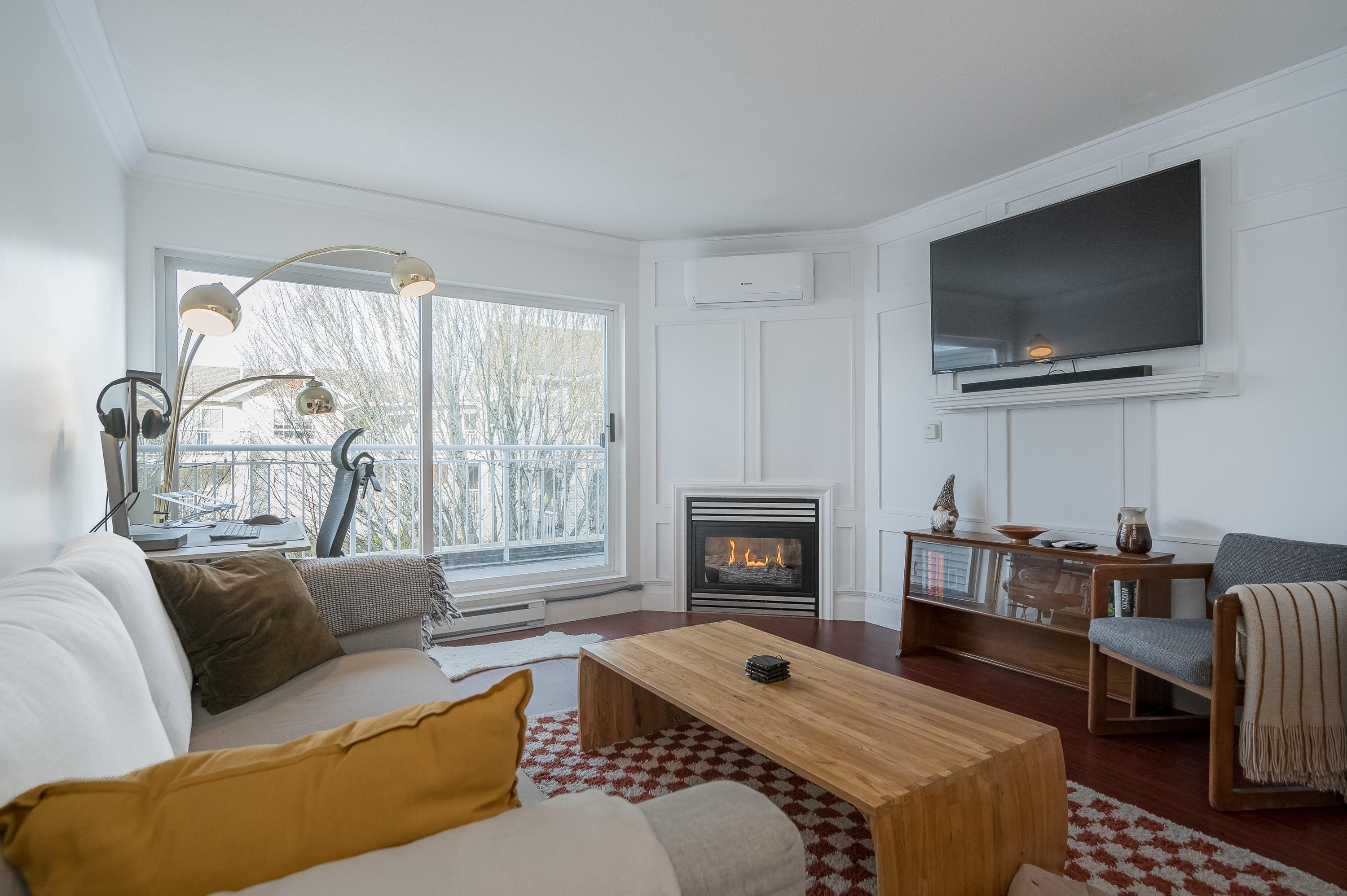 Top Floor 1 Bedroom Penthouse in a Perfect location! This 1 bedroom in the popular 'Rosewood' building is updated and has a new heat pump and A/C! Great floor plan, this unit has updated appliances and quartz counters in the kitchen and bathroom, big Deck faces north and gives nice privacy in bloom, living area is a good shape and has gas fireplace, in suite laundry with room for storage. 1 parking and 1 locker down as well as bike room. Just across the street from superstore, Willowbrook mall and all level...