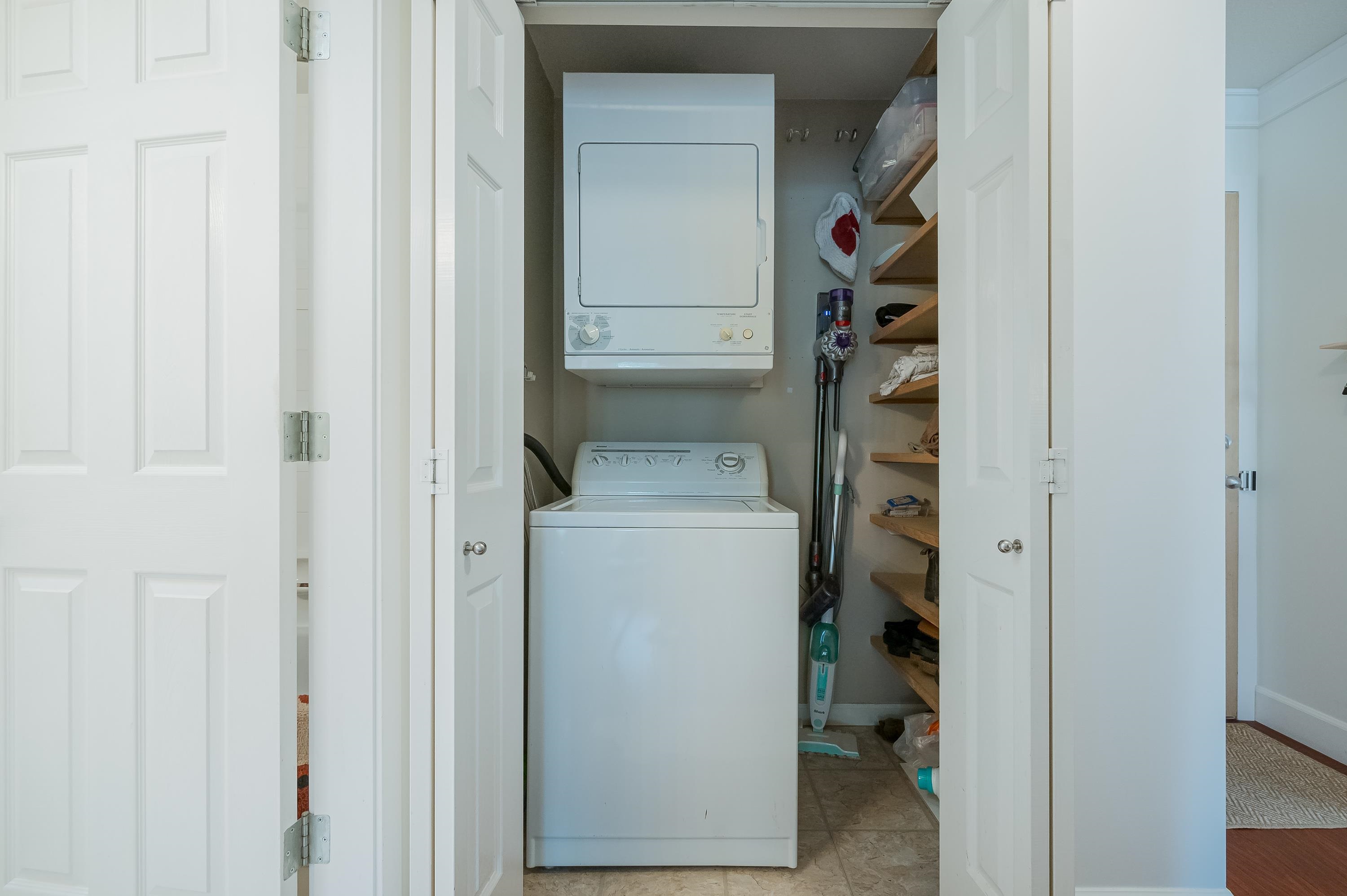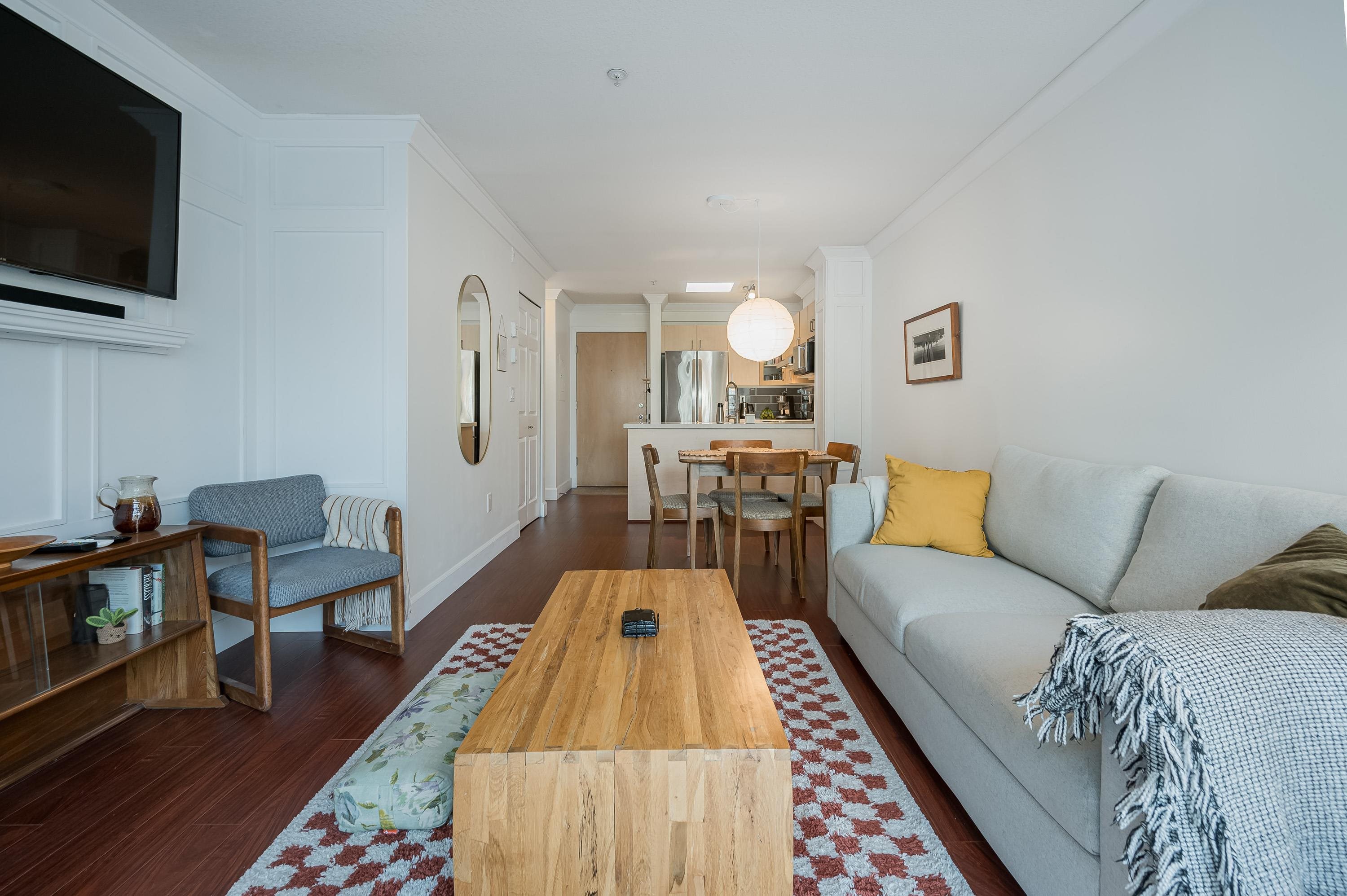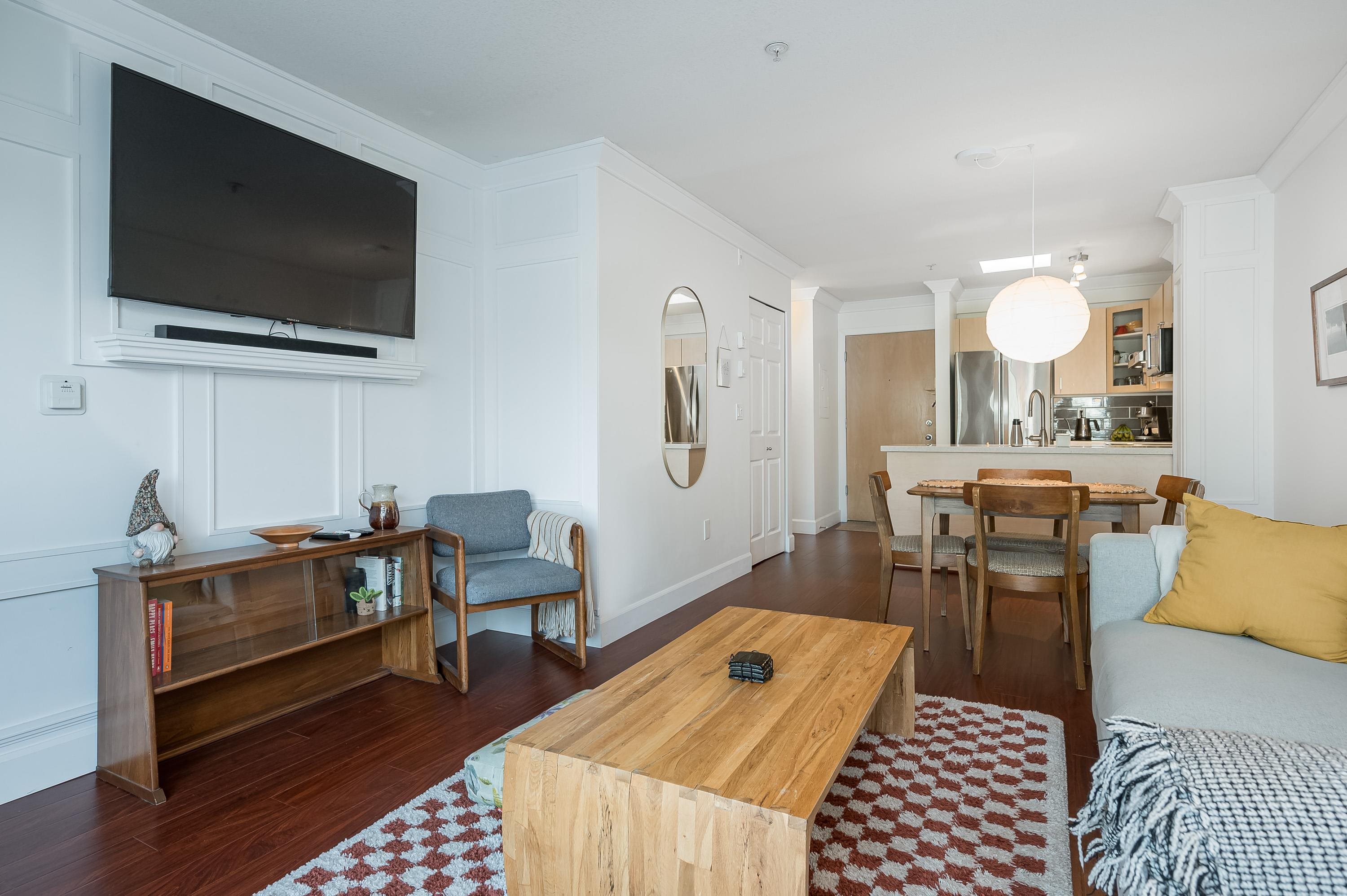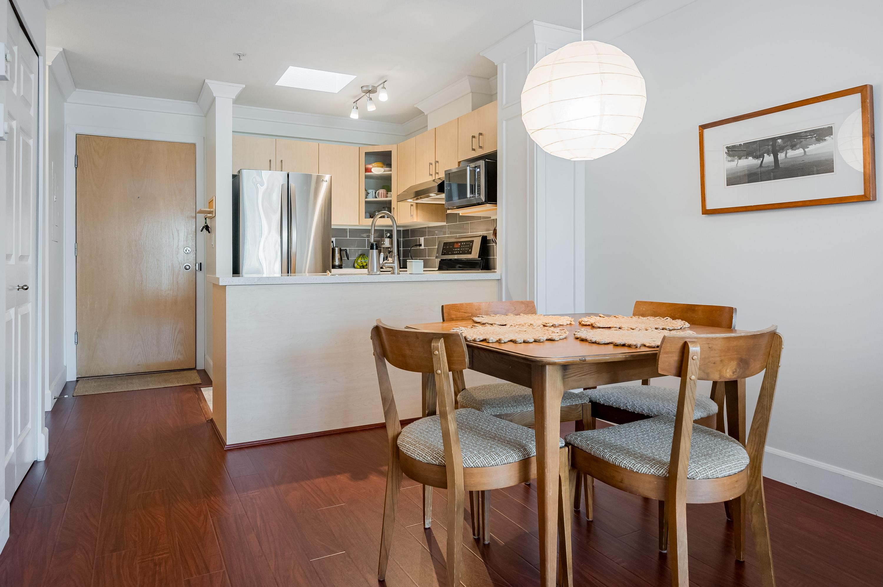 Top Floor 1 Bedroom Penthouse in a Perfect location! This 1 bedroom in the popular 'Rosewood' building is updated and has a new heat pump and A/C! Great floor plan, this unit has updated appliances and quartz counters in the kitchen and bathroom, big Deck faces north and gives nice privacy in bloom, living area is a good shape and has gas fireplace, in suite laundry with room for storage. 1 parking and 1 locker down as well as bike room. Just across the street from superstore, Willowbrook mall and all level...