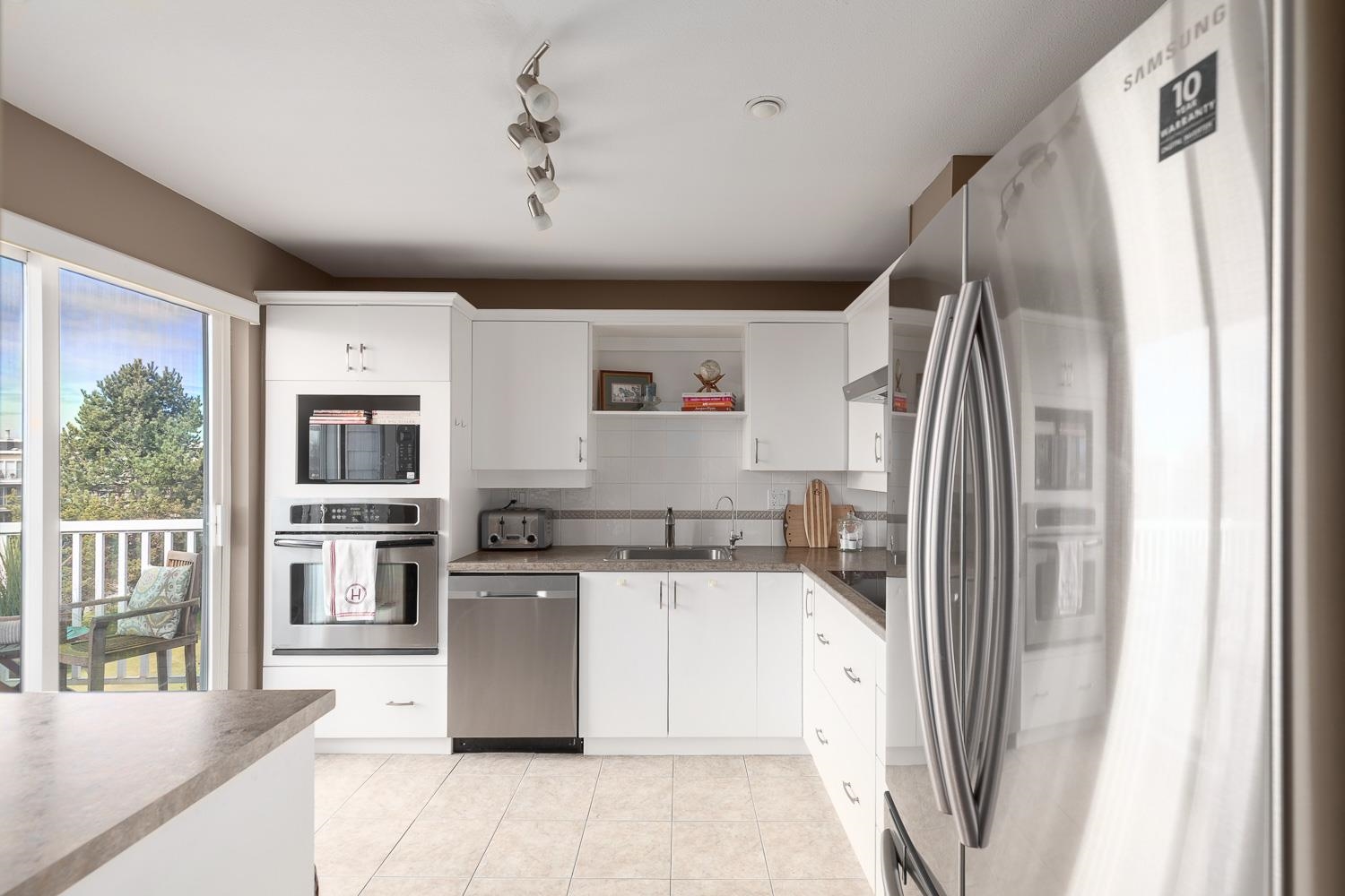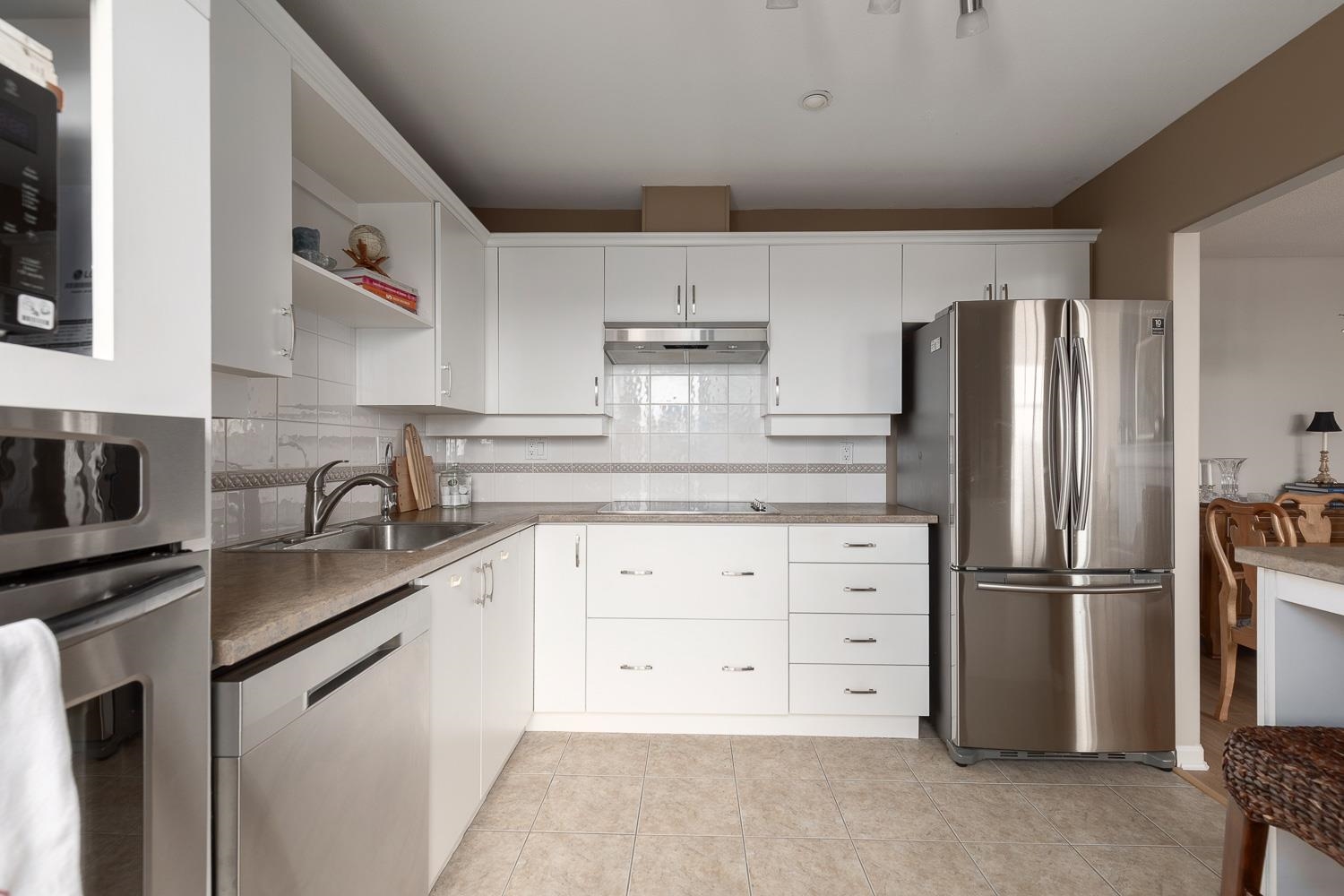 Rarely available – move-in ready top-floor corner penthouse in Steveston South's sought-after Nautica North. Boasting natural light, oversized windows, and high vaulted ceilings with views of the lagoon, marina, and courtyard. Open-concept layout with room for house-sized furniture, brand-new professional closets in both bedrooms and pantry. Oversized private patio, 2 parking stalls, and storage locker included. Well-managed strata with beautifully landscaped grounds. Steps to the West Dyke Trail, Steveston...