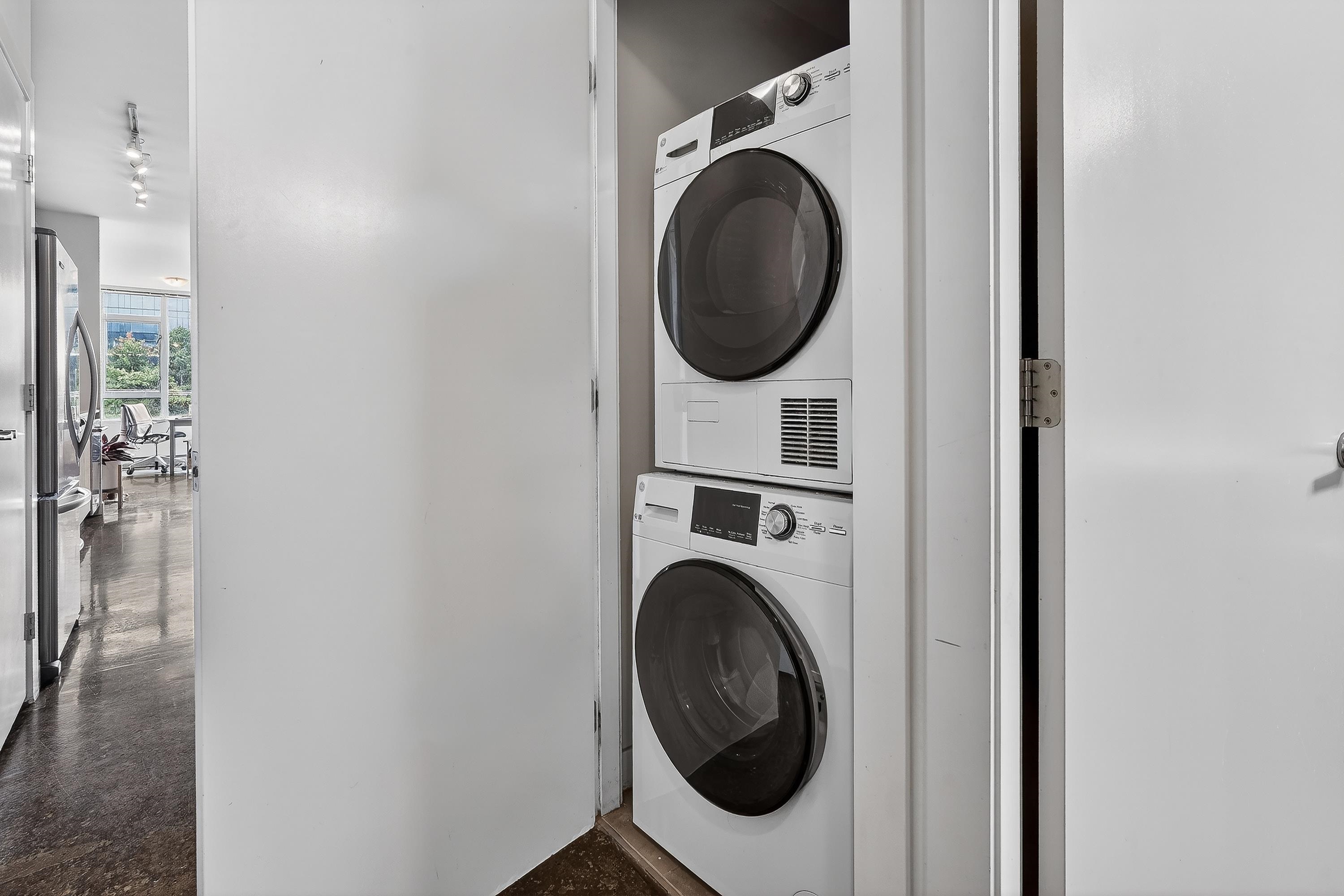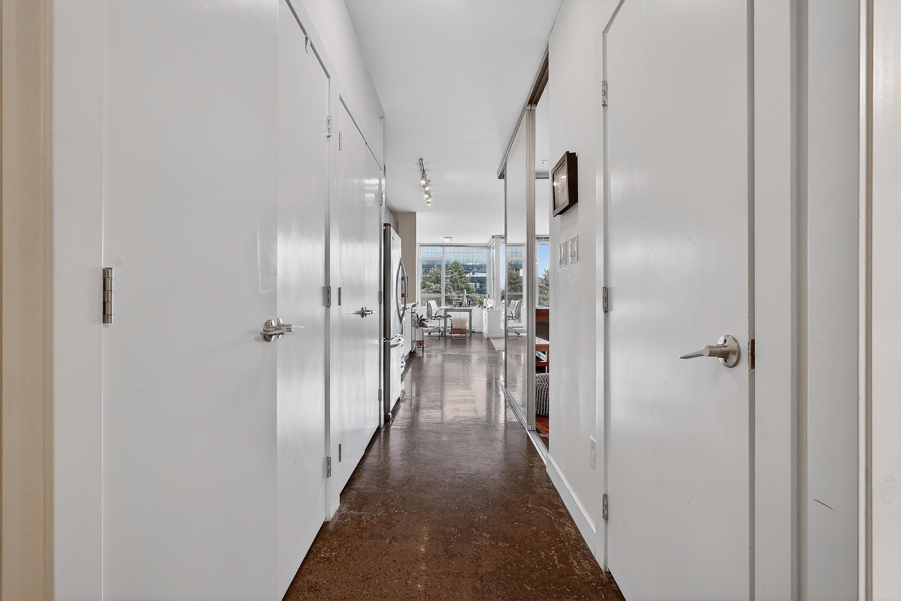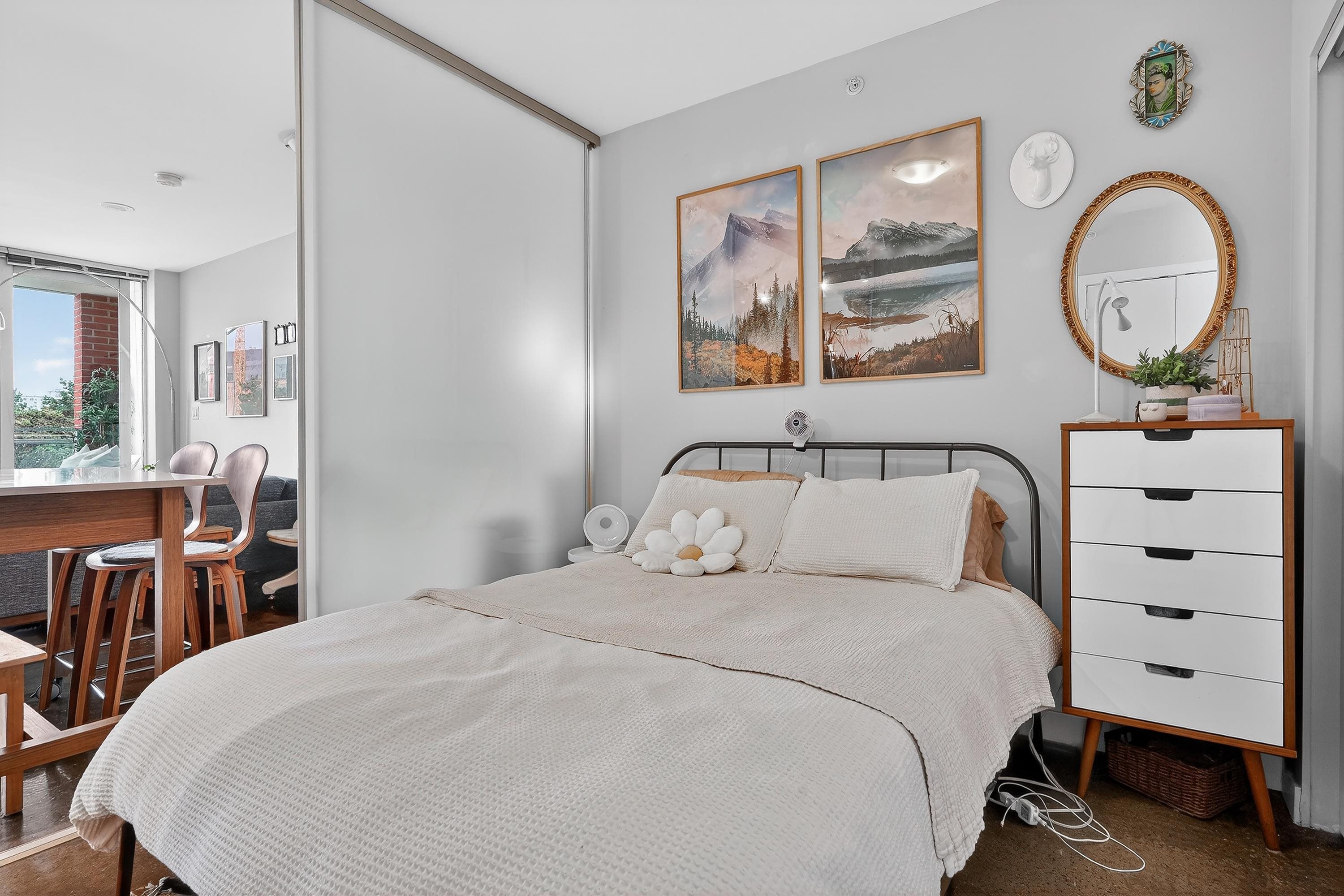 Loft-inspired living in V6A at the heart of Strathcona/False Creek Flats. Sun-soaked S-facing 1 bed with soaring ceilings, oversized windows & an open layout that lives much larger than its 690 sqft. Chef-friendly kitchen w/ quartz counters, s/s appls & smart storage flows into a versatile lounge/dining/WFH zone. Tucked-away bdrm, in-suite laundry, secure parking & locker. Concrete building offers gym, full-time concierge & efficient floorplans. Stroll to cafés, breweries, art studios, the Seawall, SkyTrain...