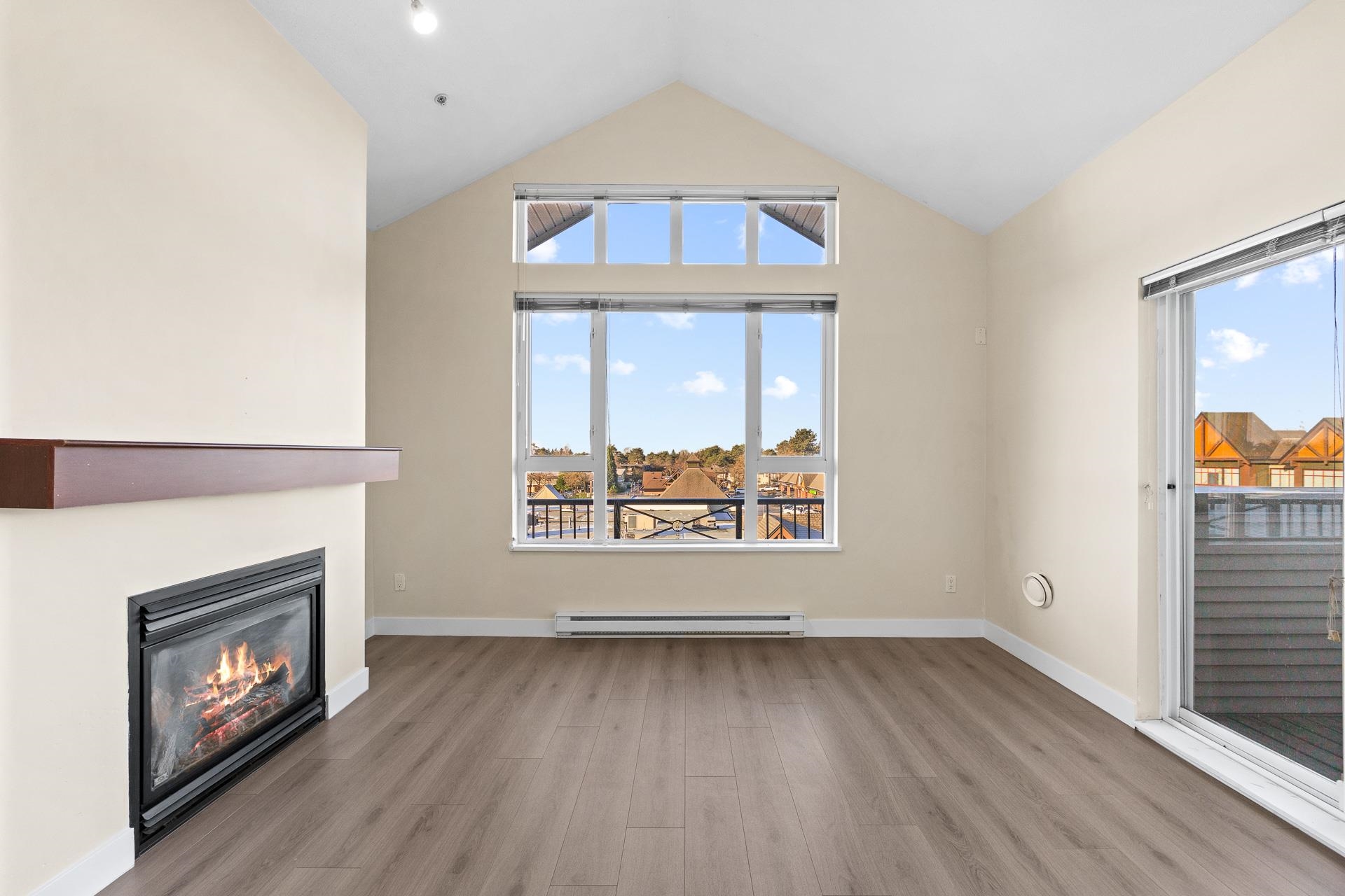 Rare opportunity to own a top-floor 2-bedroom + den, 2-bathroom corner home offering 928 sq ft of beautifully designed living space in the heart of Champlain Heights. This northeast-facing residence features a bright open-concept layout, impressive 12’5” ceilings in the living room, a gas fireplace, and expansive living and dining areas that open to private balconies with stunning mountain views.The primary suite includes two closets and an ensuite complete with a soaker tub. Comes with 1 parking stall. En...