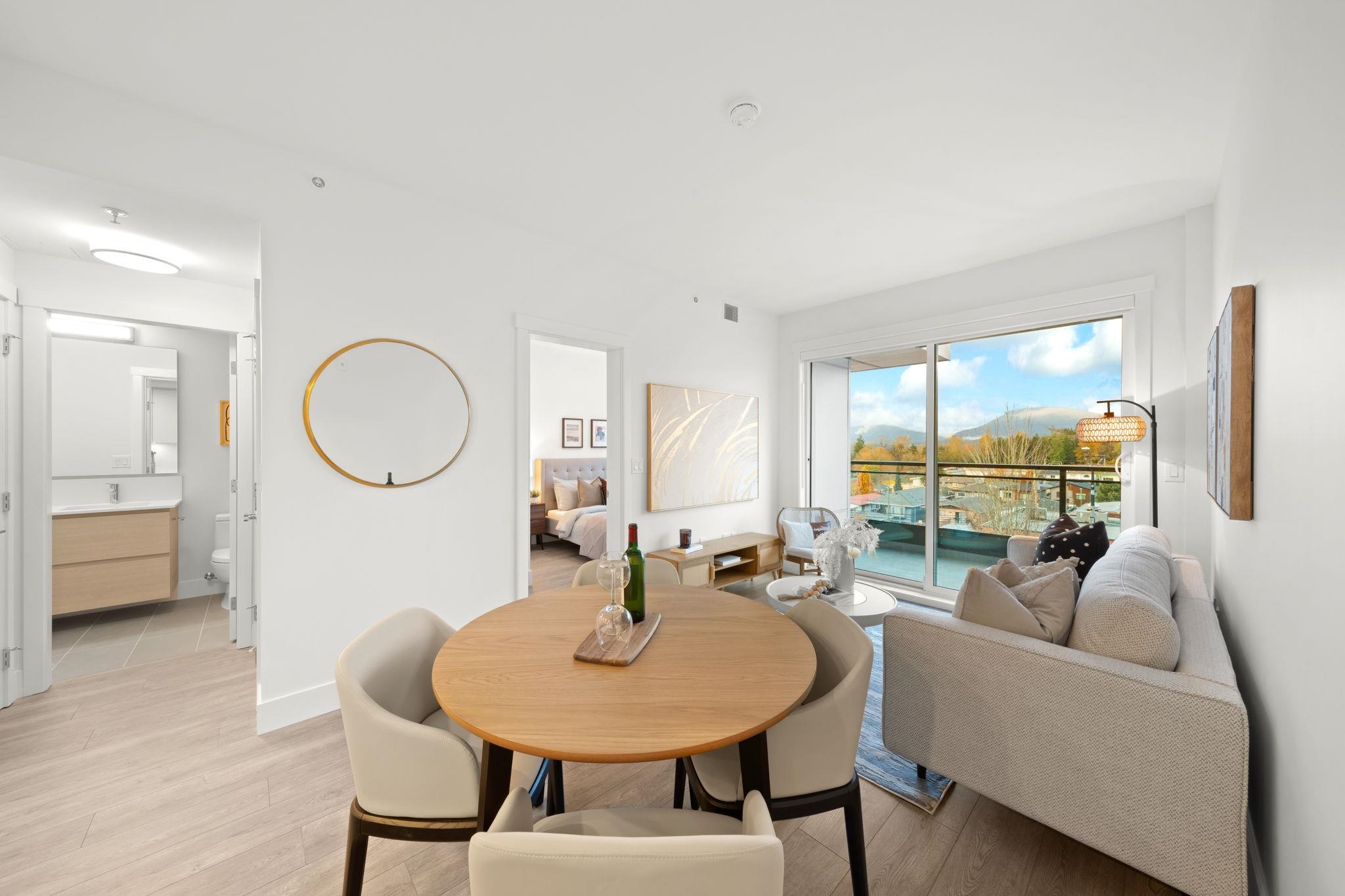 Elevate your lifestyle at VALEO, a concrete & steel masterpiece in North Burnaby’s prestigious Capitol Hill neighbourhood. This BEAUTIFUL CORNER UNIT offers 2 bed + 2 bath + den, soaring ceilings, triple glazed windows & PANORAMIC NORTH SHORE MOUNTAIN VIEWS. Stylish kitchen with quartz counters, 30" Bloomberg Fridge, 30" Bosch 5-burner gas range, Bosch dishwasher & range hood fan, large island & laminate flooring throughout. Separated bedrooms for privacy; primary with spa-like ensuite & walk-in closet. Ene...
