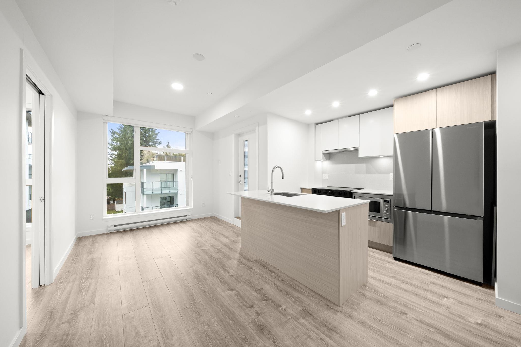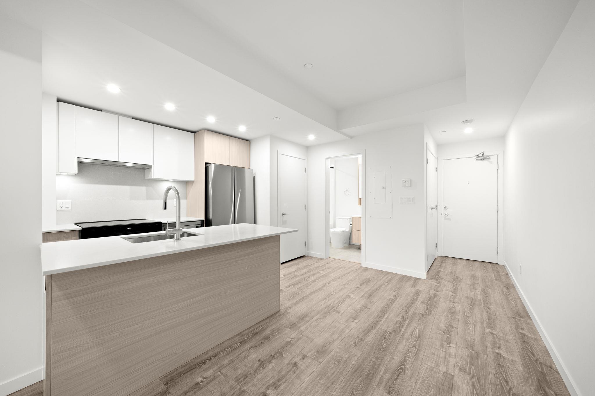 Welcome to VIKTOR — modern living in the heart of Surrey City Centre. This 1 bedroom, 1 bathroom home offers a bright, efficient layout with luxurious wide-plank laminate flooring throughout. The contemporary kitchen features elegant two-toned cabinetry, quartz countertops, a functional island, and ample storage. Still covered under the 2-5-10 New Home Warranty, this home provides peace of mind and low-maintenance living. Enjoy excellent amenities including a large landscaped courtyard, fully equipped gym, ...