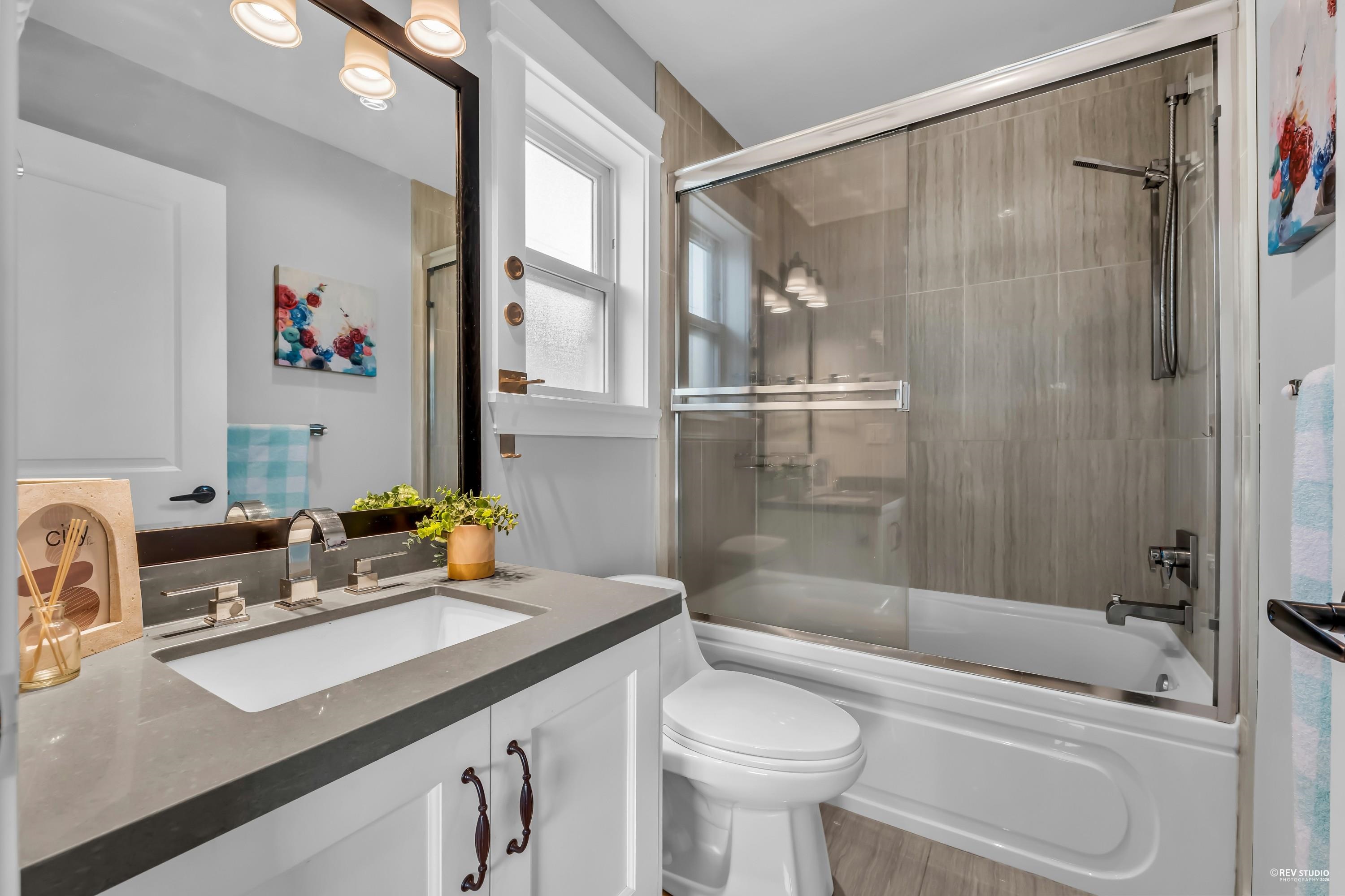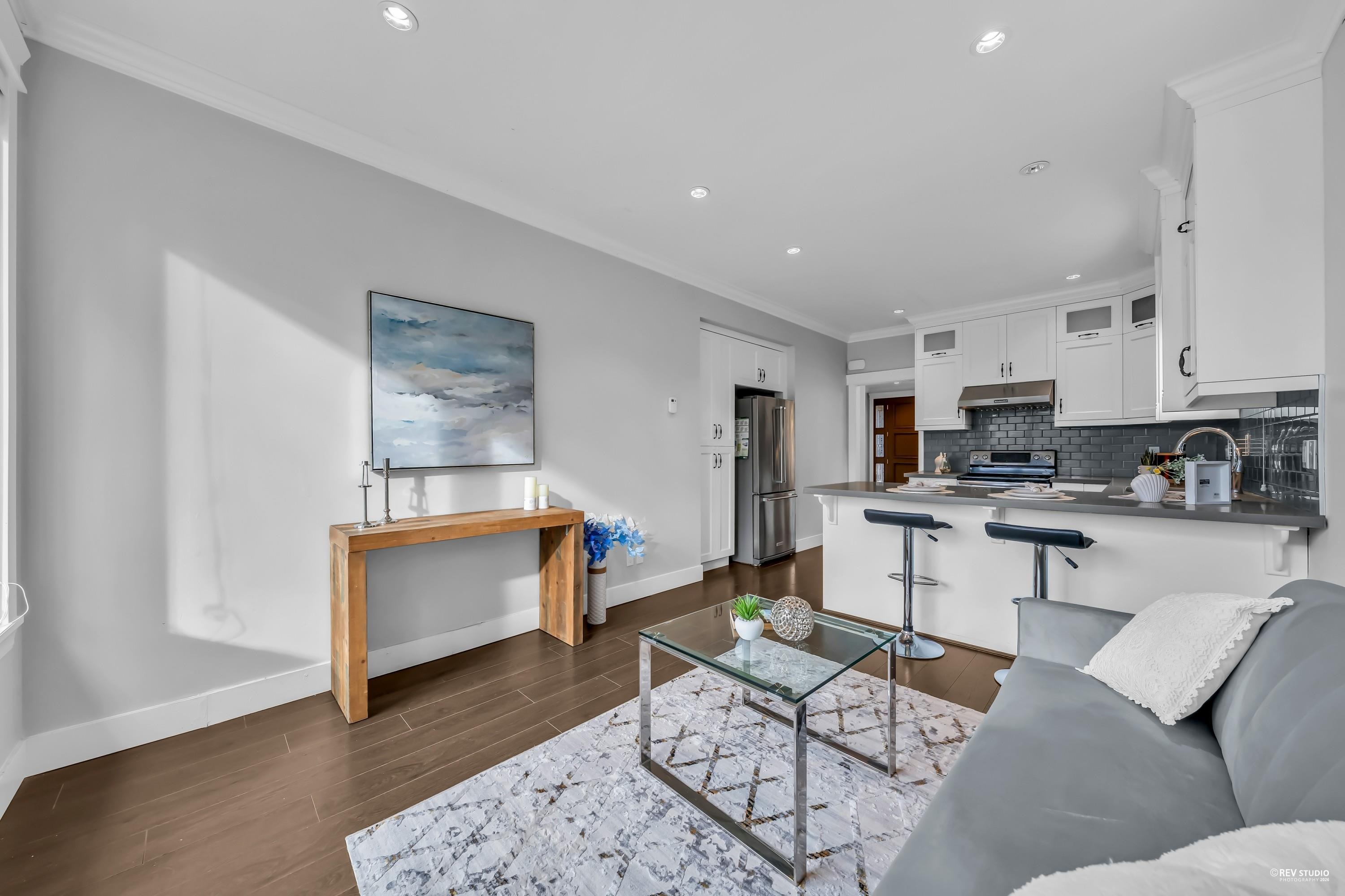 Welcome to this spacious and well-designed duplex in a prime Burnaby location, offering 1,872 sq ft of thoughtfully planned living space across two levels. Perfect for growing families or multi-generational living, this home features 5 bedrooms and 4 bathrooms with an excellent functional layout. The main floor boasts a 12 FEET HIGH-CEILING bright living room for entertaining, along with a large kitchen that flows seamlessly into the family room. A main-floor bedroom and full bath provide flexibility for gu...