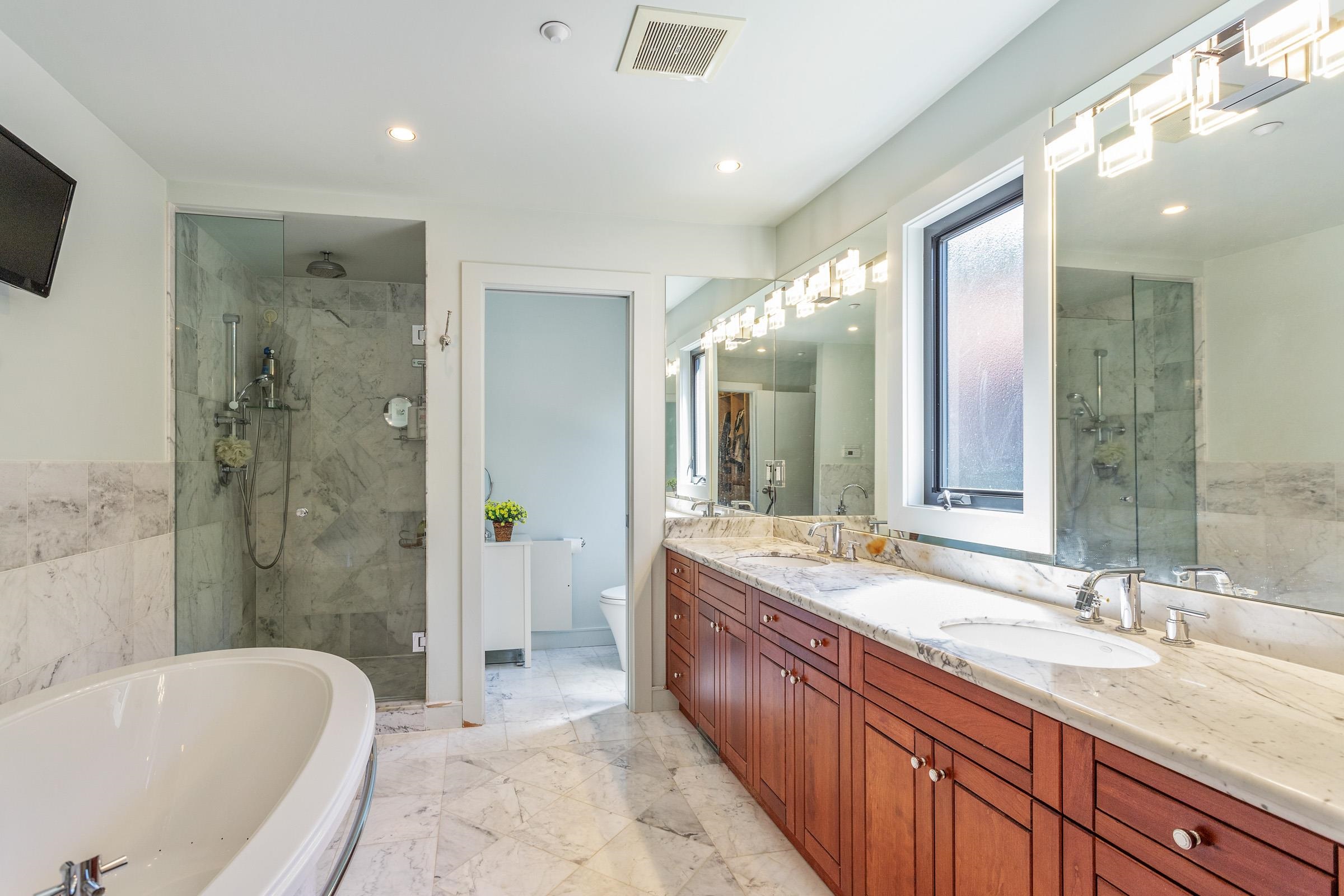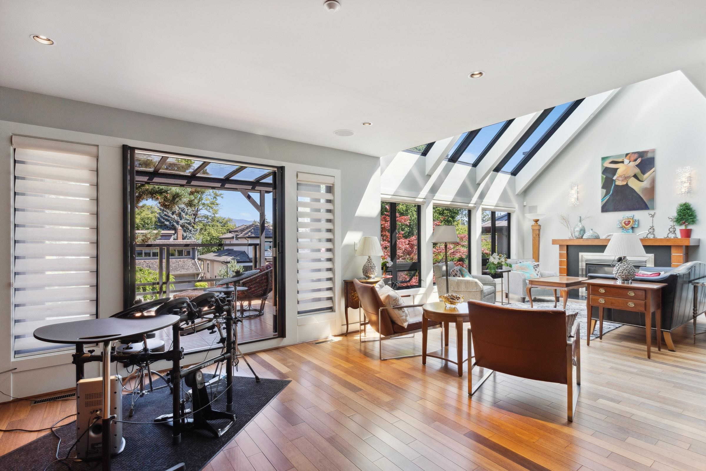 This architecturally customized luxury home was completely rebuilt in 2005. It is situated in the best location within minutes of Spanish Banks Beach in the prestigious area of Point Grey. Sunlight fills this stunning & unique home via expansive skylights. Features include soaring vaulted ceilings, expanses of glass, rich cherry-wood floors, painted cabinets, chef's Lonetree professional-grade kitchen that opens to a large covered dining deck plumbed for outdoor kitchen, garden party, family room with firep...