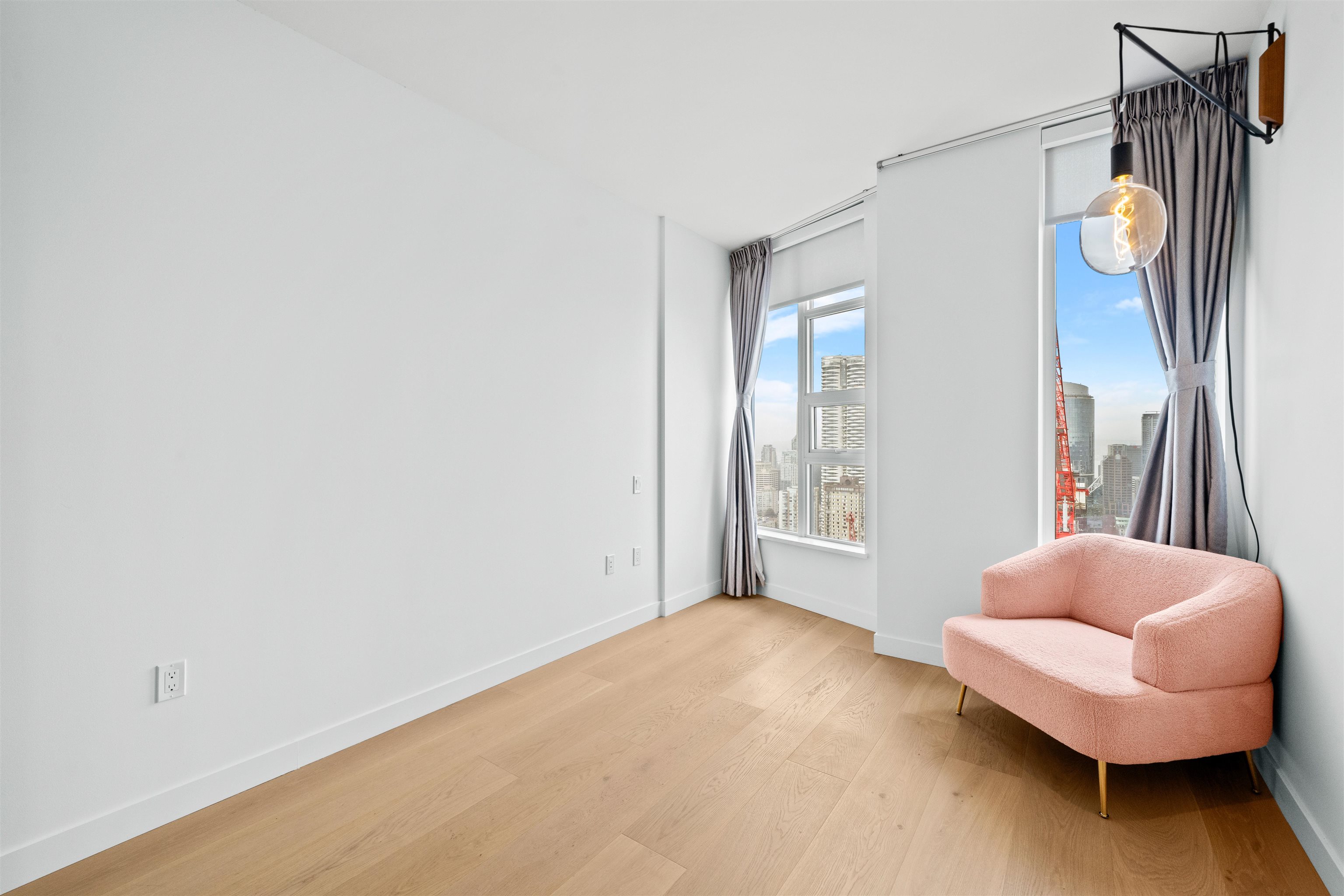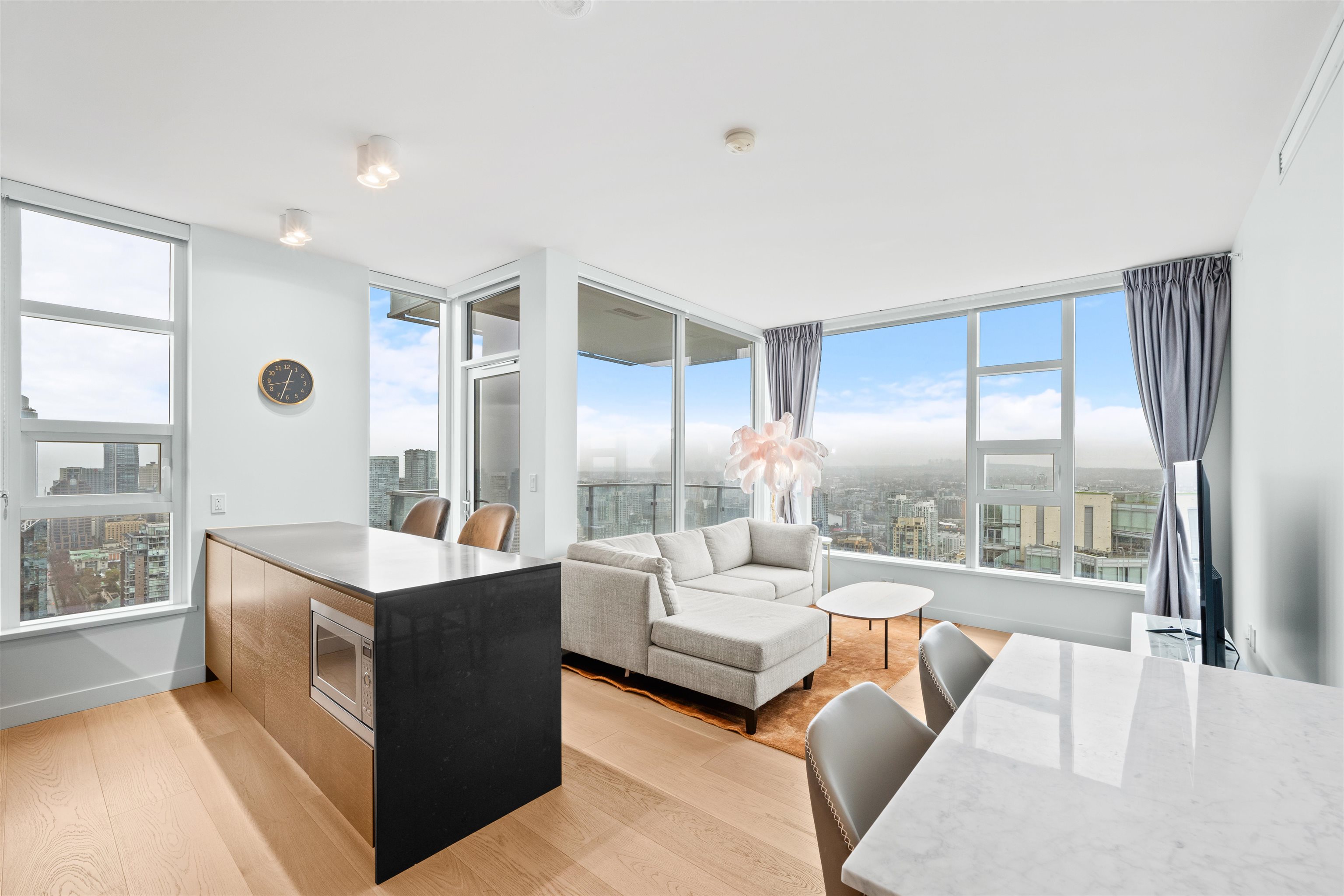 Check out this semi-furnished 2-bedroom, 2-bathroom condo on the 45th floor of One Burrard Place. Built in 2022, it boasts top-of-the-line Gaggenau appliances, engineered hardwood flooring throughout, air conditioning, and smart home controls for temperature and lighting. The modern bathroom features a Duravit wall-mounted toilet, and the kitchen is equipped with sleek quartz countertops. The building offers some of the best amenities around, including 24/7 concierge service, a swimming pool, sauna, steam ...