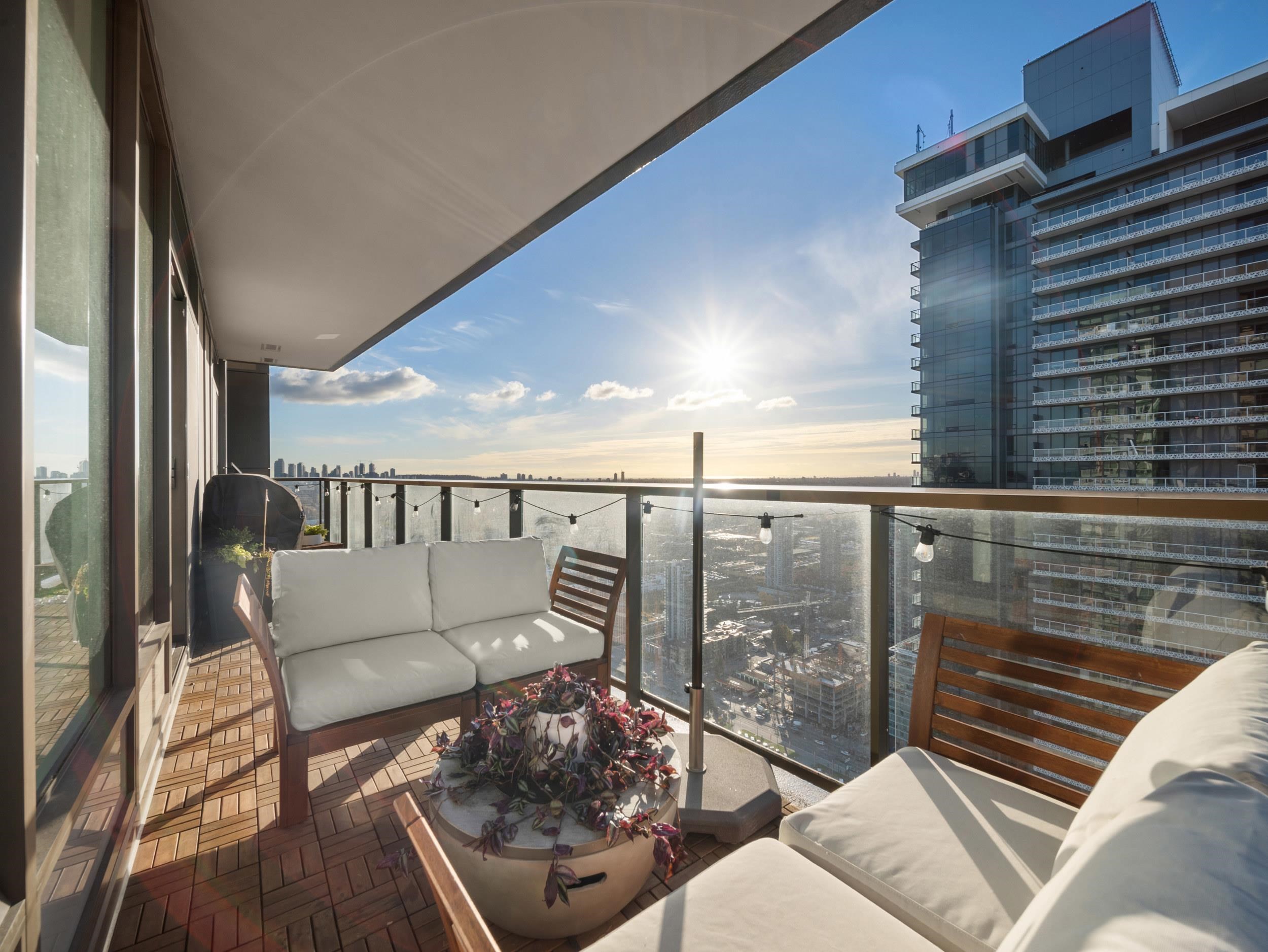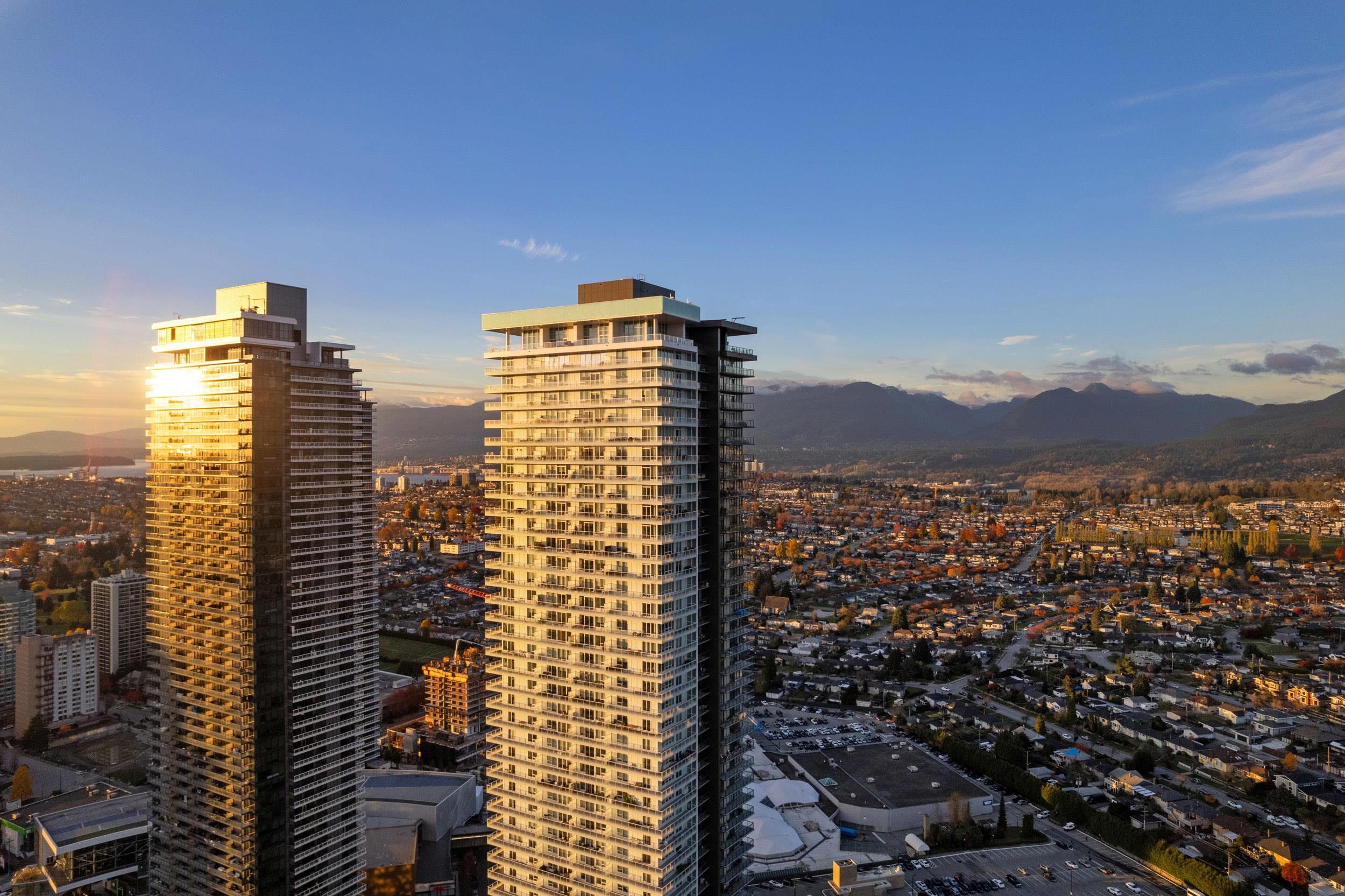 RARE high-floor corner home at The Amazing Brentwood! This 919 sqft NW-facing 2 bed 2 bath + large den (with closet) offers one of the most functional layouts in the building, plus an impressive ~220 sqft wraparound balcony—perfect for entertaining and enjoying panoramic views of Burrard Inlet, mountains & city. Bright, open-concept living with modern finishes and smart lock entry. Includes EV parking & storage locker. Residents enjoy world-class amenities and unbeatable convenience. Steps to SkyTrain, shop...
